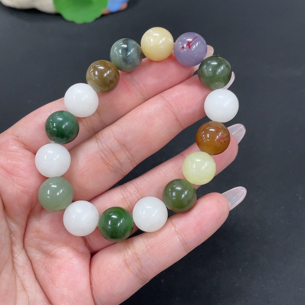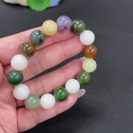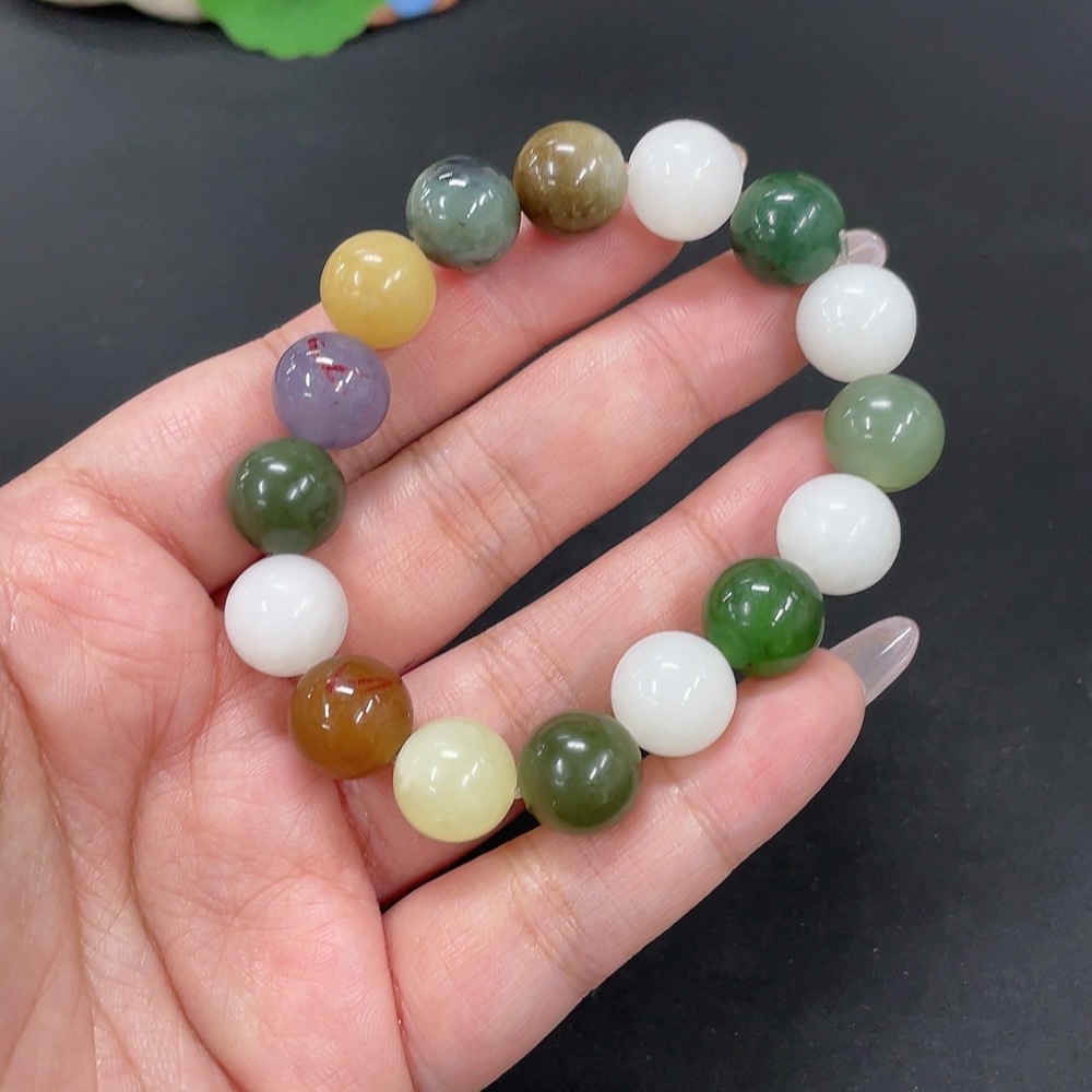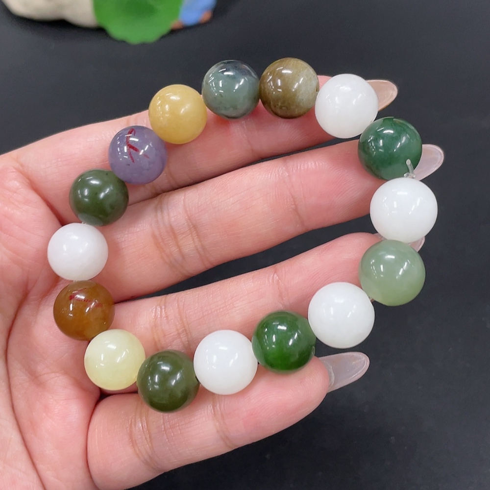 Hetian Jade Bracelet, Approx. 11.8mm, Total Weight About 40.9g, Contains Other Mineral Components, Non-Hetian Jade Beads, With Impurities