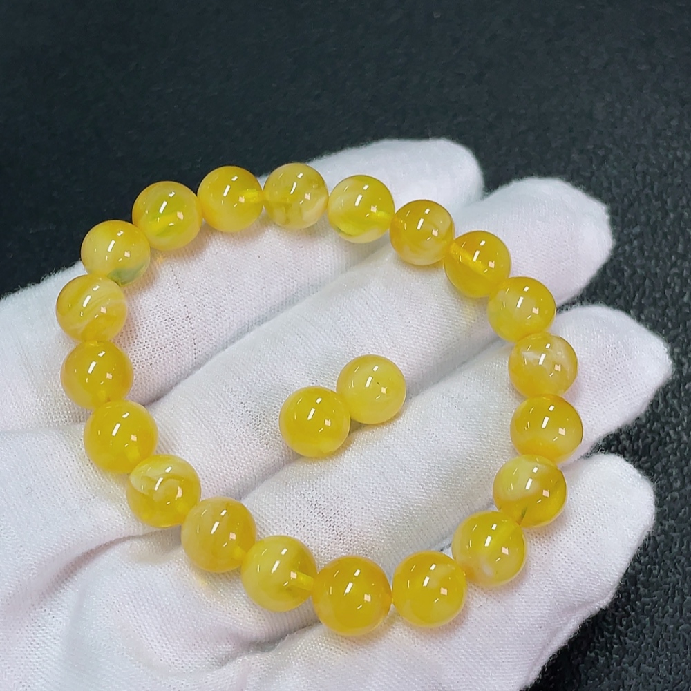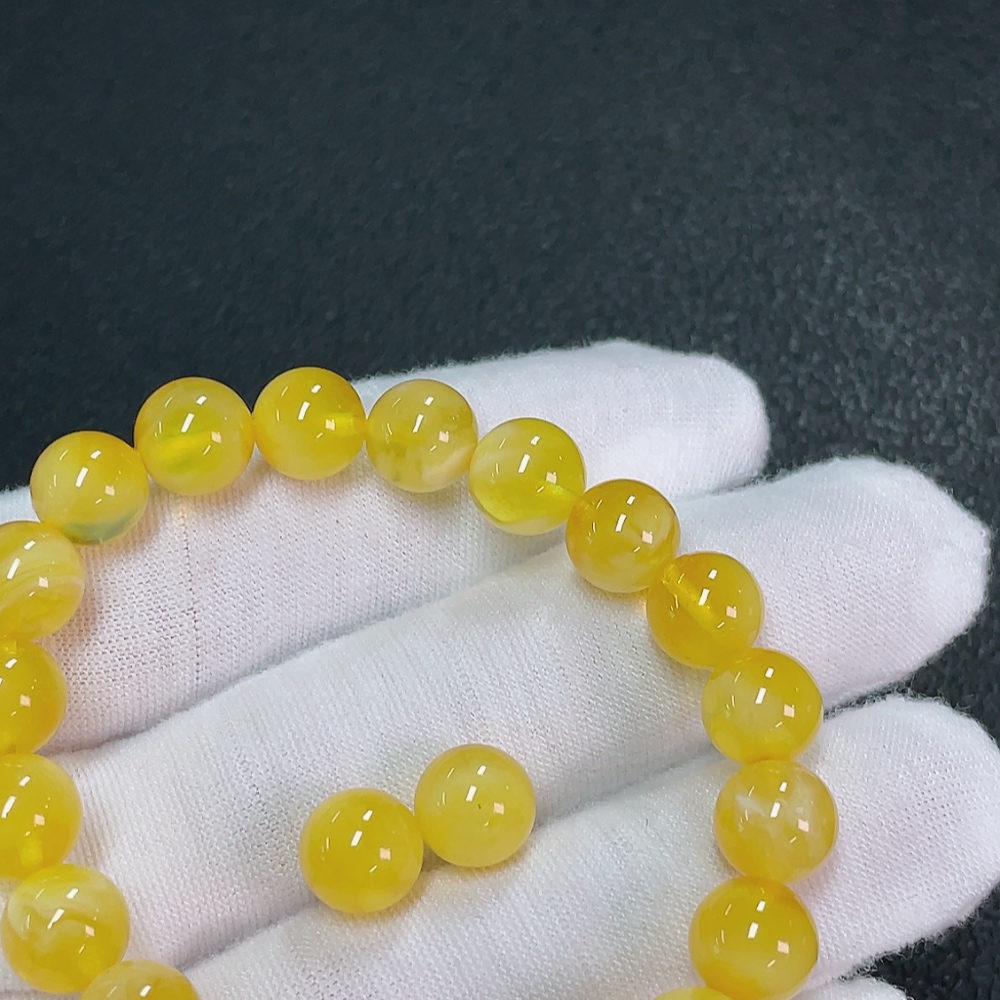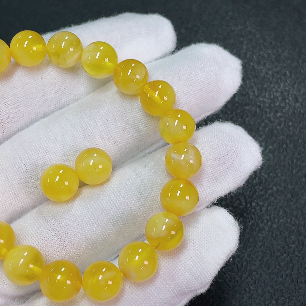 Amber and Beeswax Bracelet + Loose Beads, Total Weight Approx. 7.97g, Size About 8.4mm, Sell as a Lot