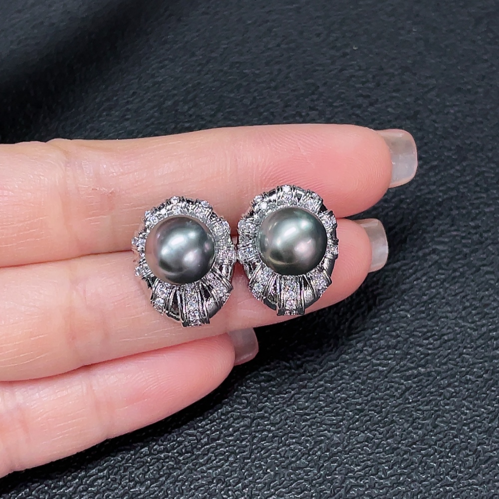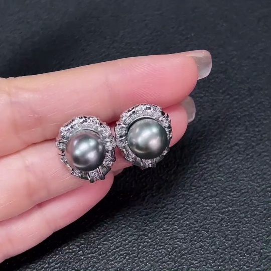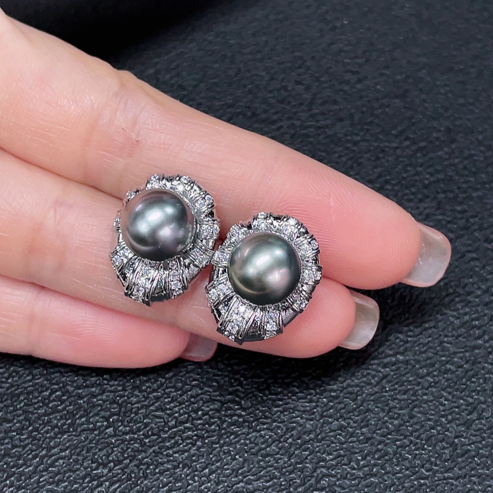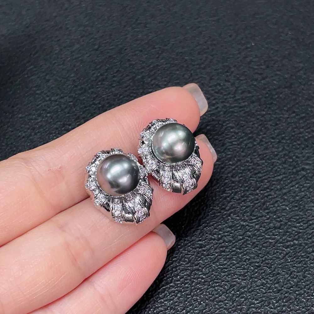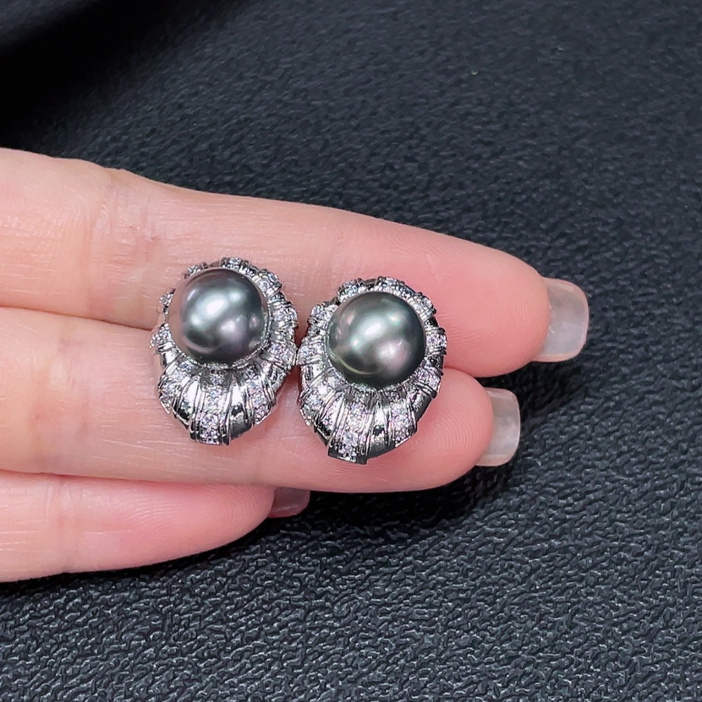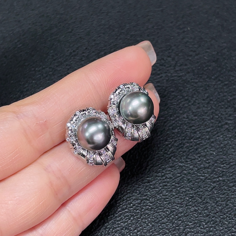Seawater pearl earrings non-gold total weight about 6.91g carat 9.3mm approx