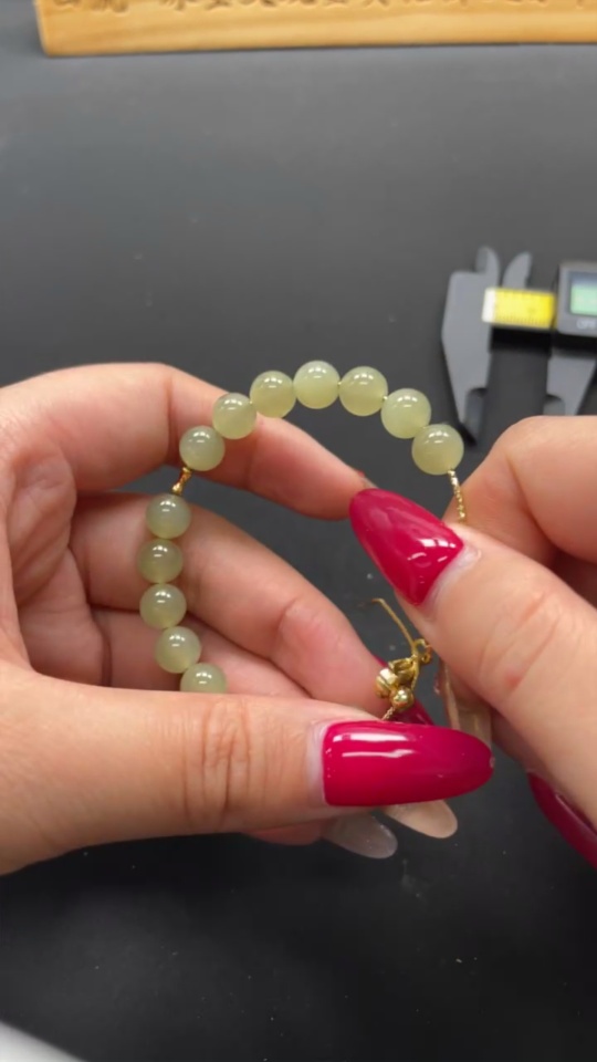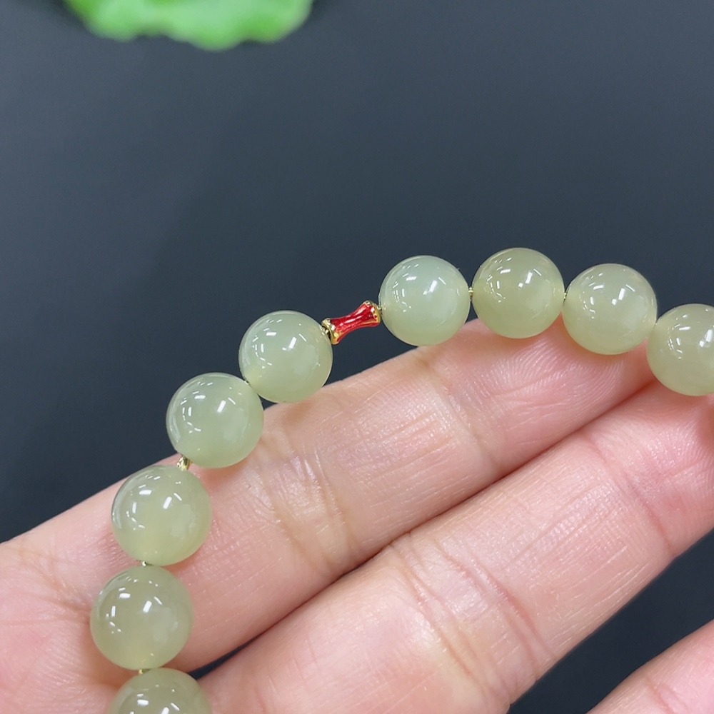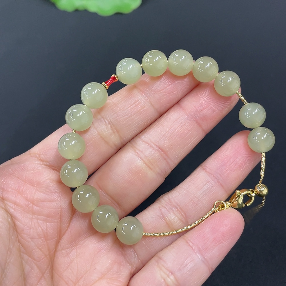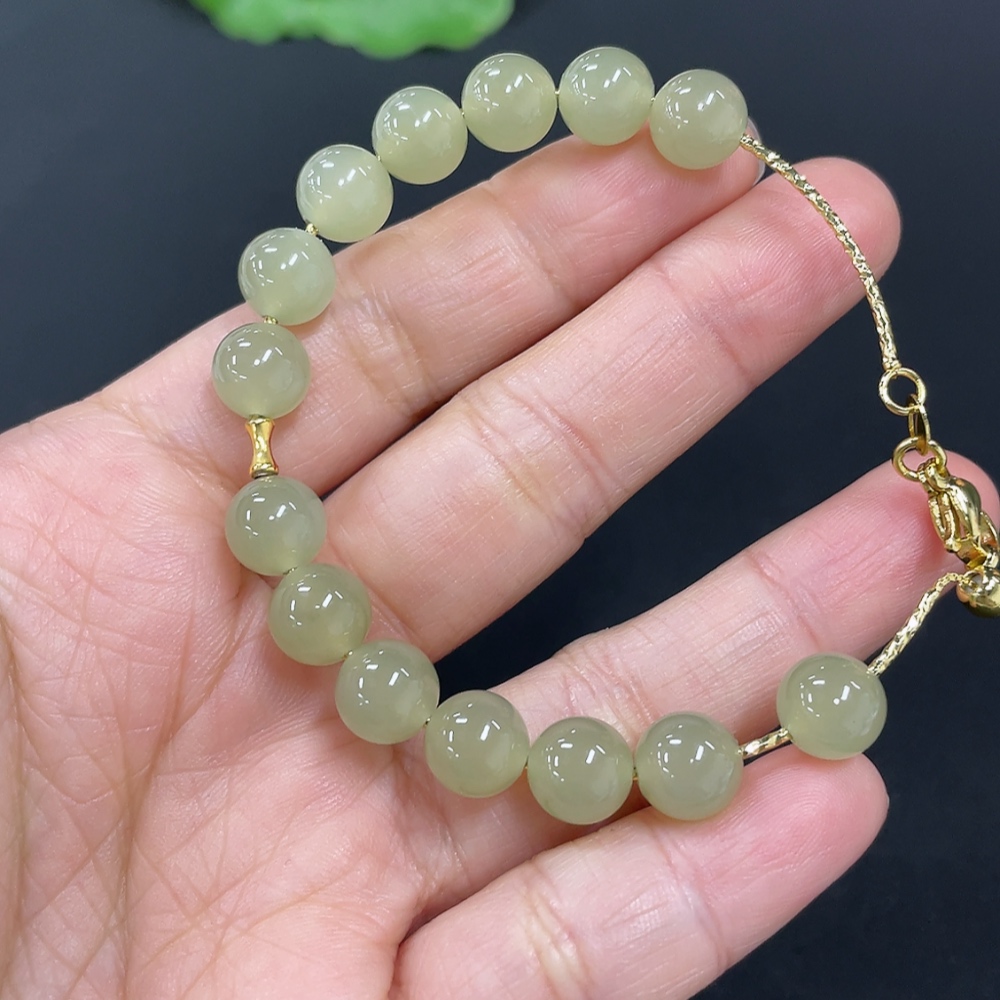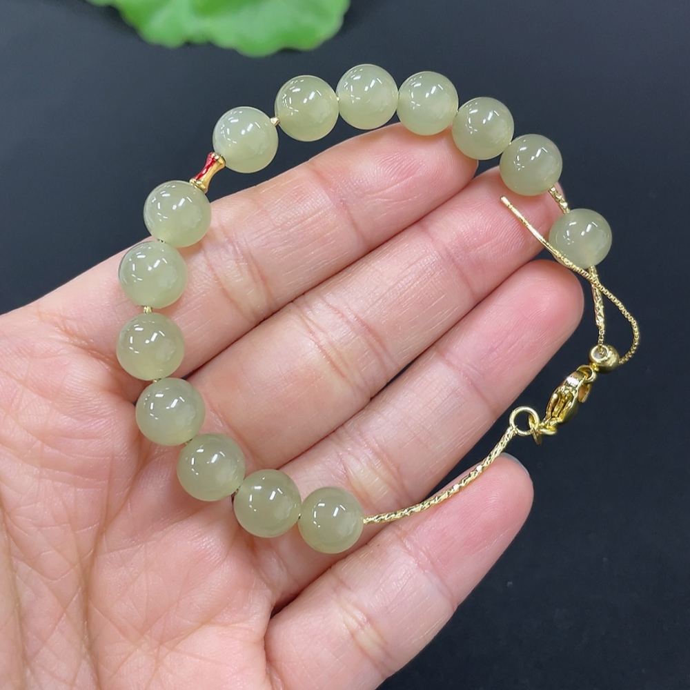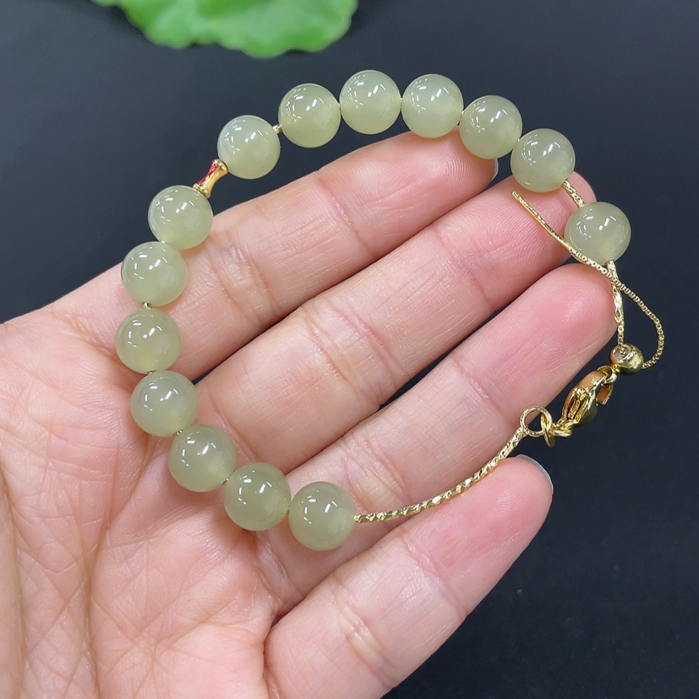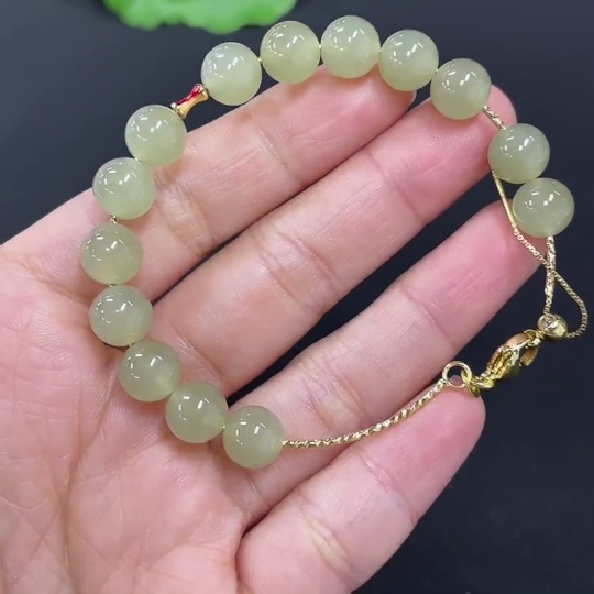 Trezaar - Hetian Jade Bracelet, approx. 7.7mm, marked red without imprint, tested gold content 75%, non-gold for the rest, total weight approx. 12.1g