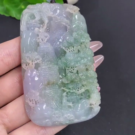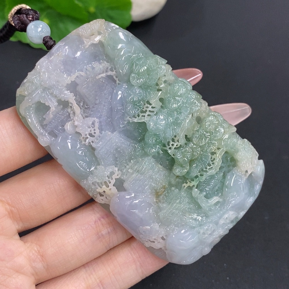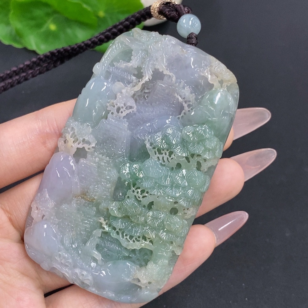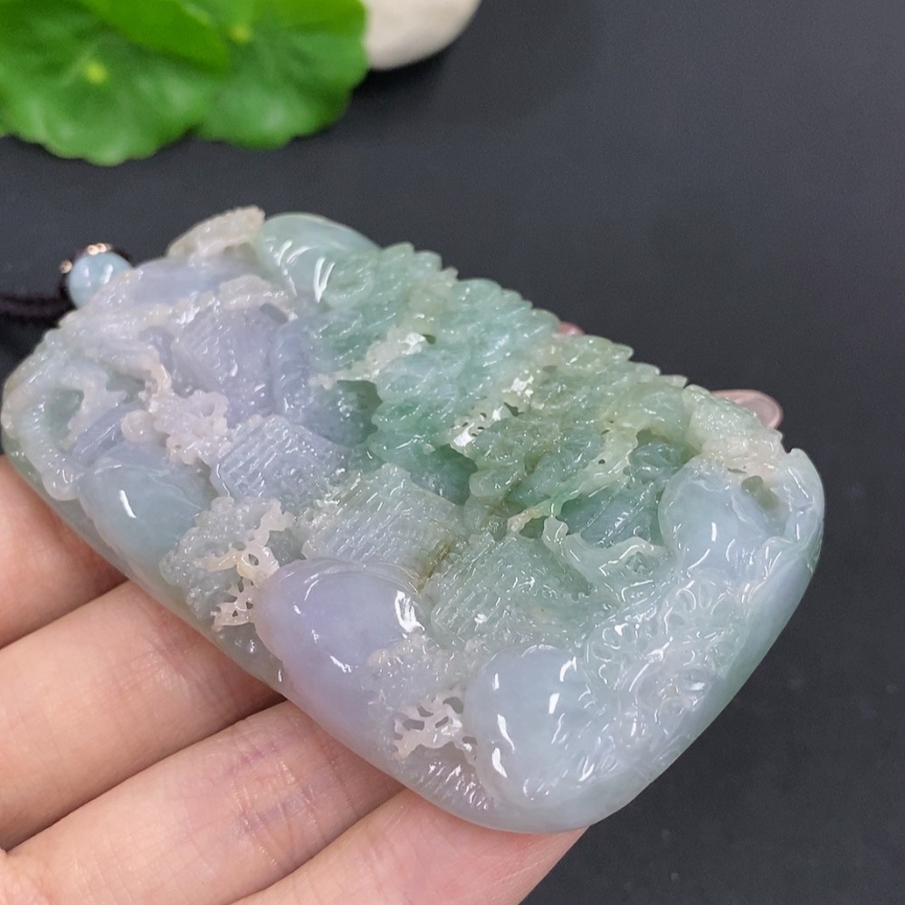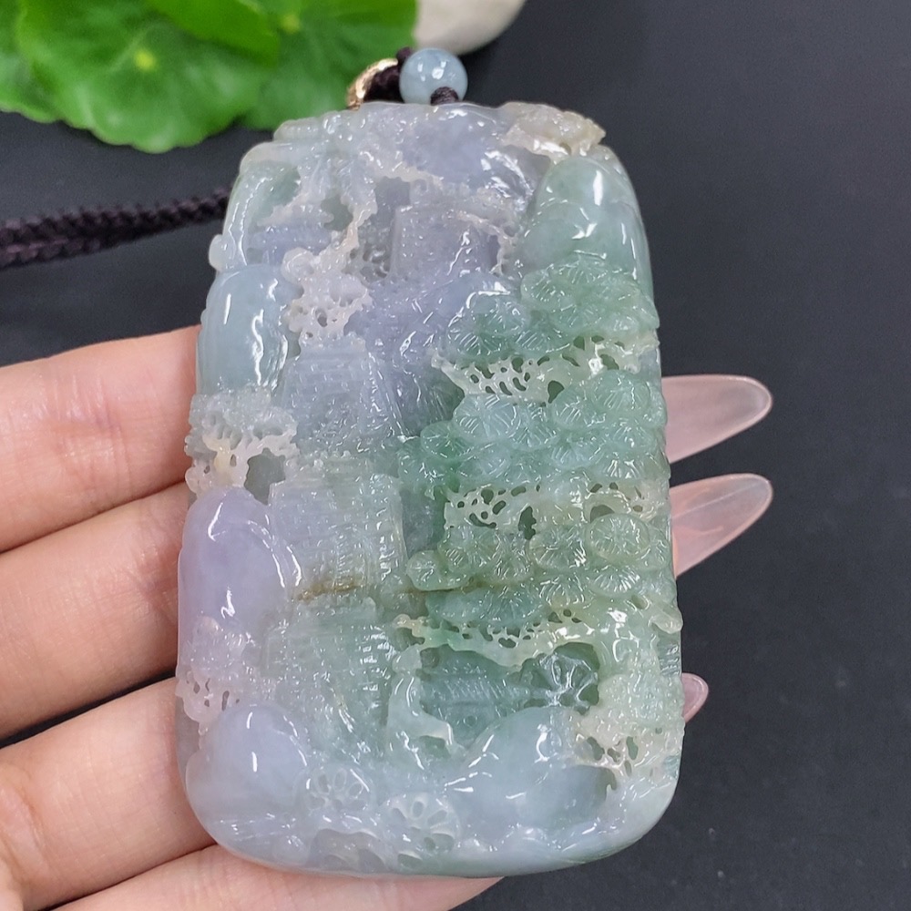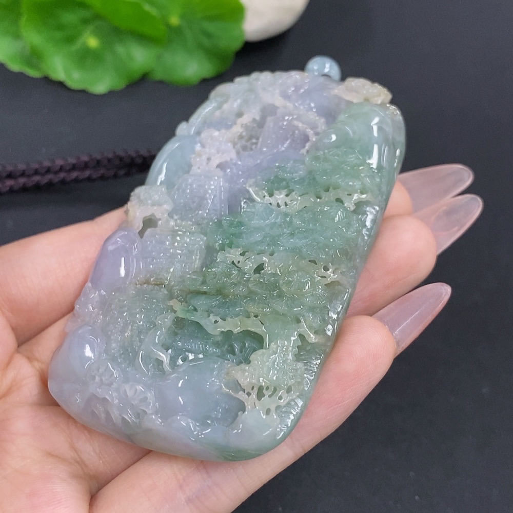 Jadeite Landscape Pendant with a total weight of approximately 112g (including rope weight)