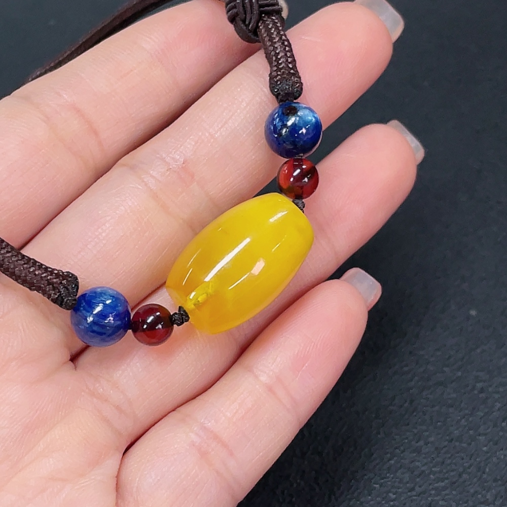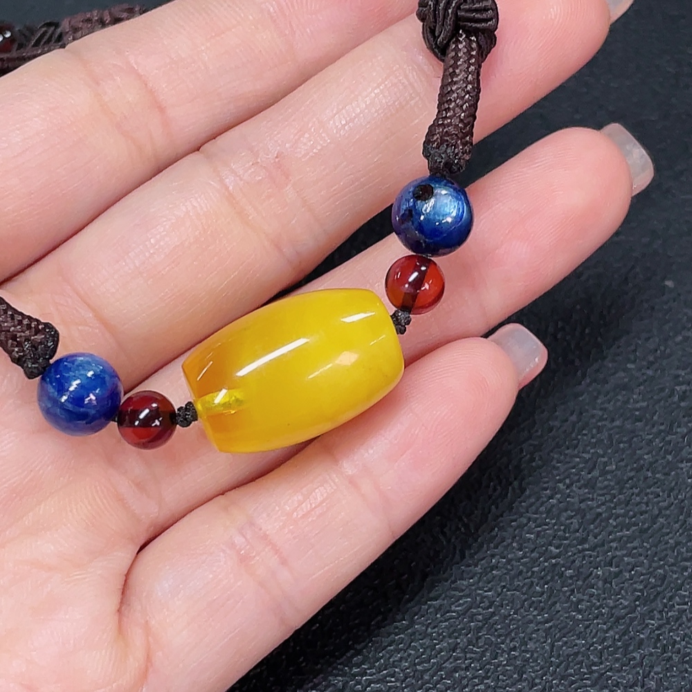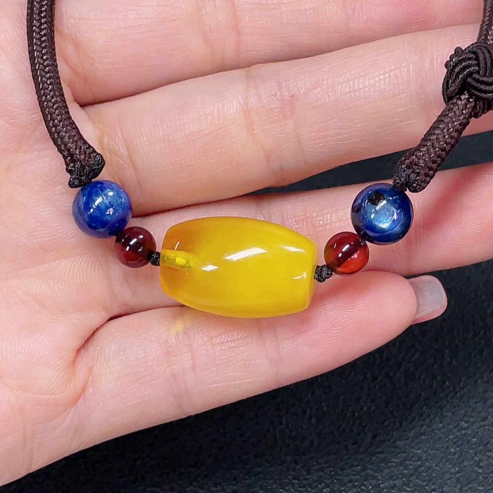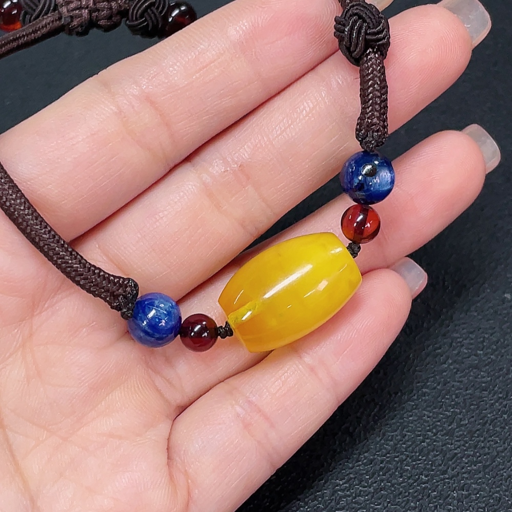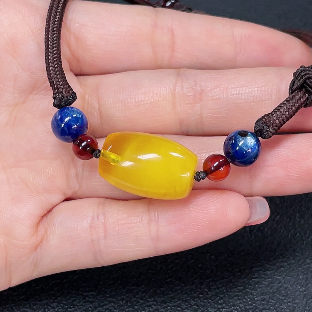 Amber Beeswax Bracelet with Non-Natural Stones, Total Weight Approx. 6.97g (Including String)