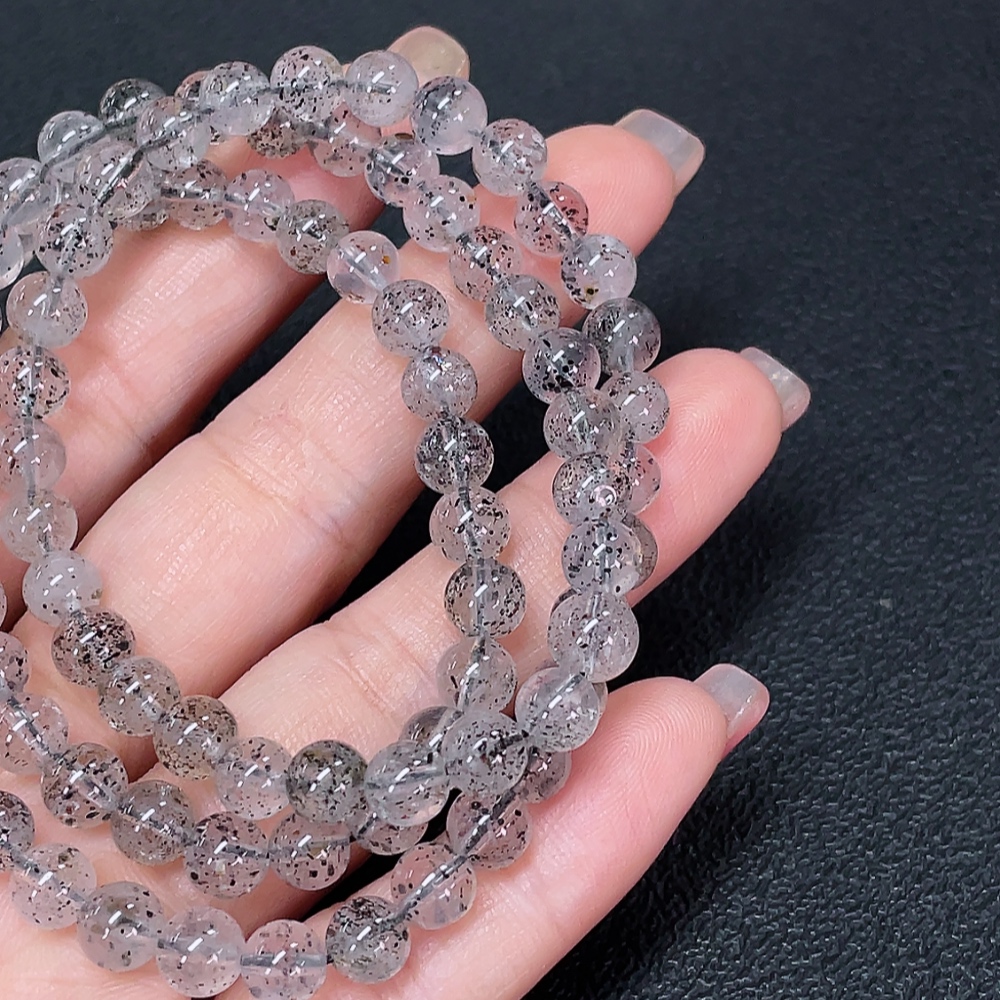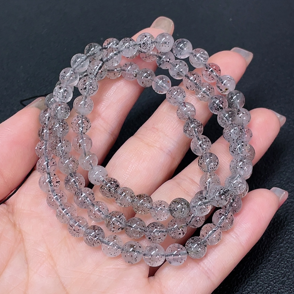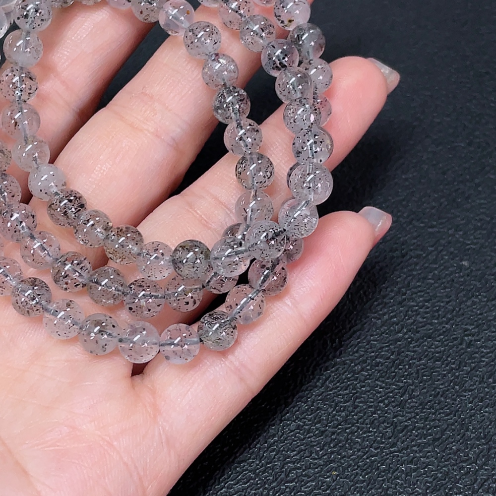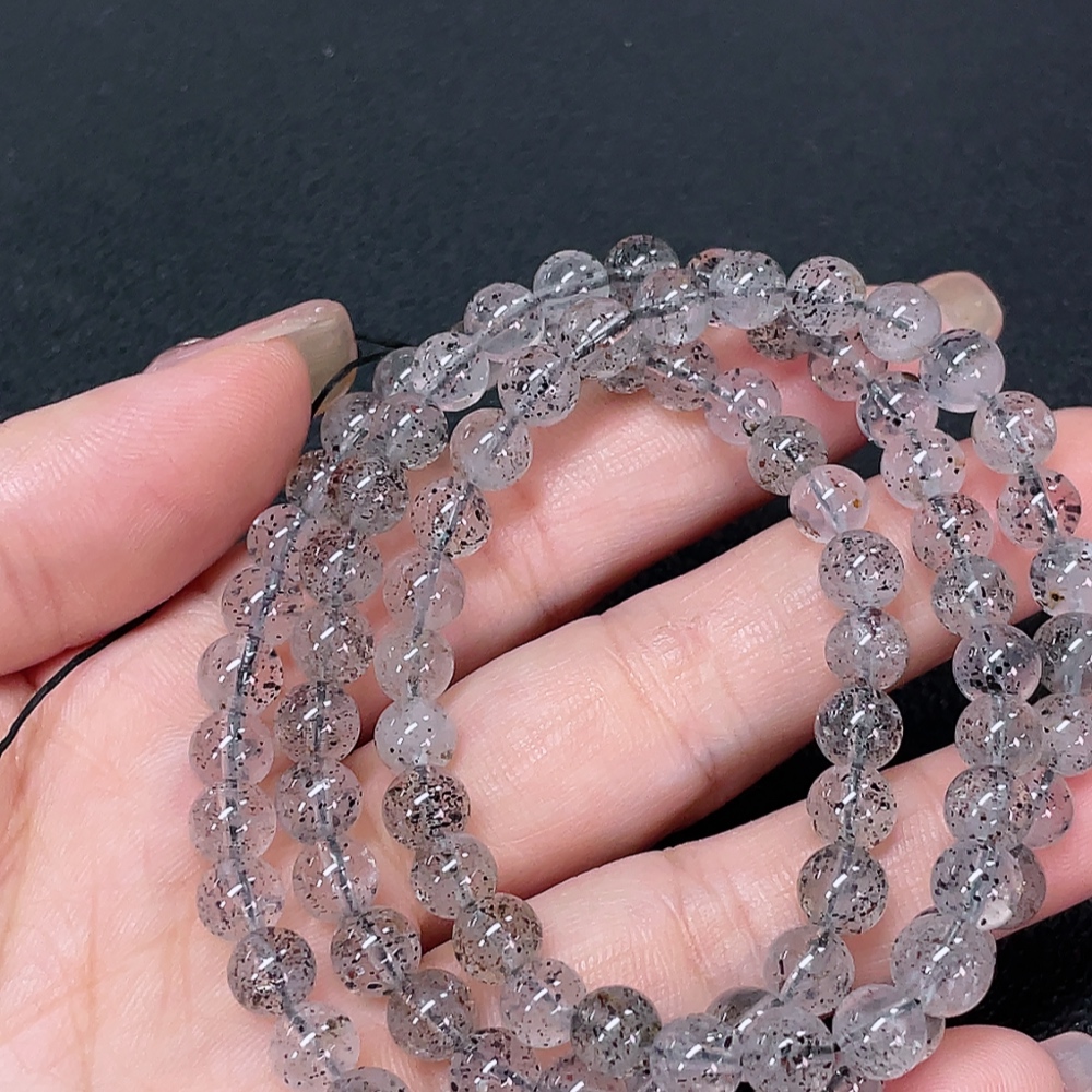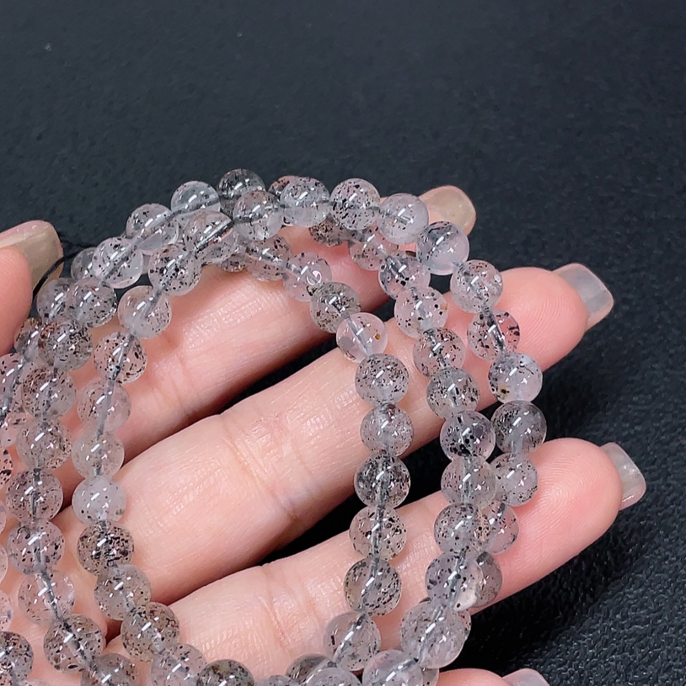 Crystal Bead Strand with Visible Organic Matter, Total Weight Approx. 28.92g, Size About 6mm