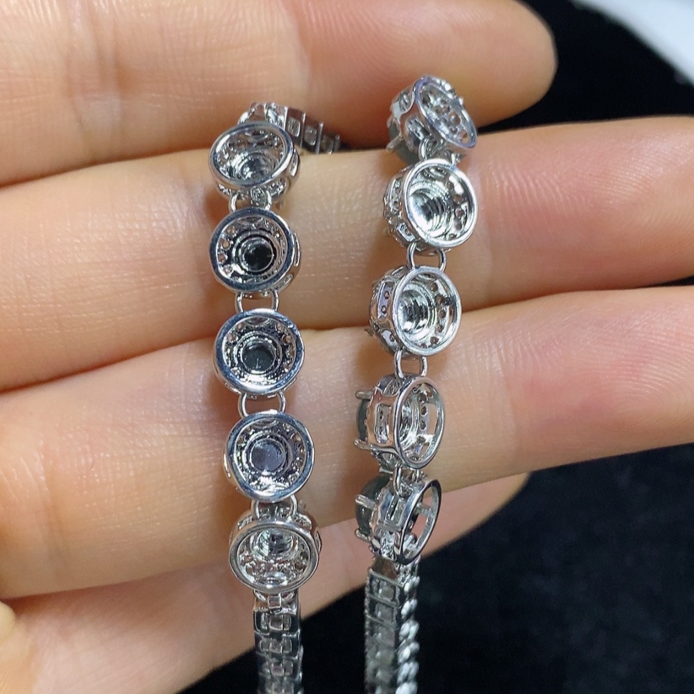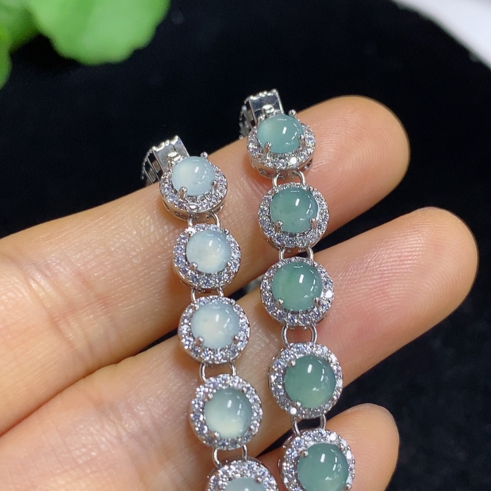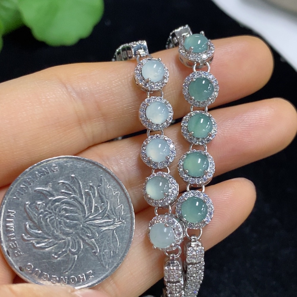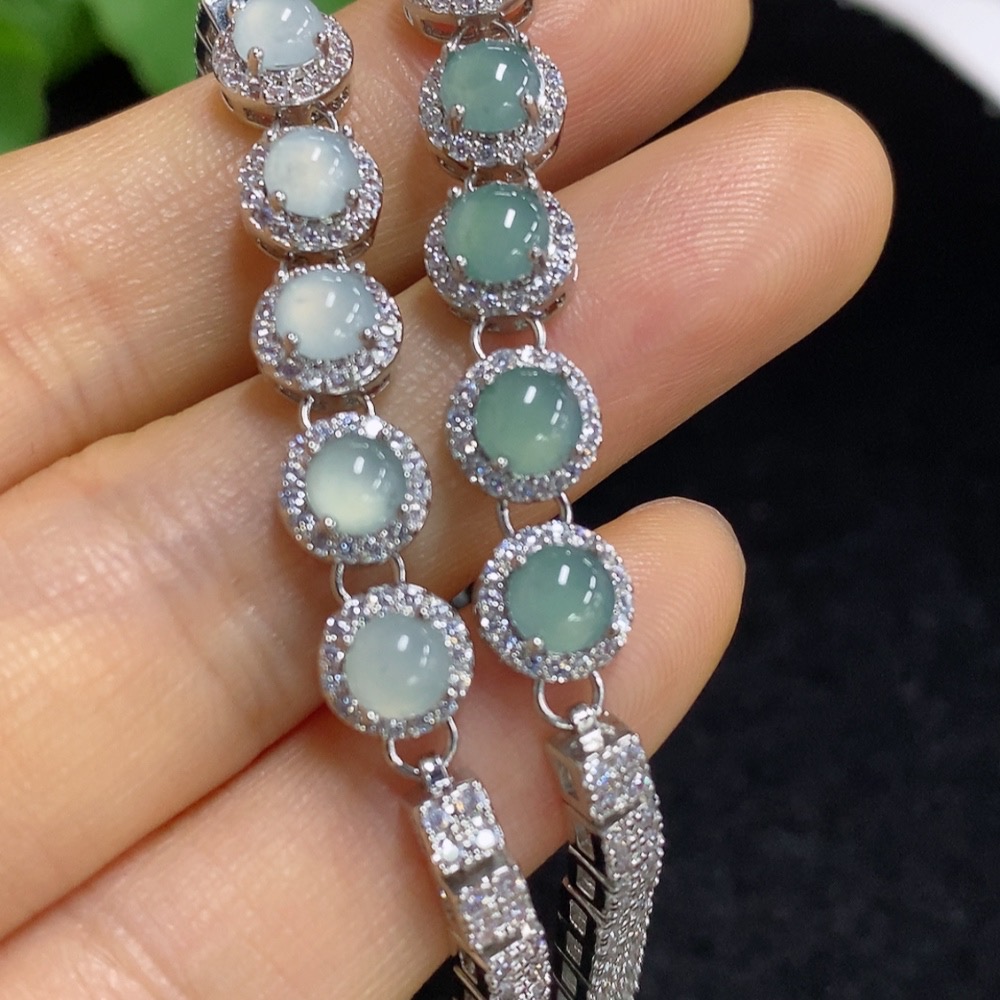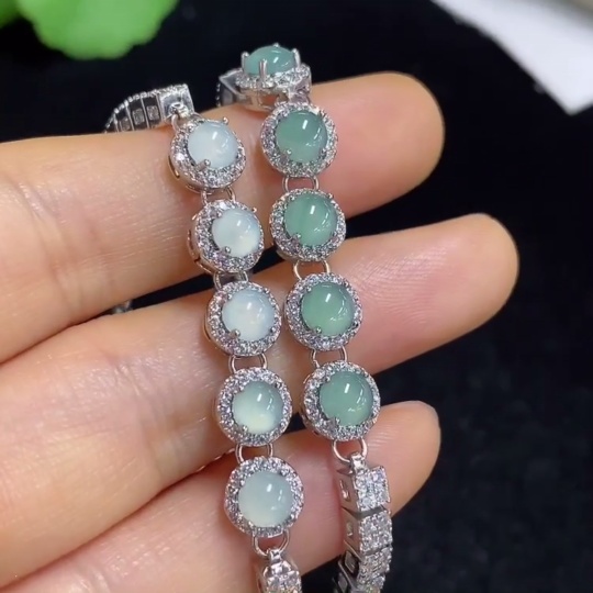 Jadeite cabochon inlaid bracelet, non-gold setting