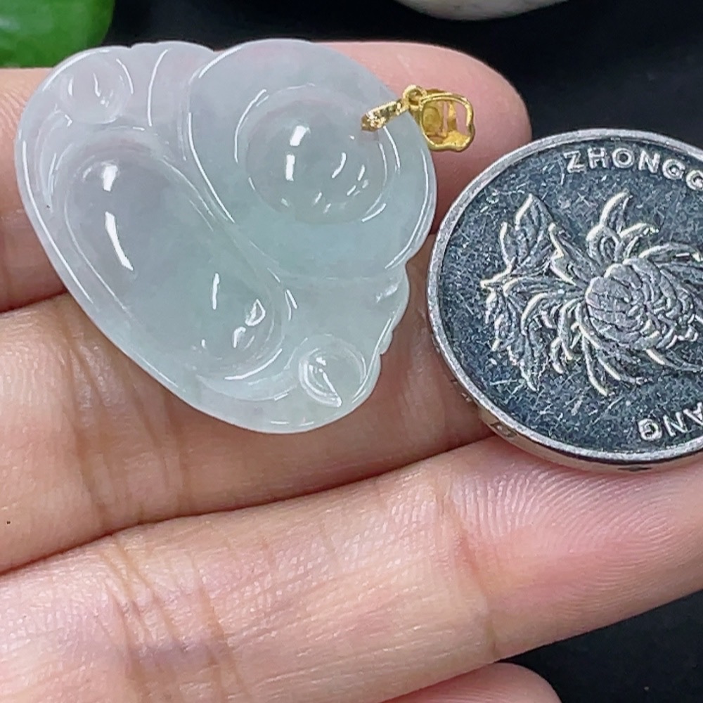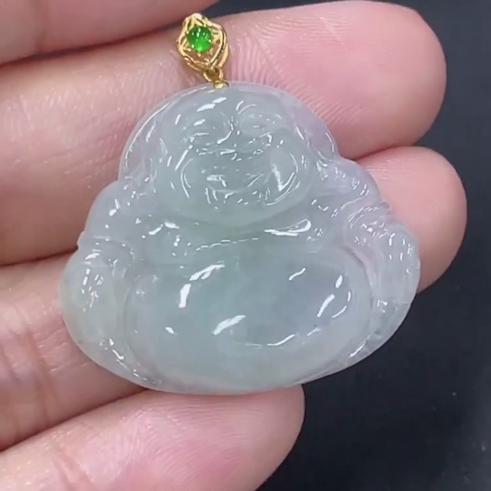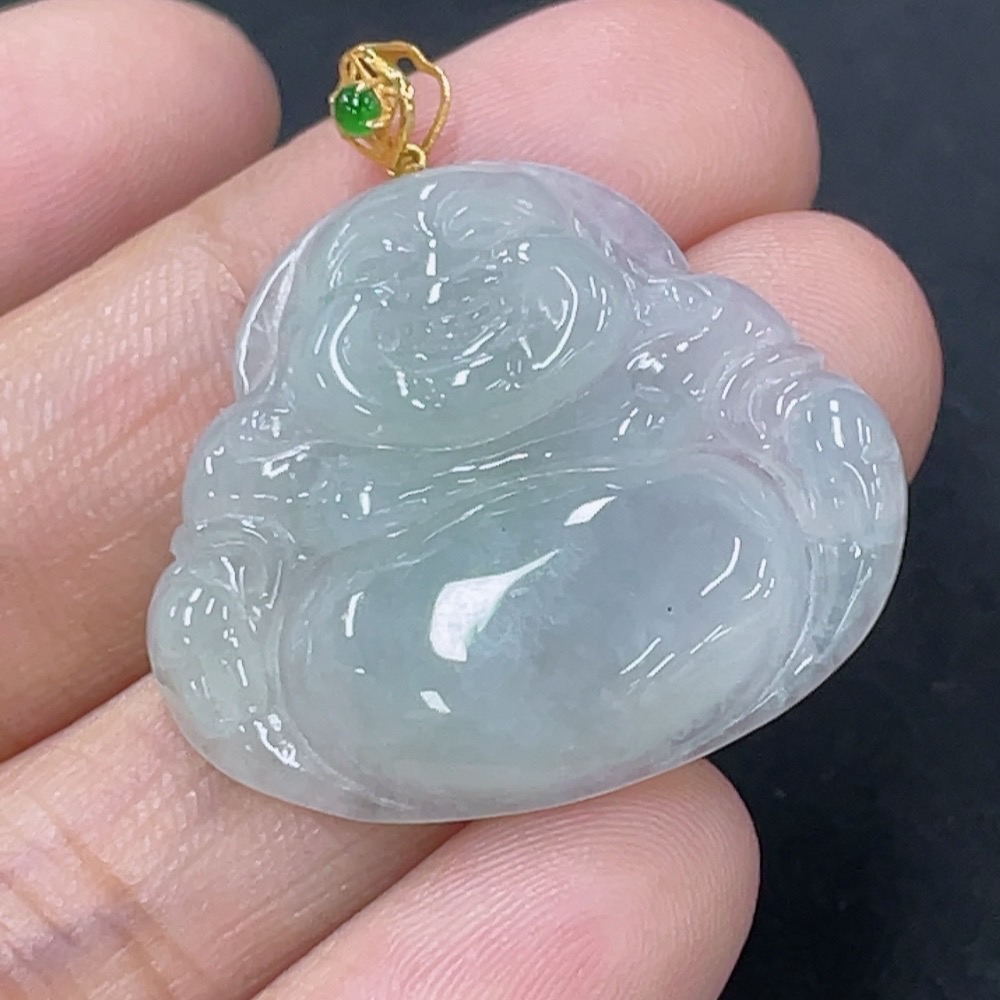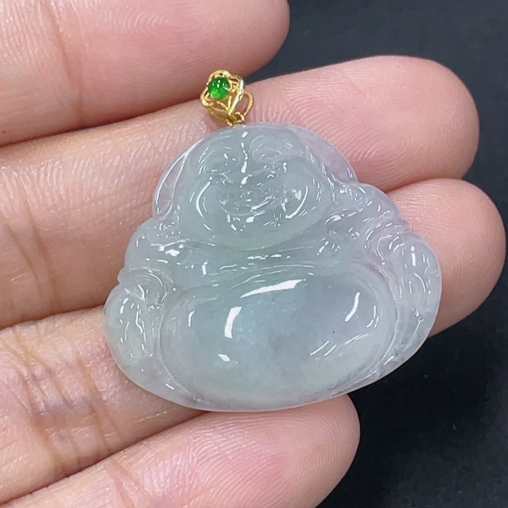 Jadeite Buddha Pendant with 18k Gold Clasp, Total Weight Approx. 4.88g