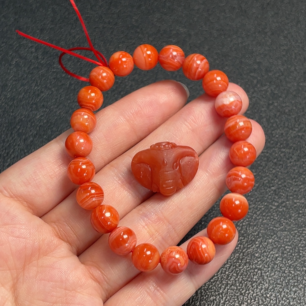 Red Agate Bracelet + Pendant (Red Only, Visible Organic Matter, Total Weight Approx. 20.48g, Sell as a Lot)