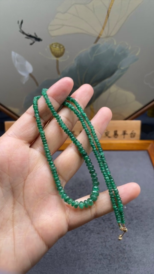 Emerald Necklace Marked in Red as Non-Gold with 18K Gold for the Rest Stone Size 2.8-5.5mm Total Weight Approximately 8.64g Clarity Enhanced