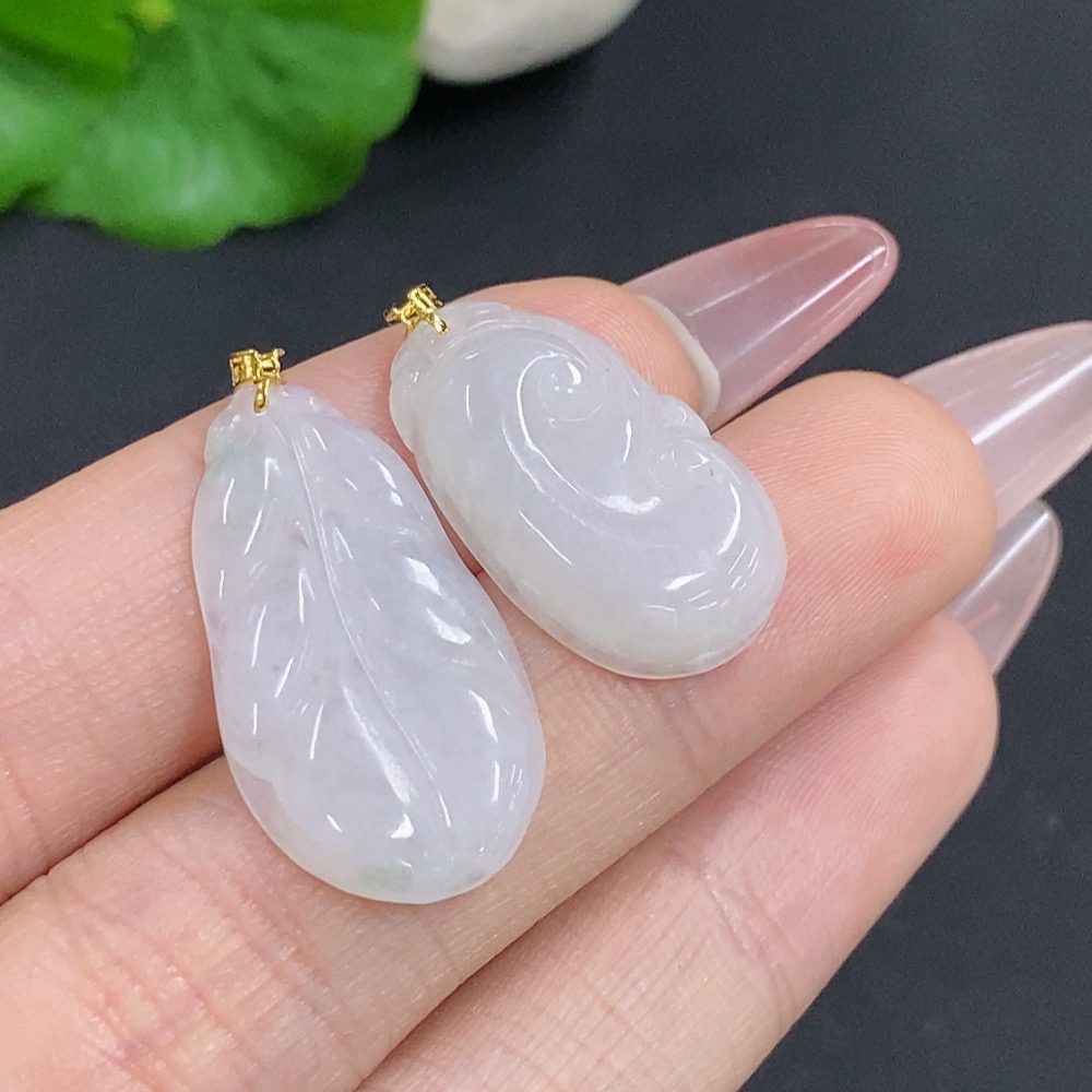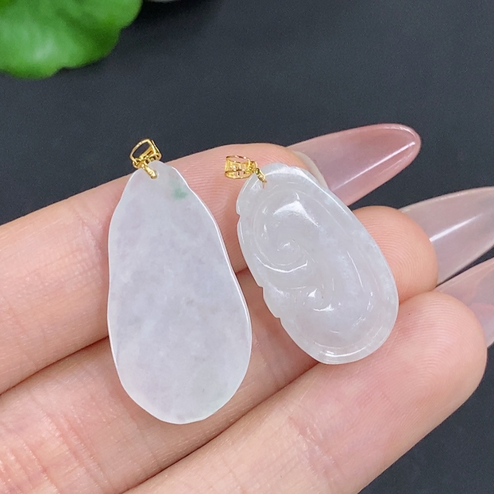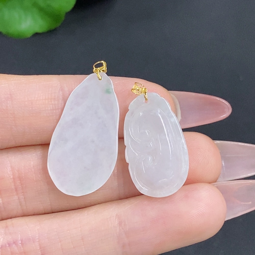 Trezaar - Jadeite Pendants Sell as a Lot with 18k Gold Clasp Total Weight Approximately 5.4g