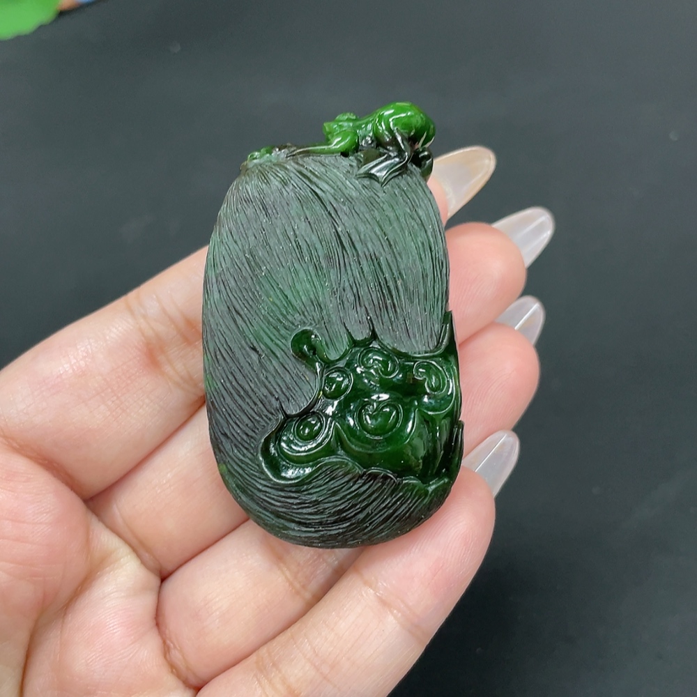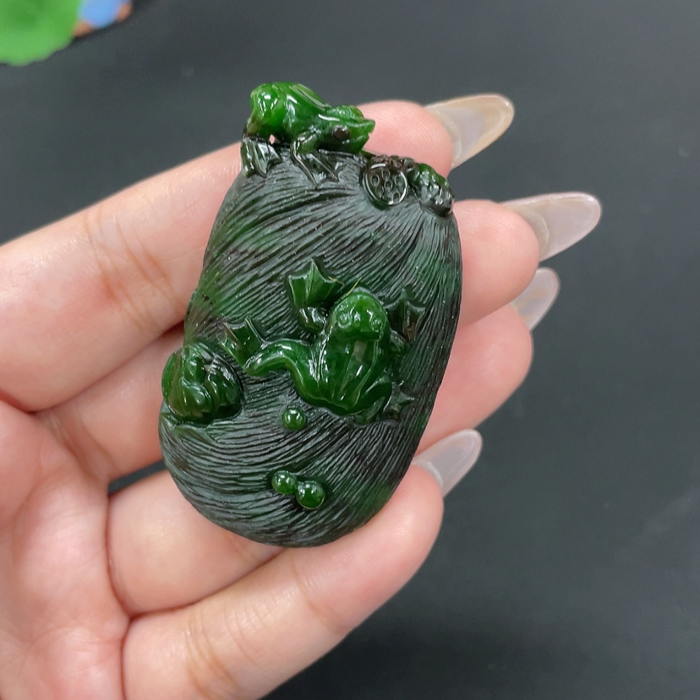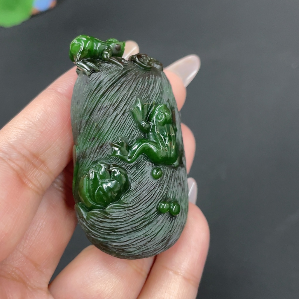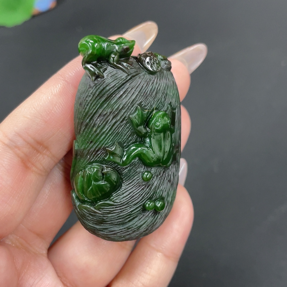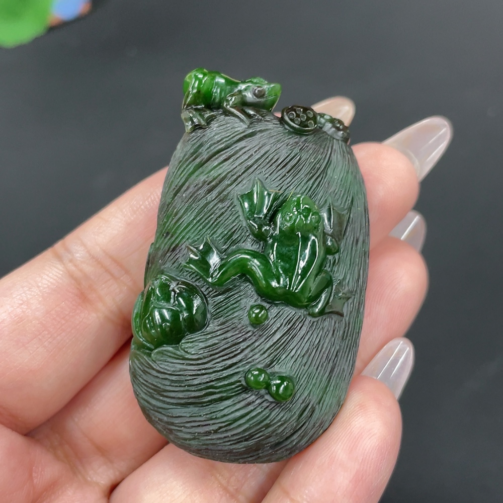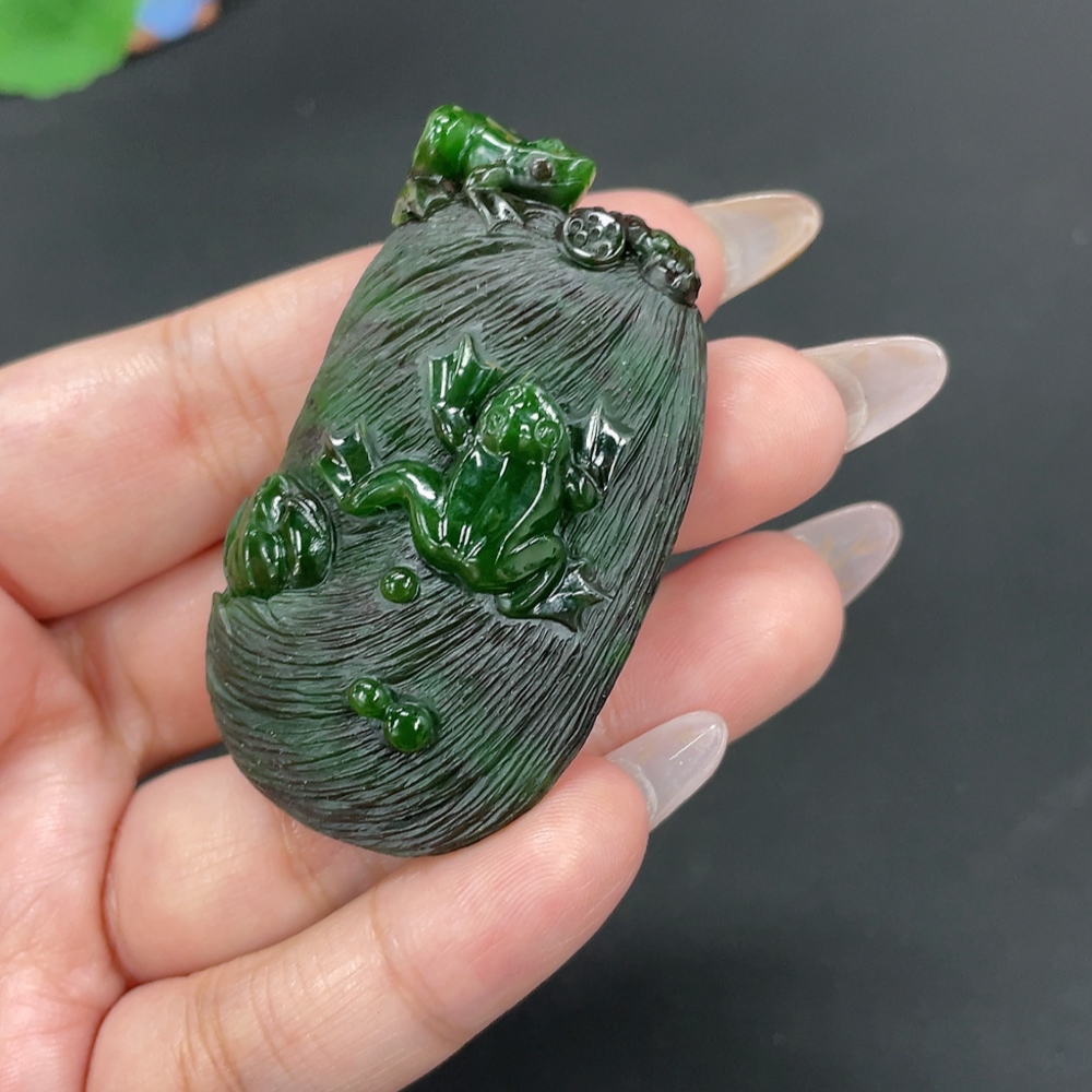 Hetian Jade Jasper Pendant "Fortune Croaking" Total Weight Approx. 51g