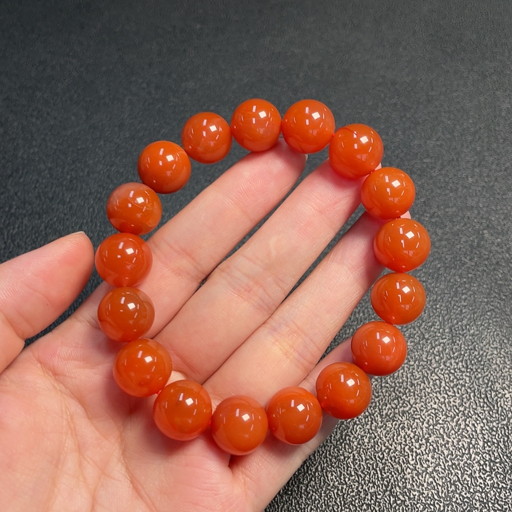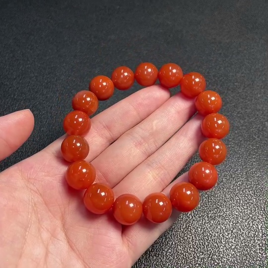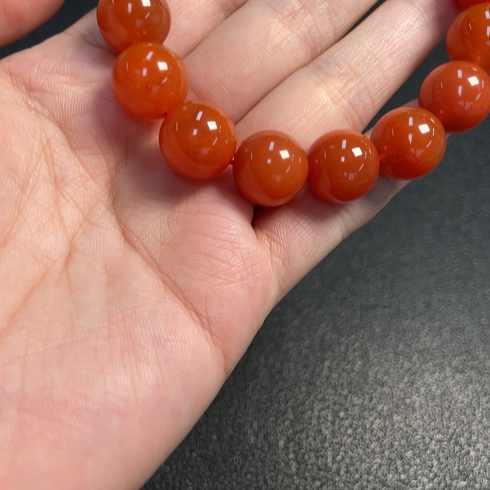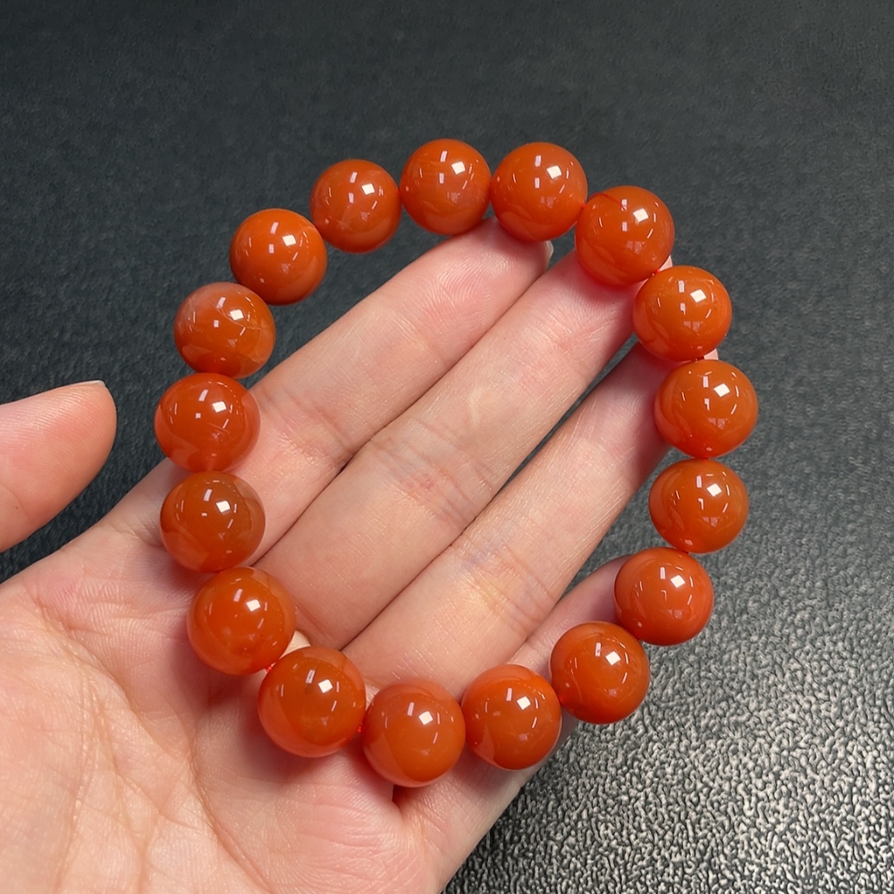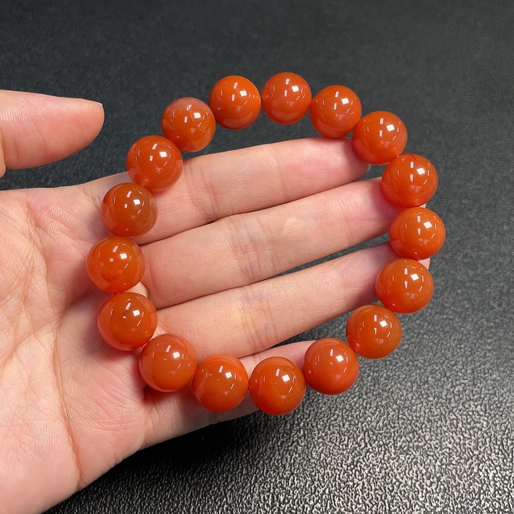 Red Agate Bracelet with Visible Organic Matter, Total Weight Approximately 47.64g, Size About 12.7mm