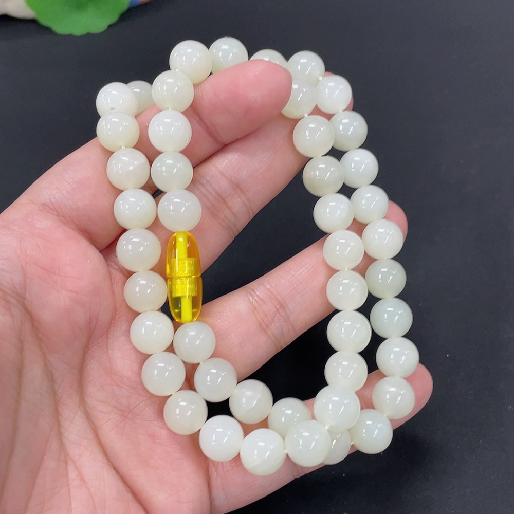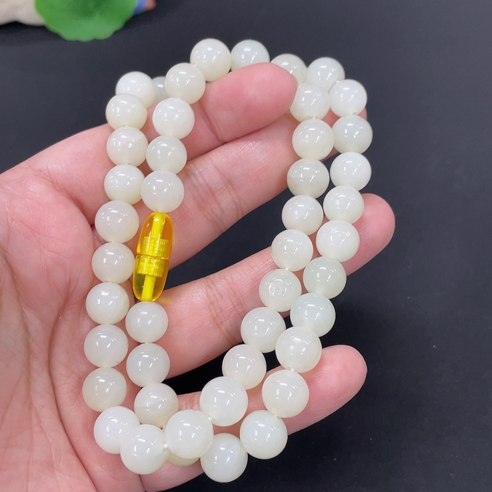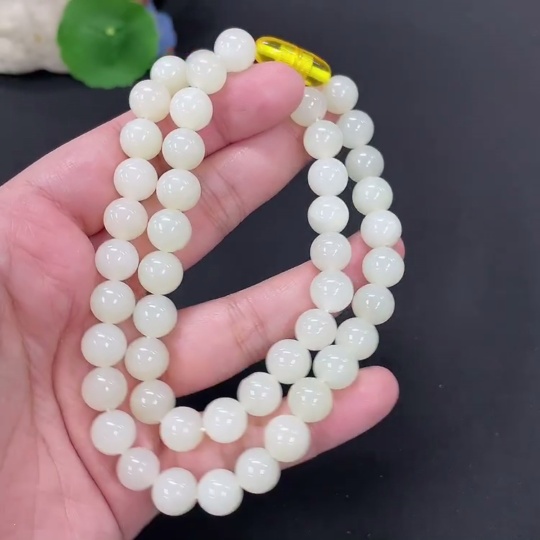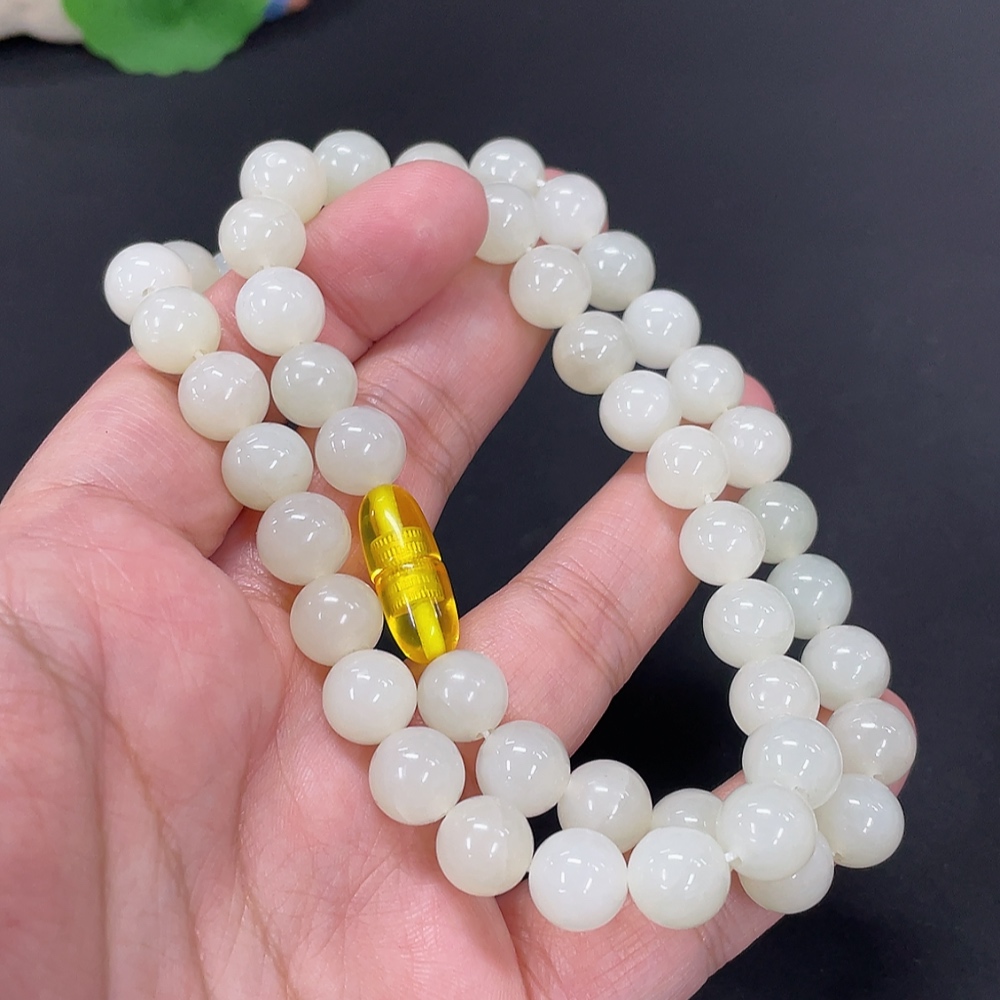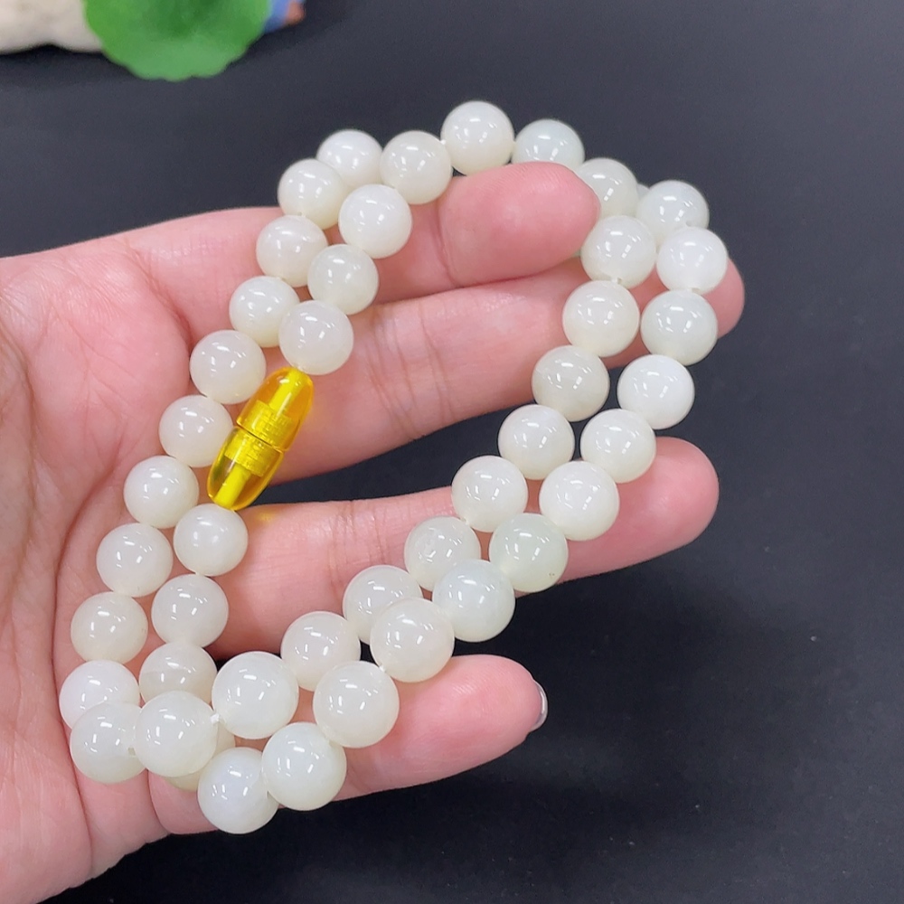 Hetian Jade Bead Necklace, Approx. 9.5mm, Total Weight Approx. 64g, Non-natural Clasp