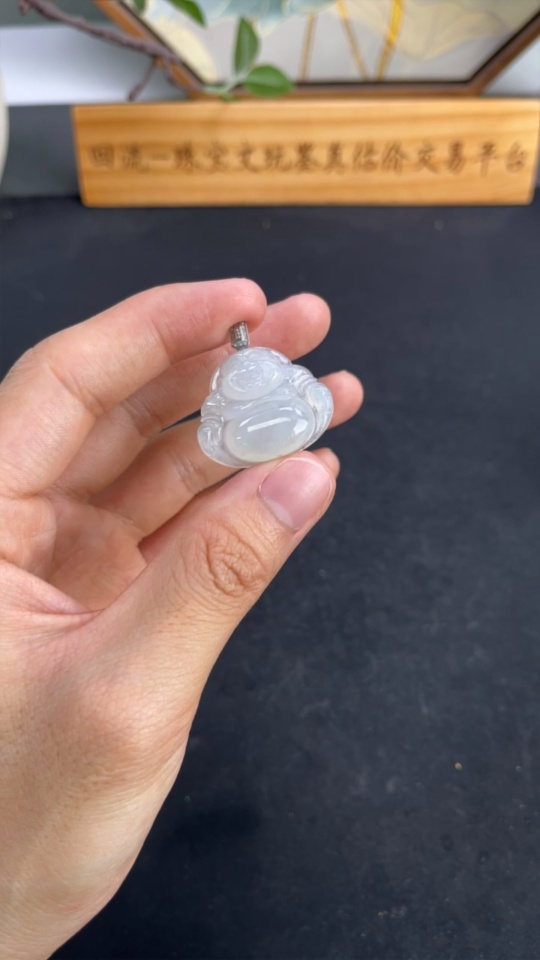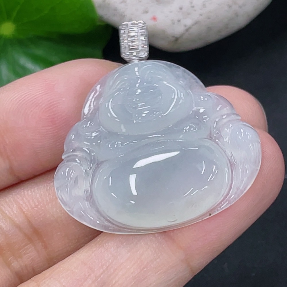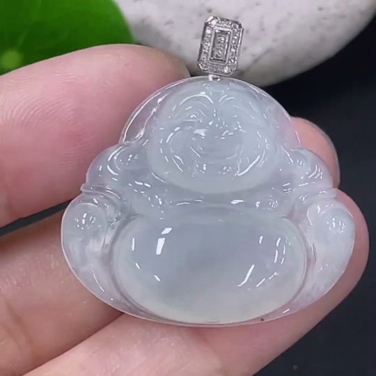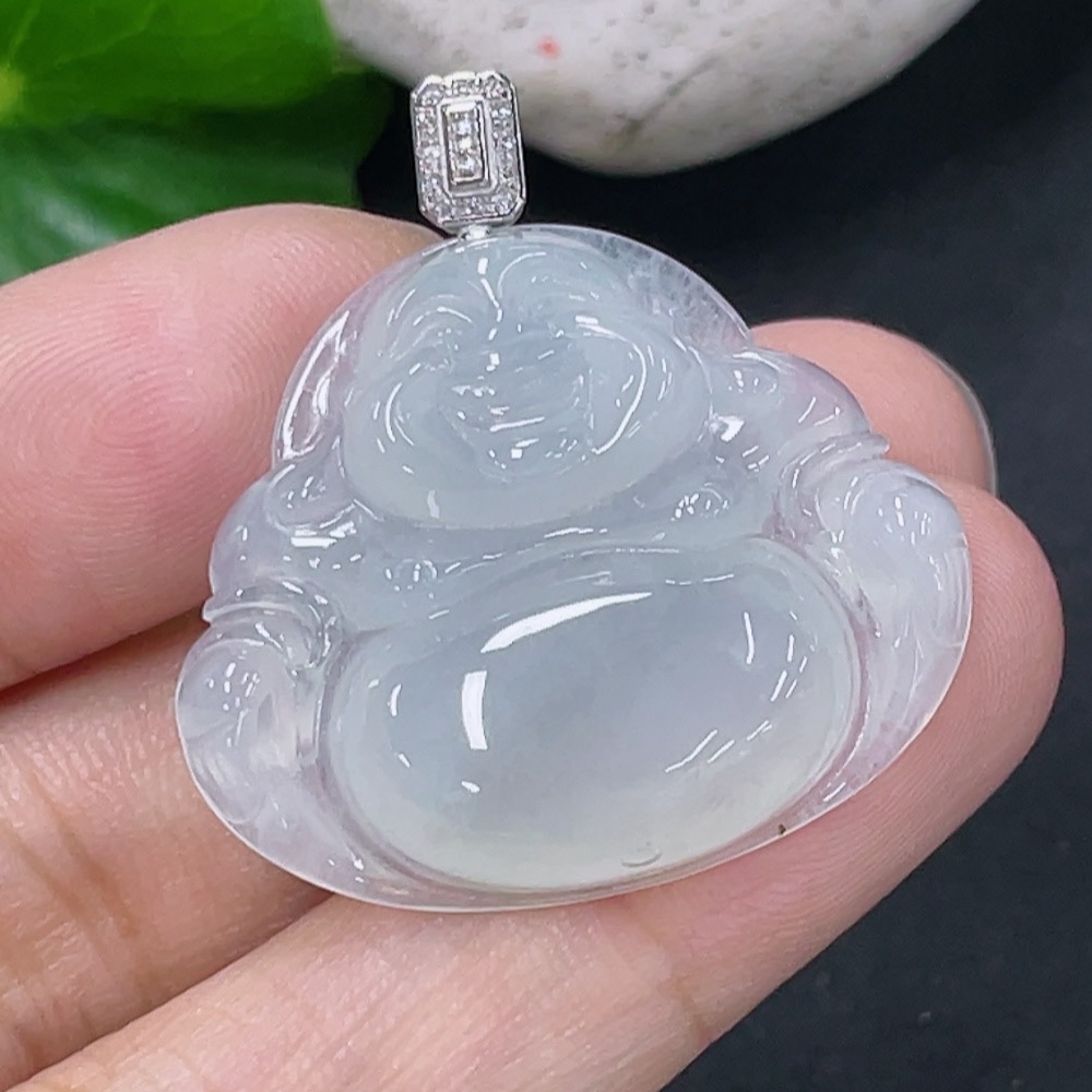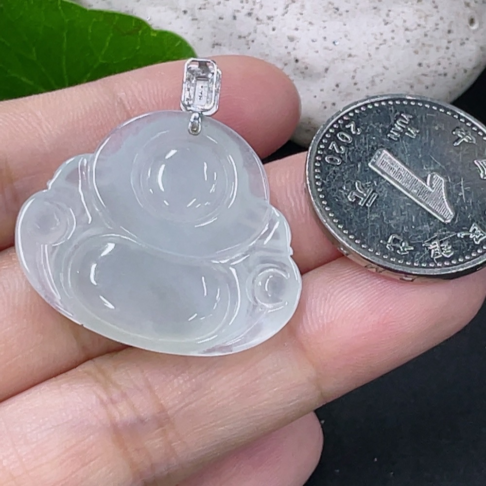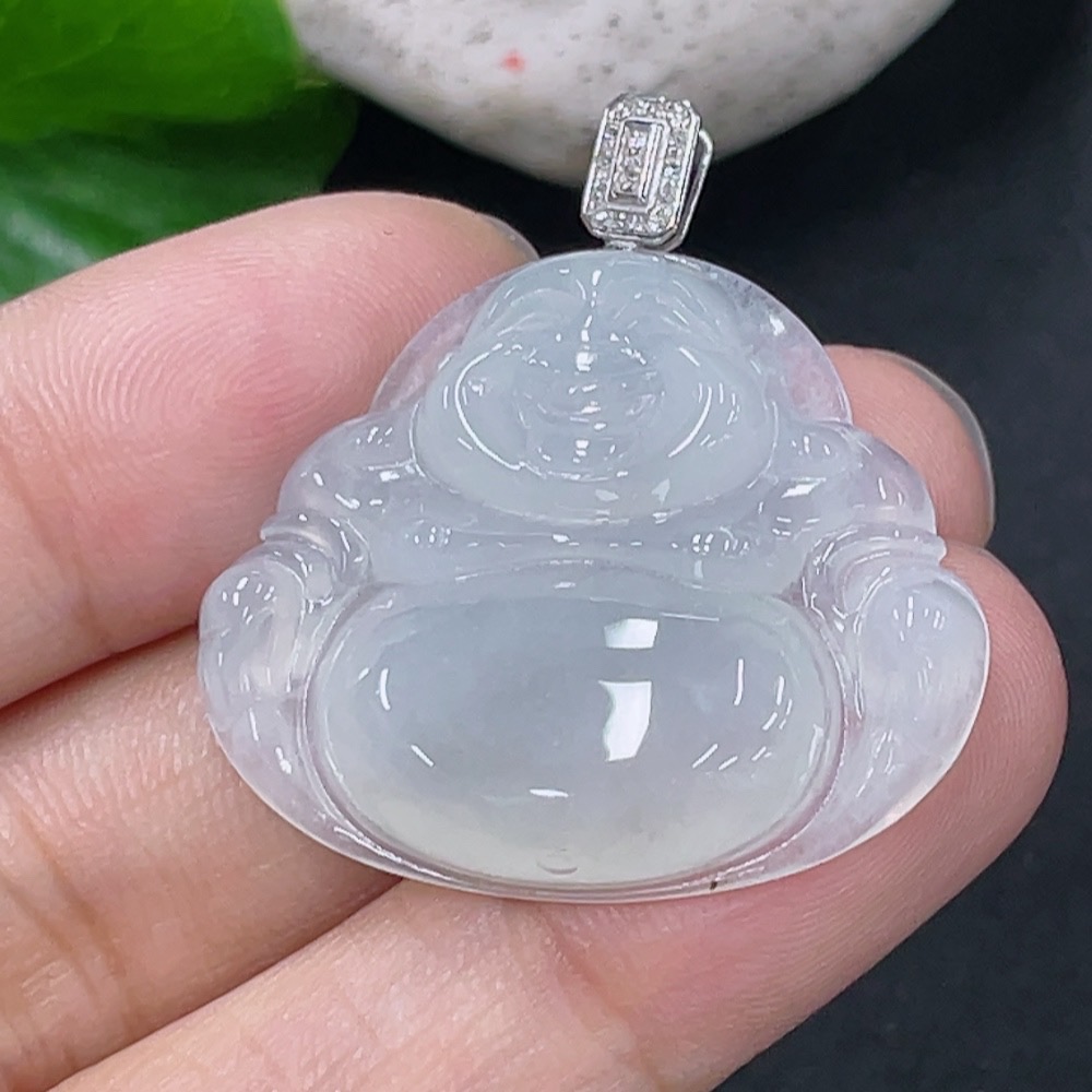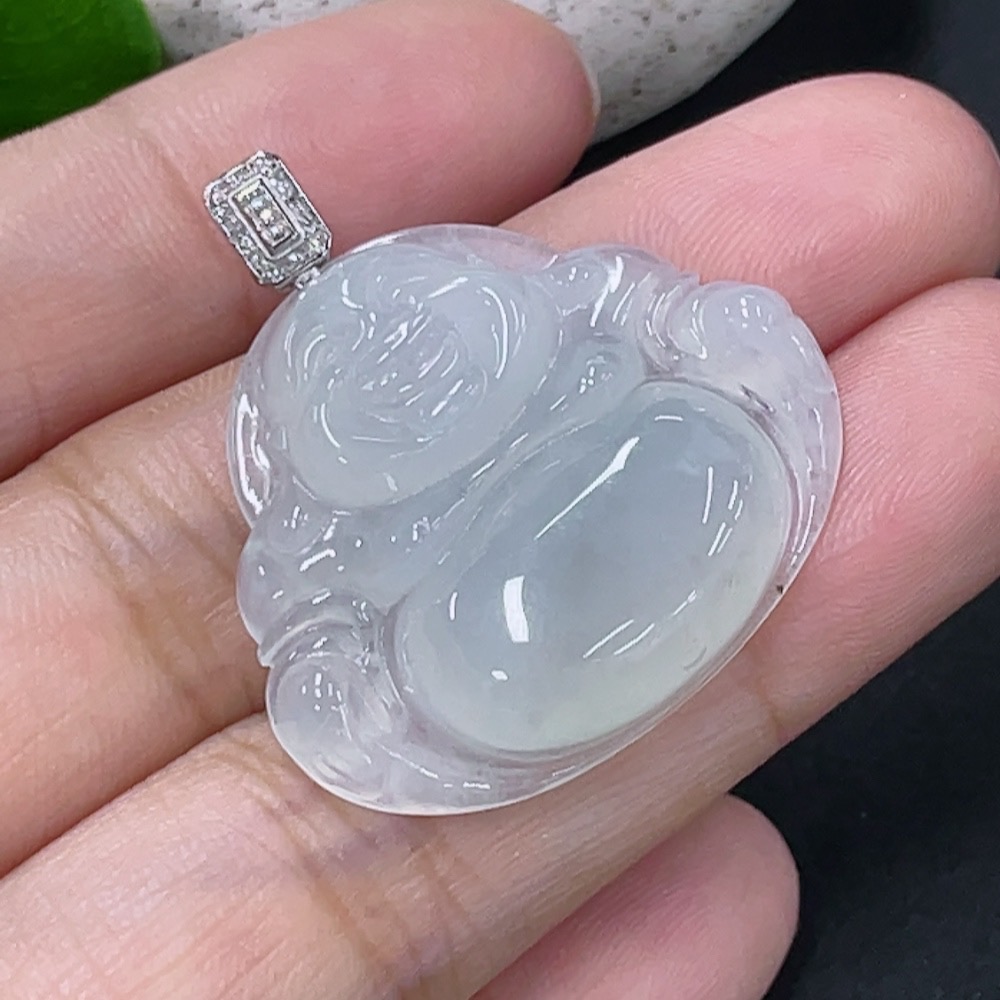Jadeite Buddha Pendant 18K Gold Total Weight Approx. 6.1g (With Diamond Inlay)