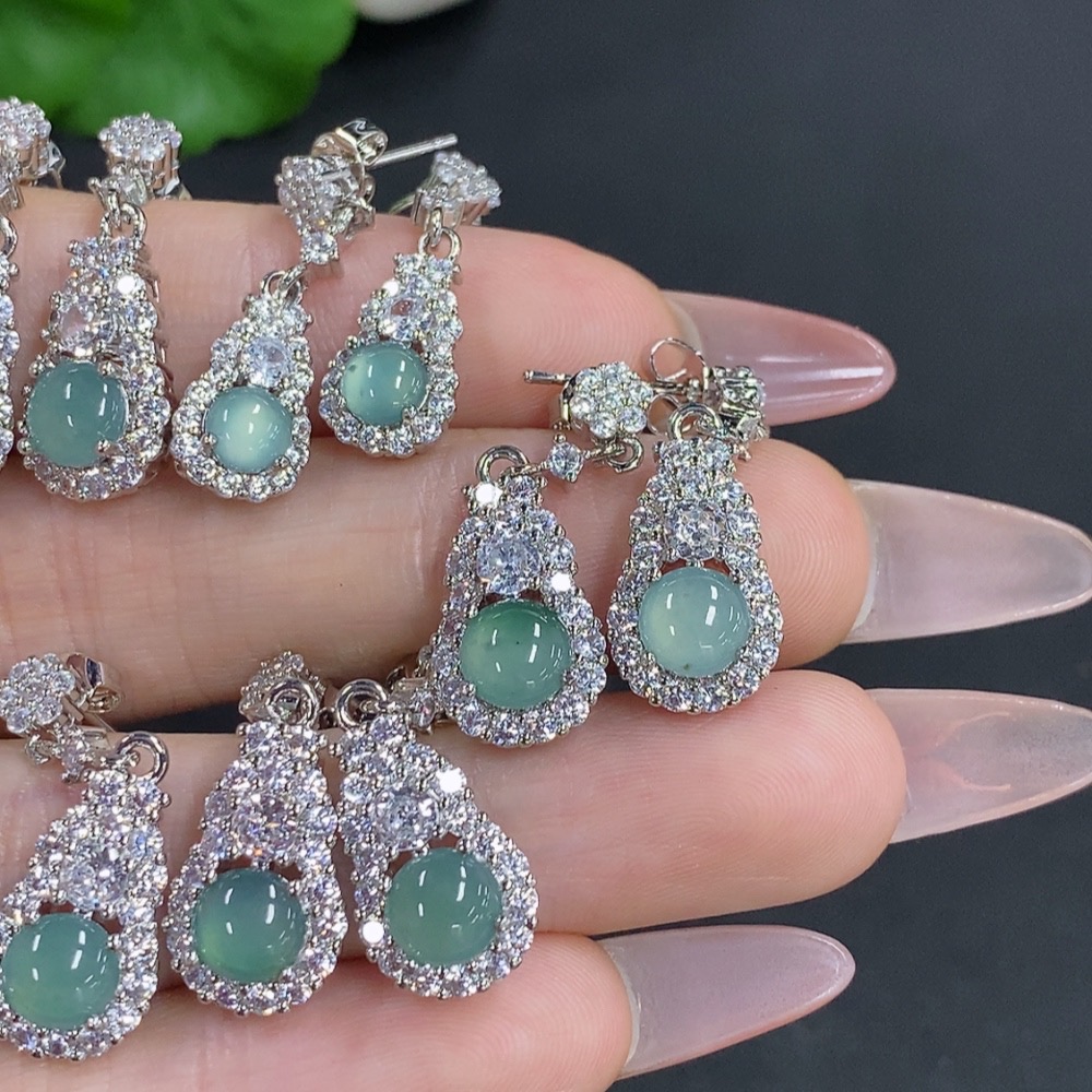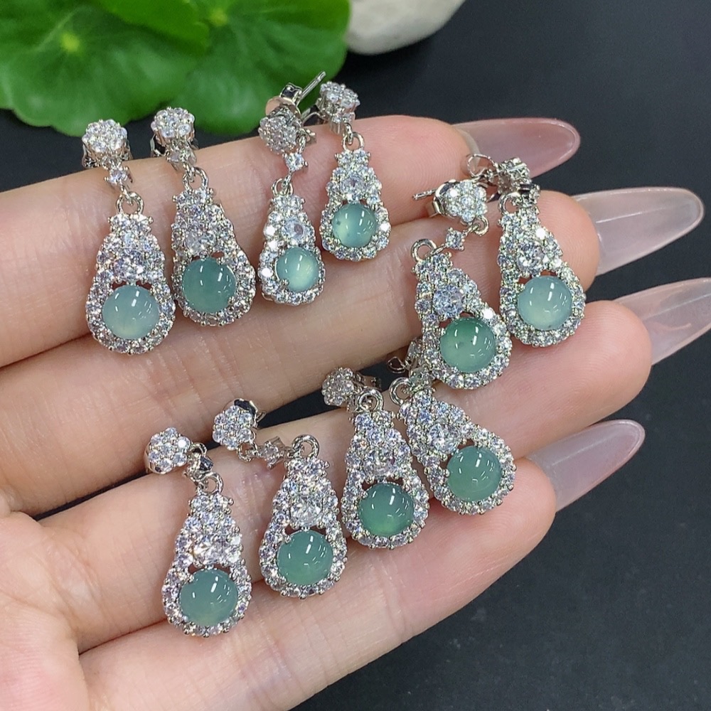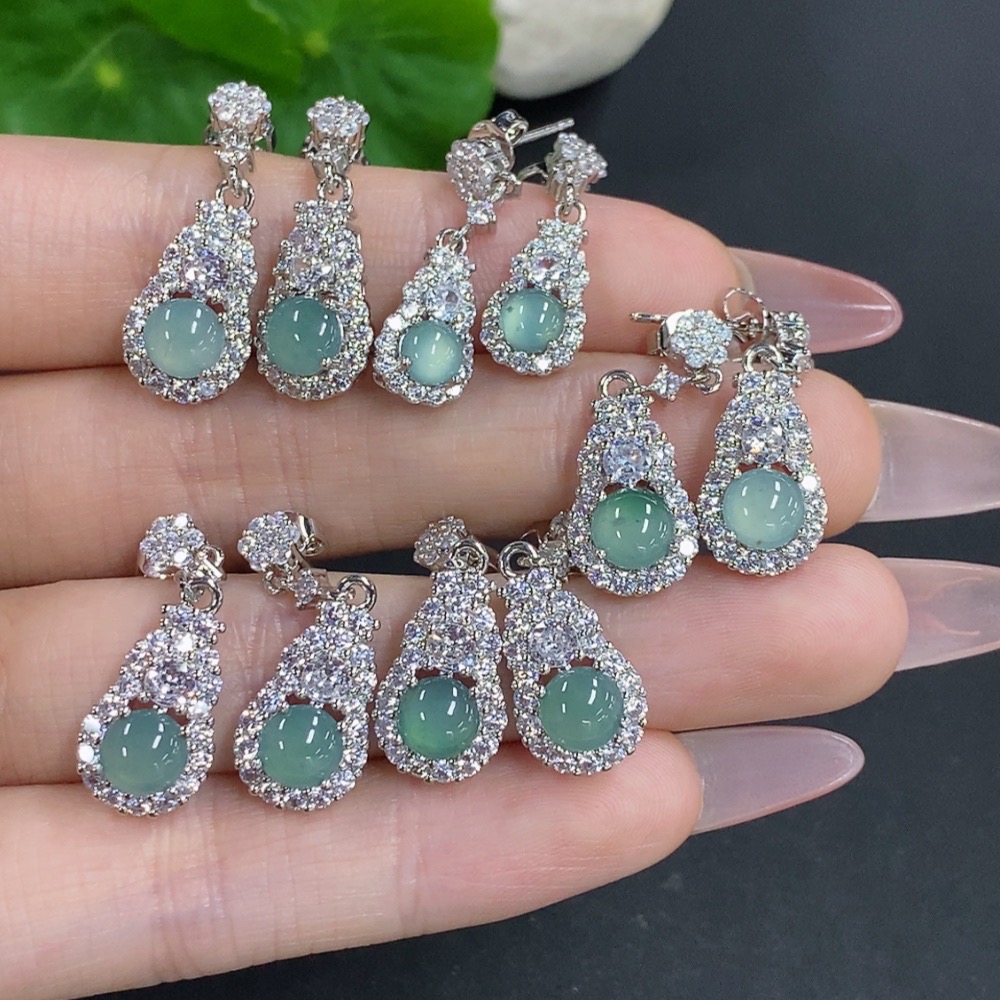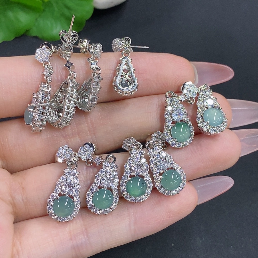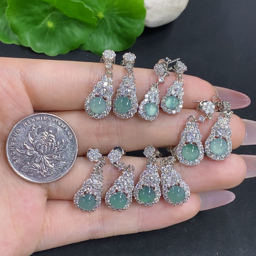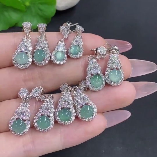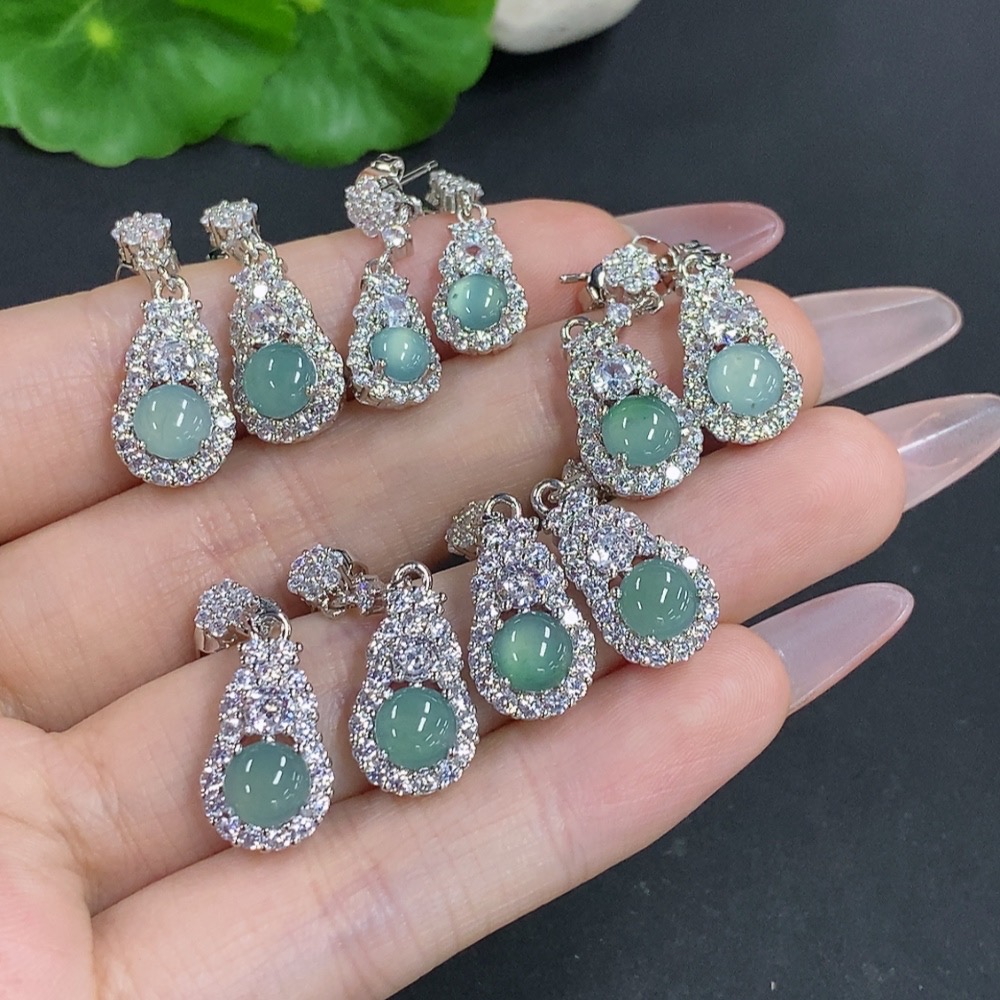 Jadeite Cabochon Stud Earrings Sell as a Lot Non-Gold Setting