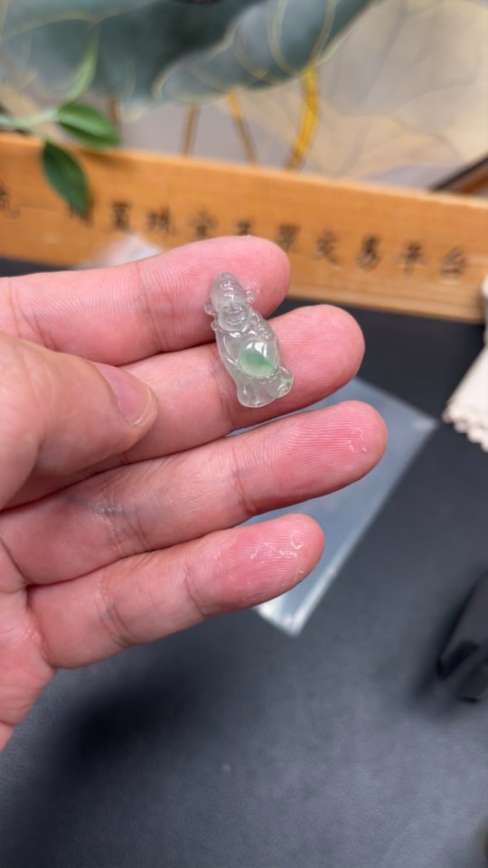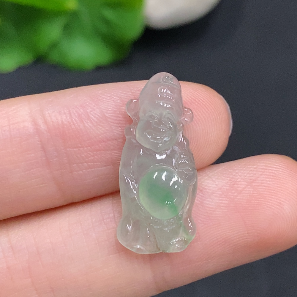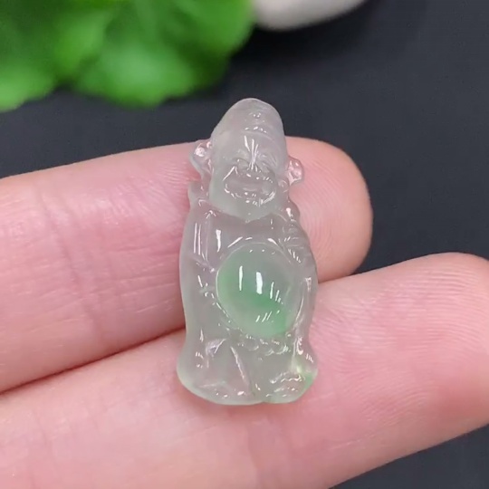 Jadeite God of Wealth Pendant, Total Weight Approx. 1.3g