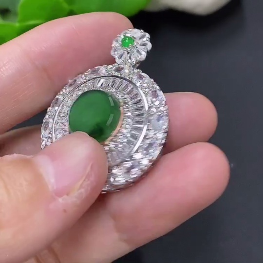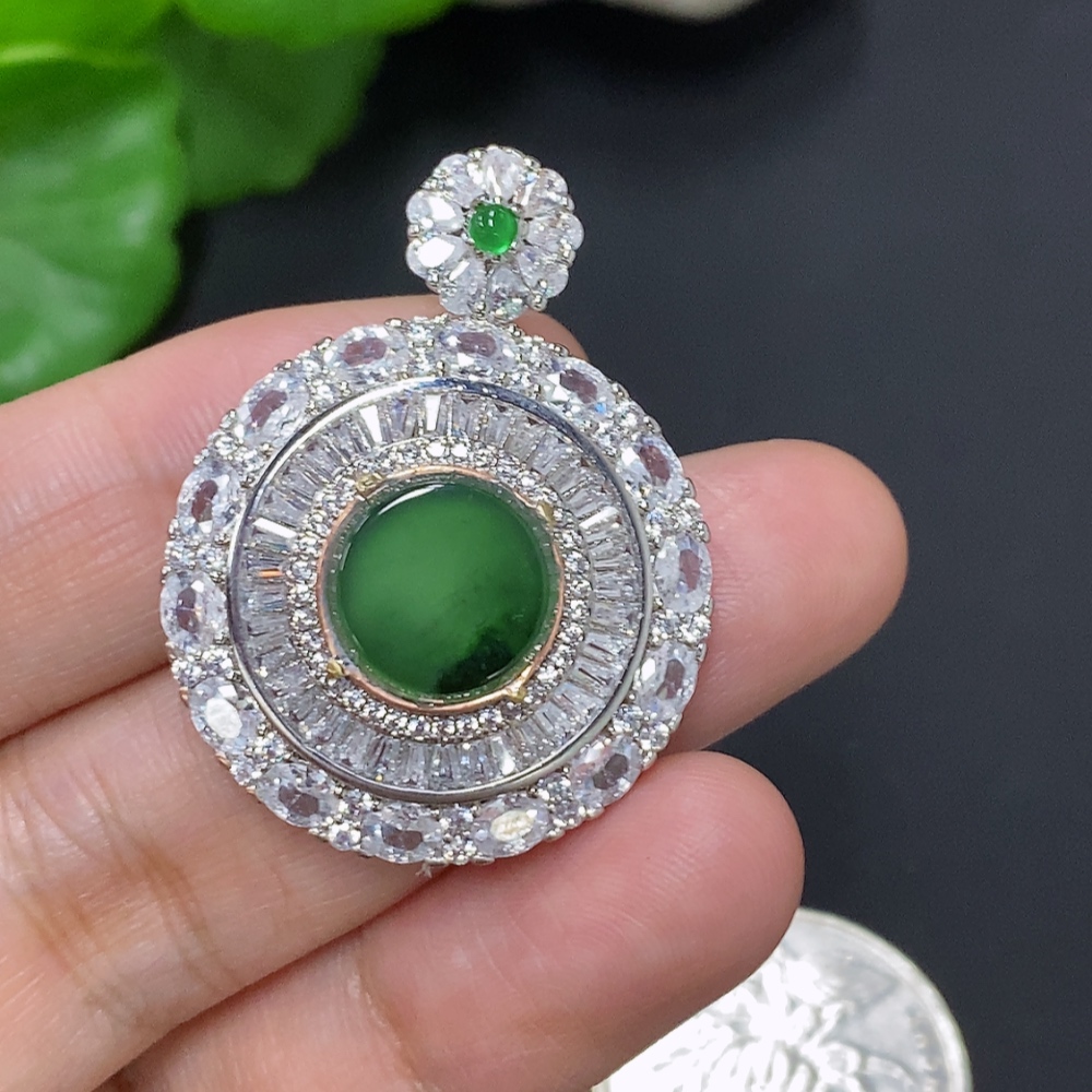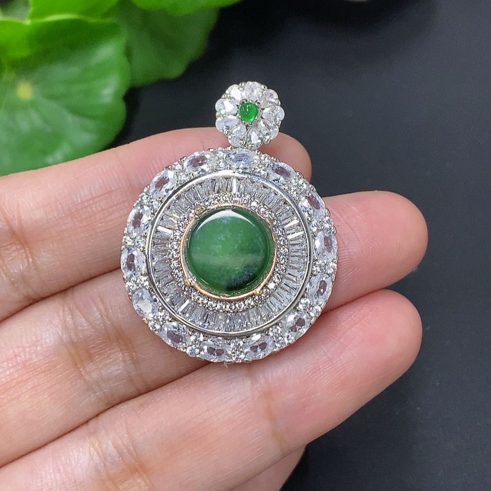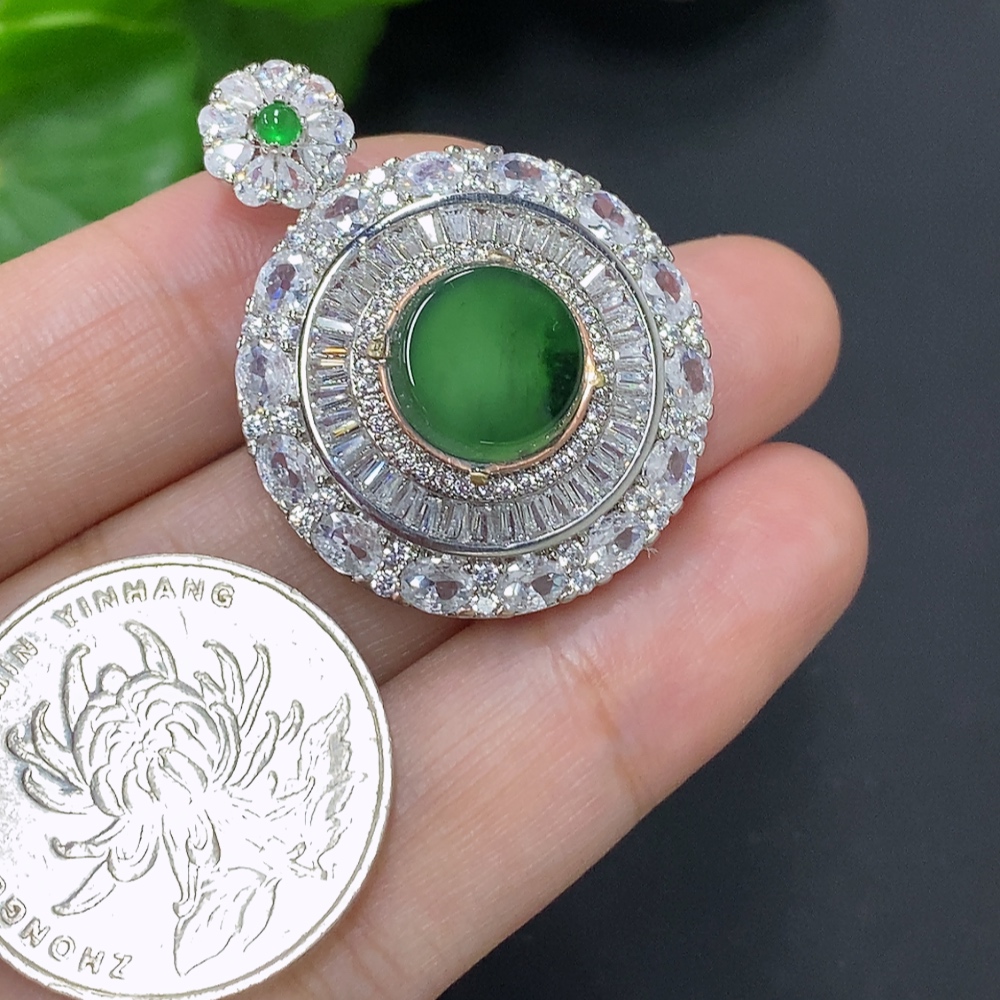 Jadeite Inlaid Pendant Non-Gold Inlaid Total Weight Approx. 7.3g (Mounted Stones Non-Grade A)