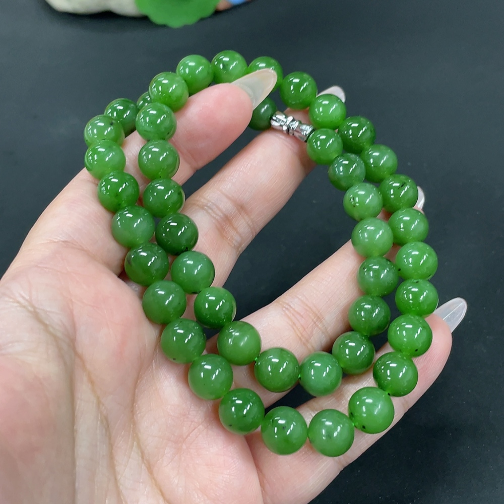 Hetian Jade Jasper Bead Necklace Non-Gold Approx. 9.2mm Total Weight Approx. 61.4g