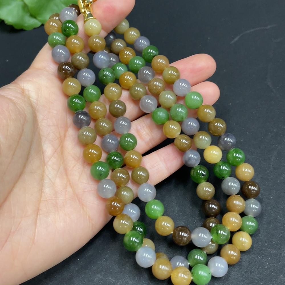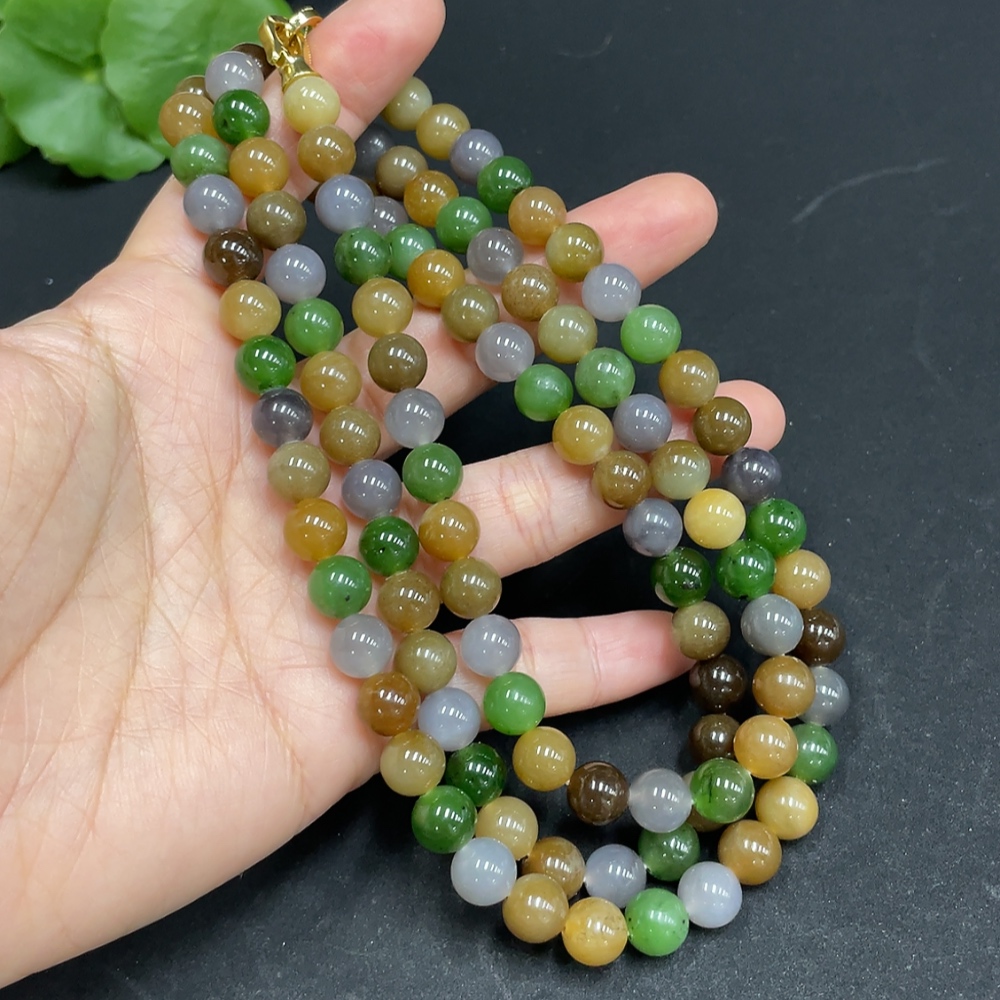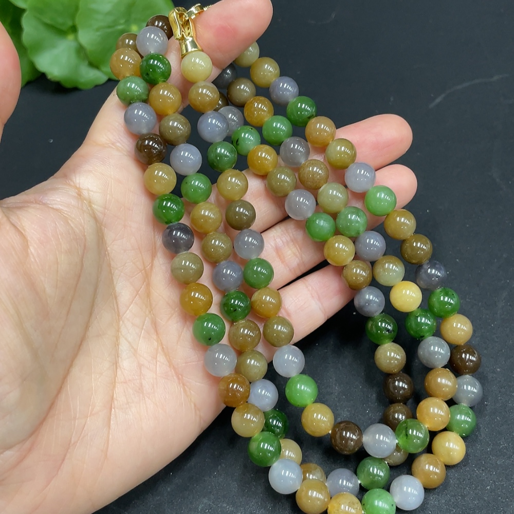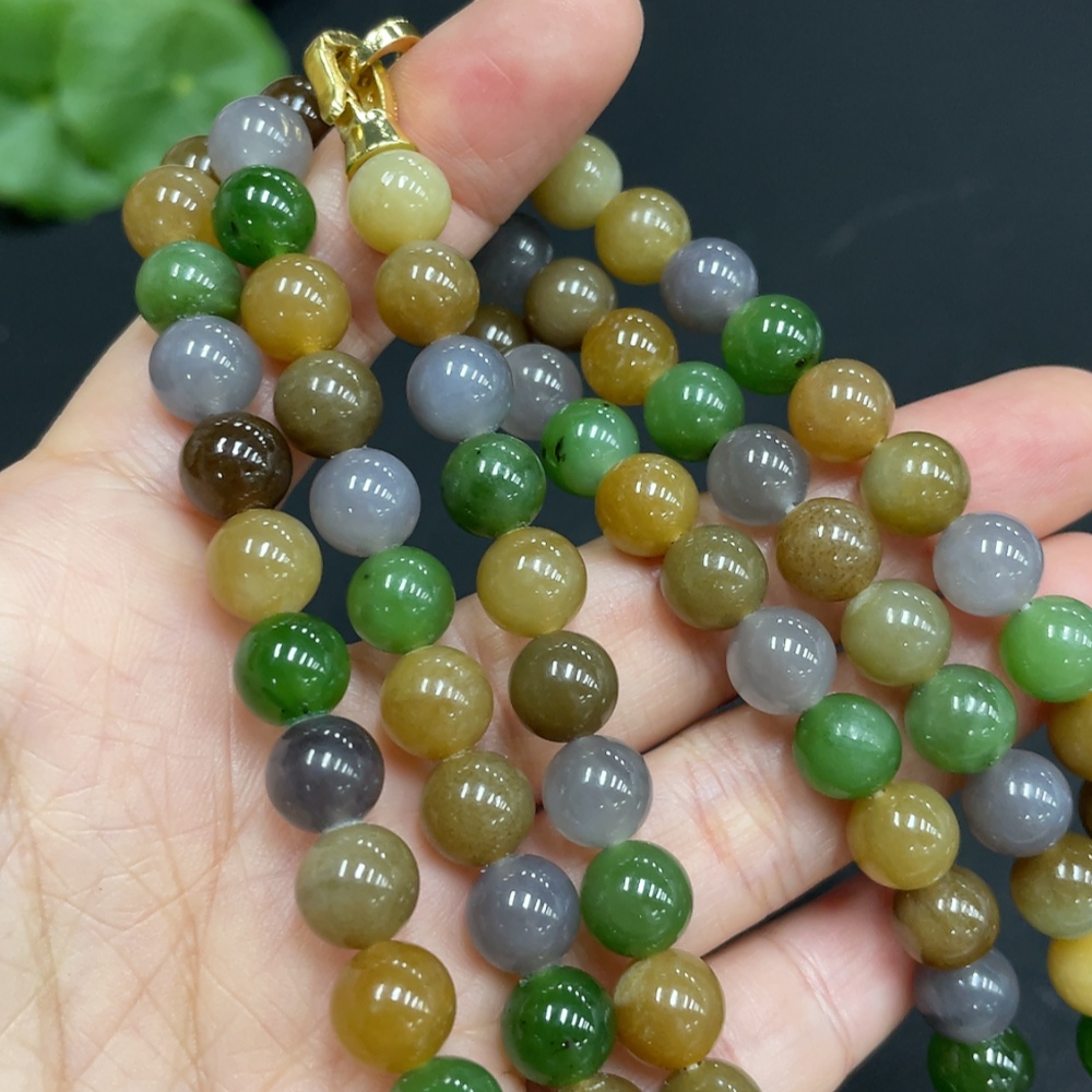 Hetian Jade Bead Necklace, Approx. 7.5mm, Non-Gold Inlaid, Total Weight Approx. 86.1g