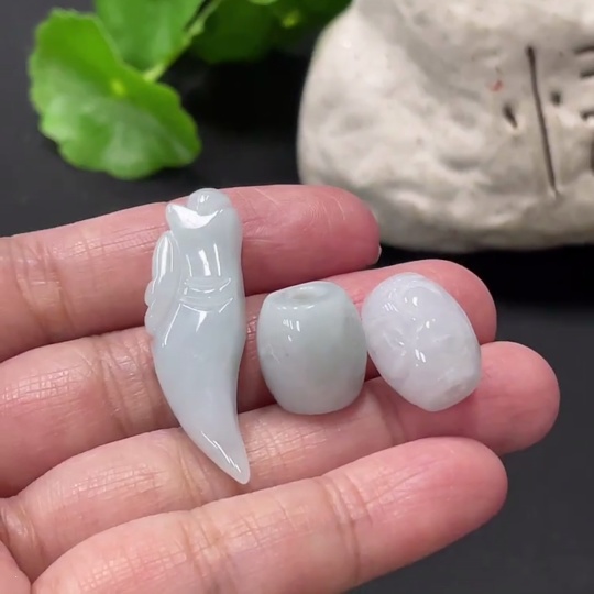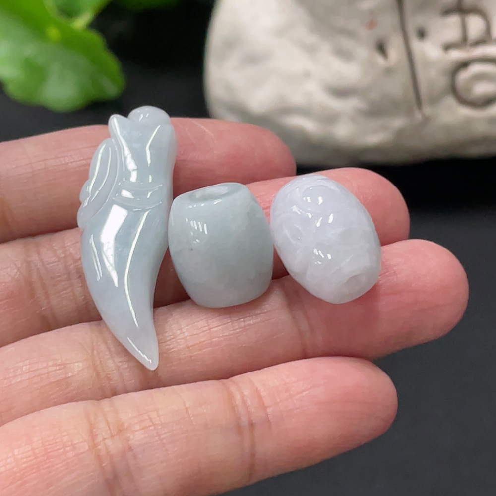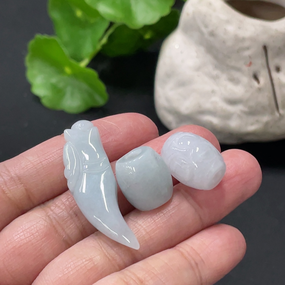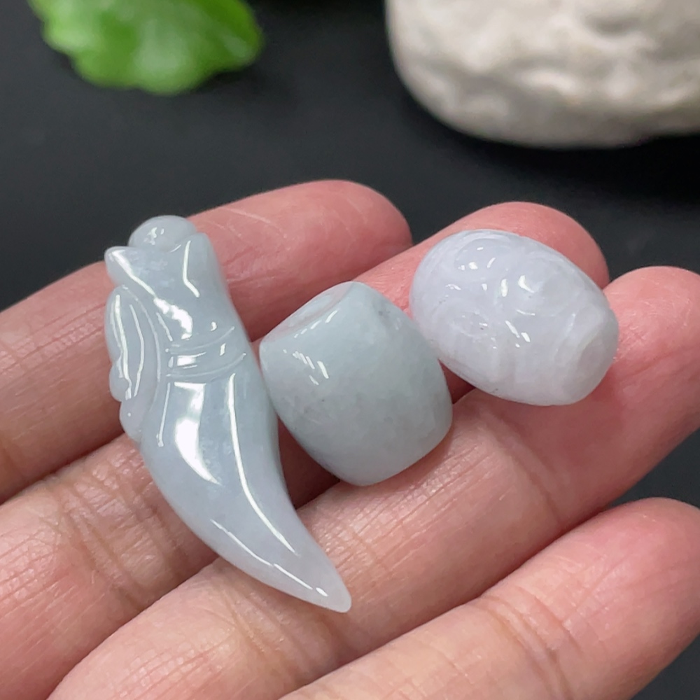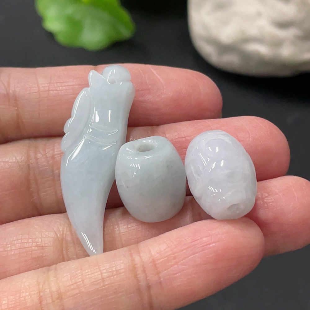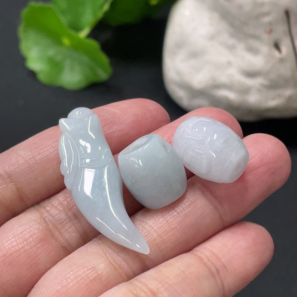 Jadeite Dragon Tooth Pendant + Beads Total Weight Approx.12.68g