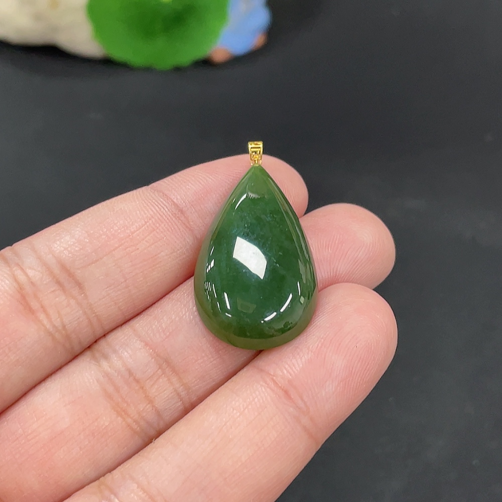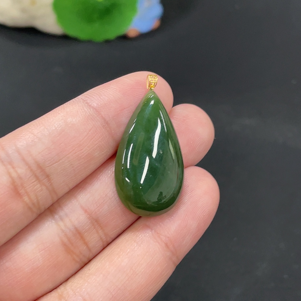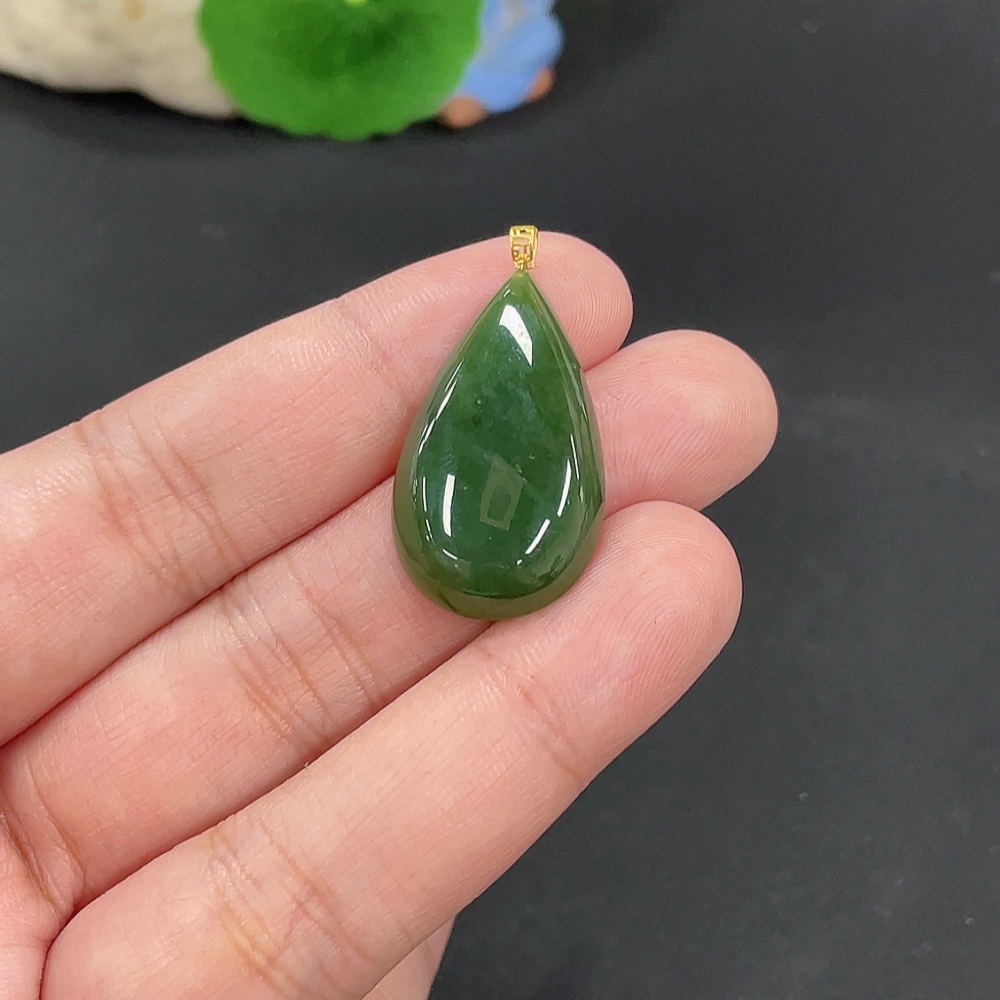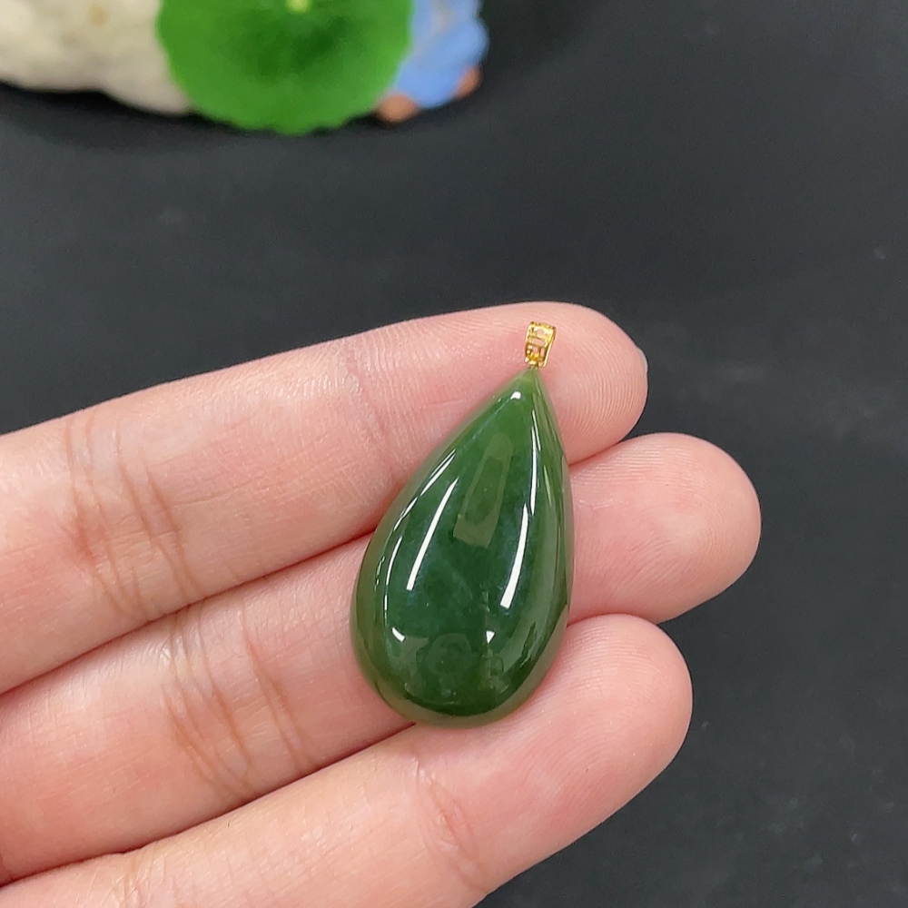 Hetian Jade Inlaid Pendant, Water Drop, Total Weight Approx. 4.4g, Gold Content 74%