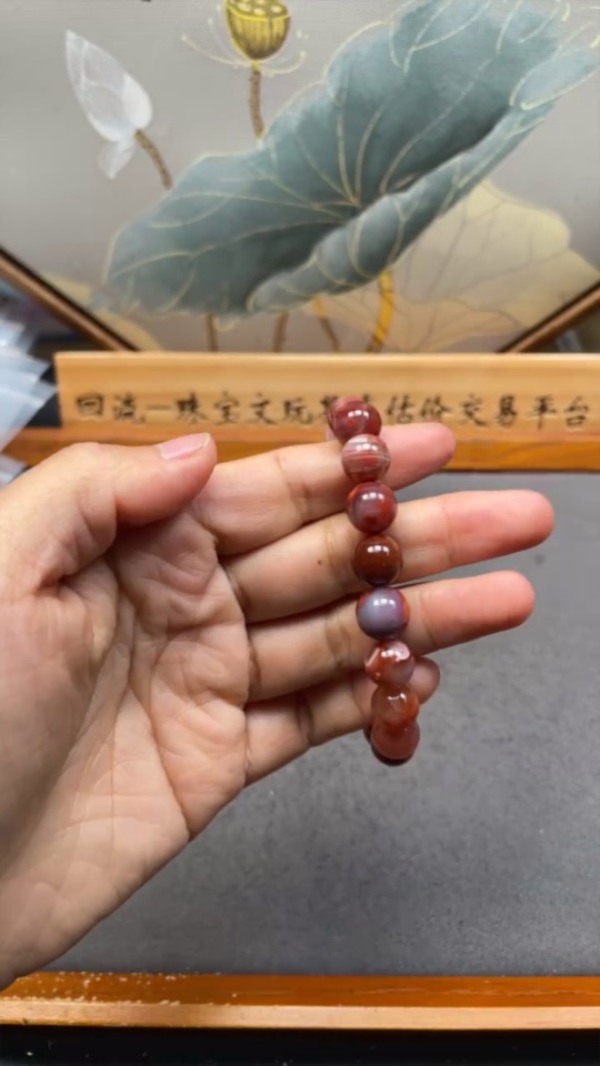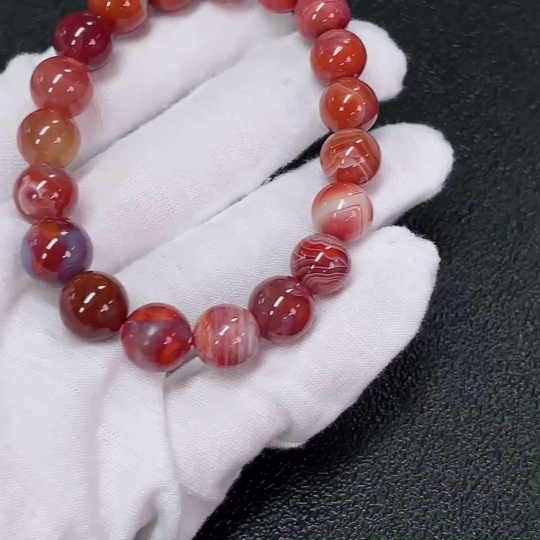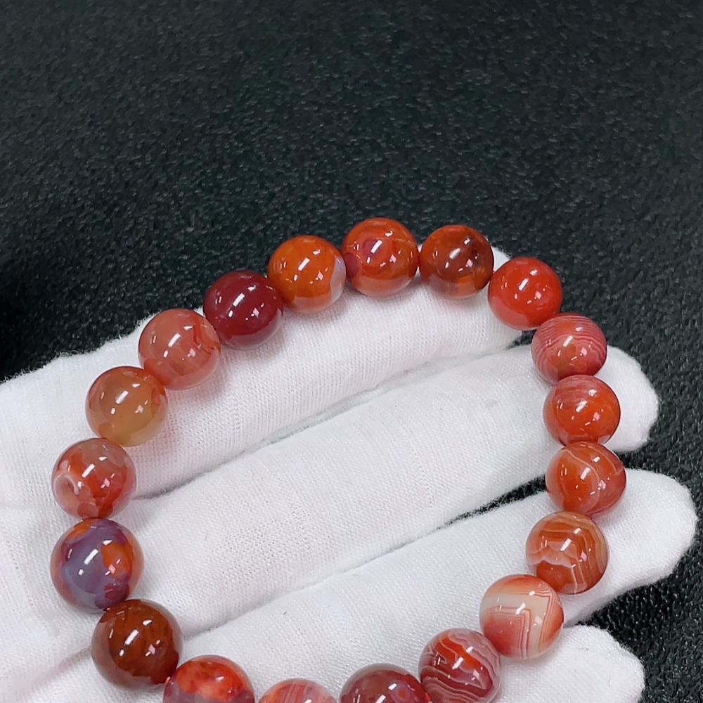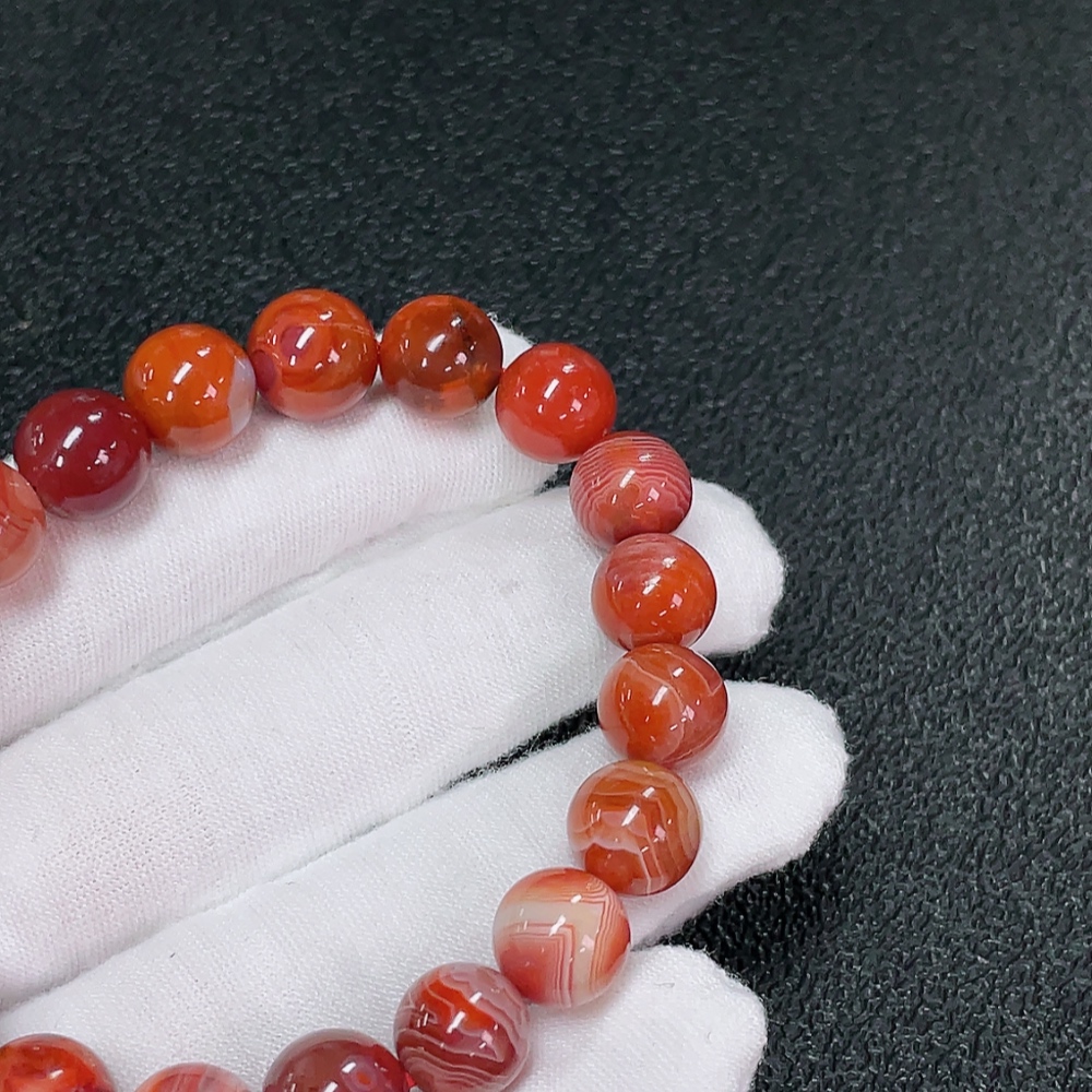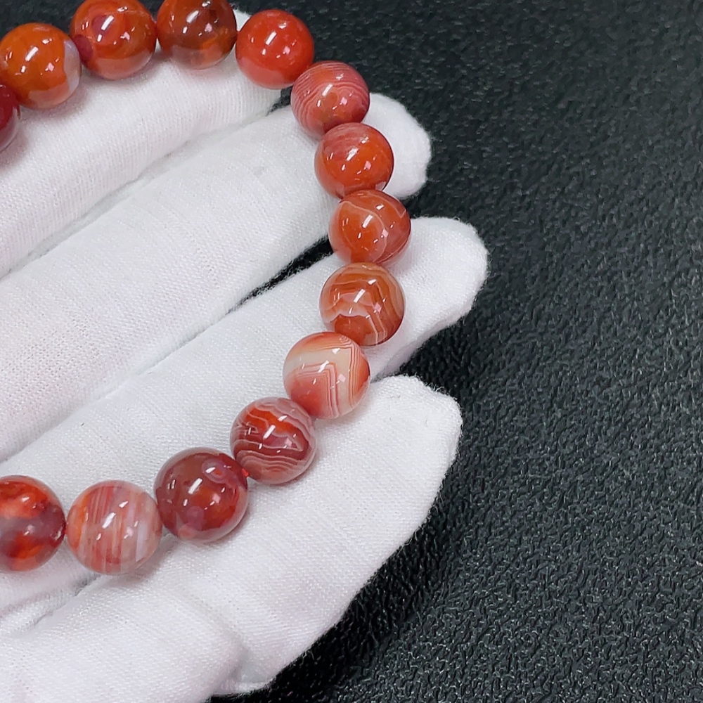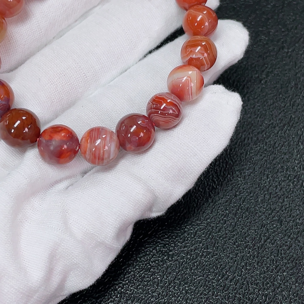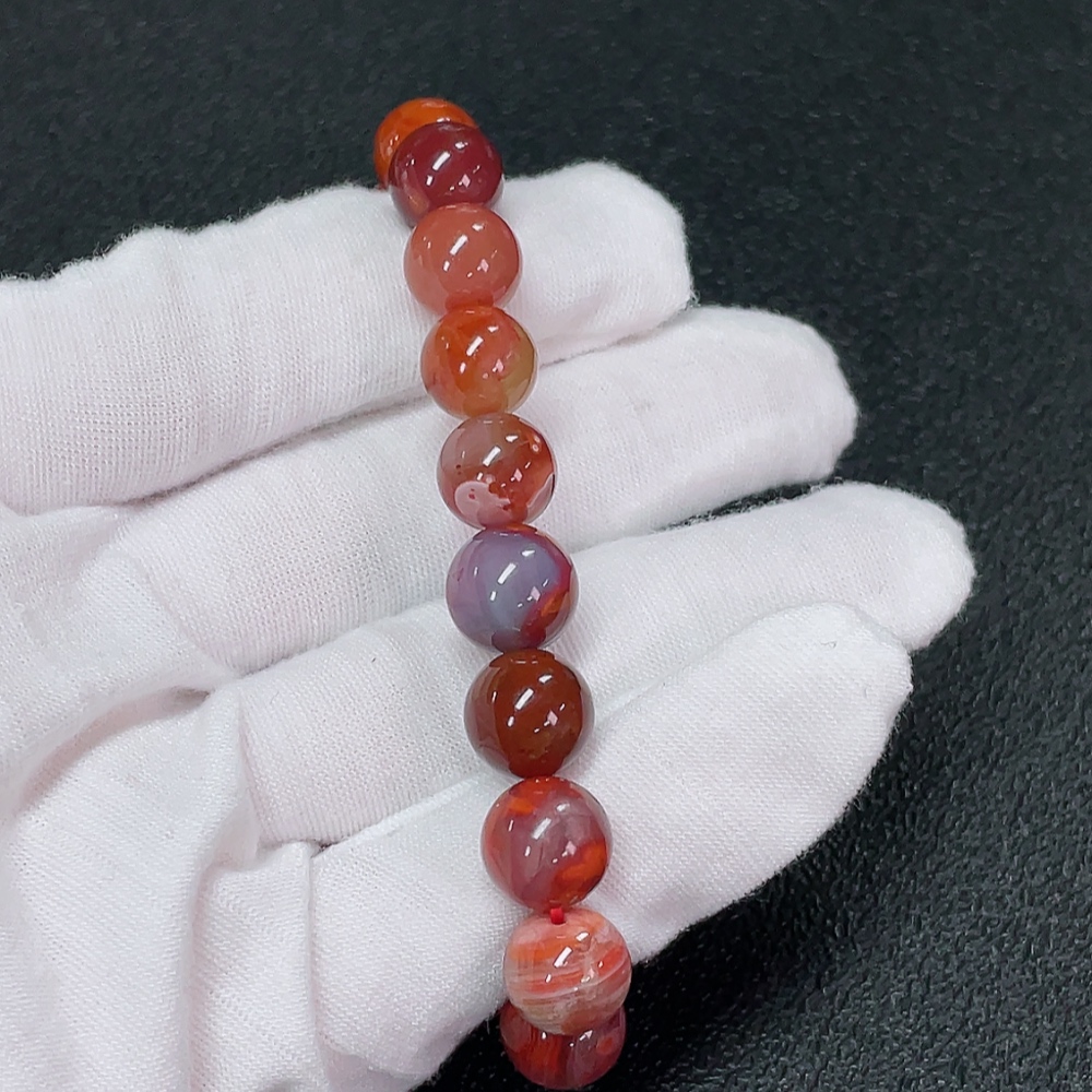 Red Agate Bracelet with Visible Organic Matter, Total Weight Approx. 25.31g, Bead Size About 9.9mm