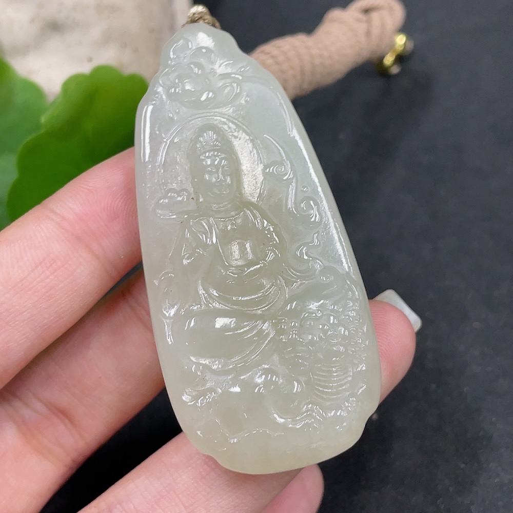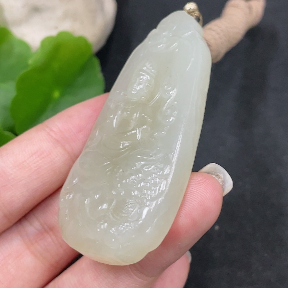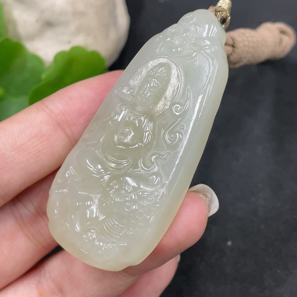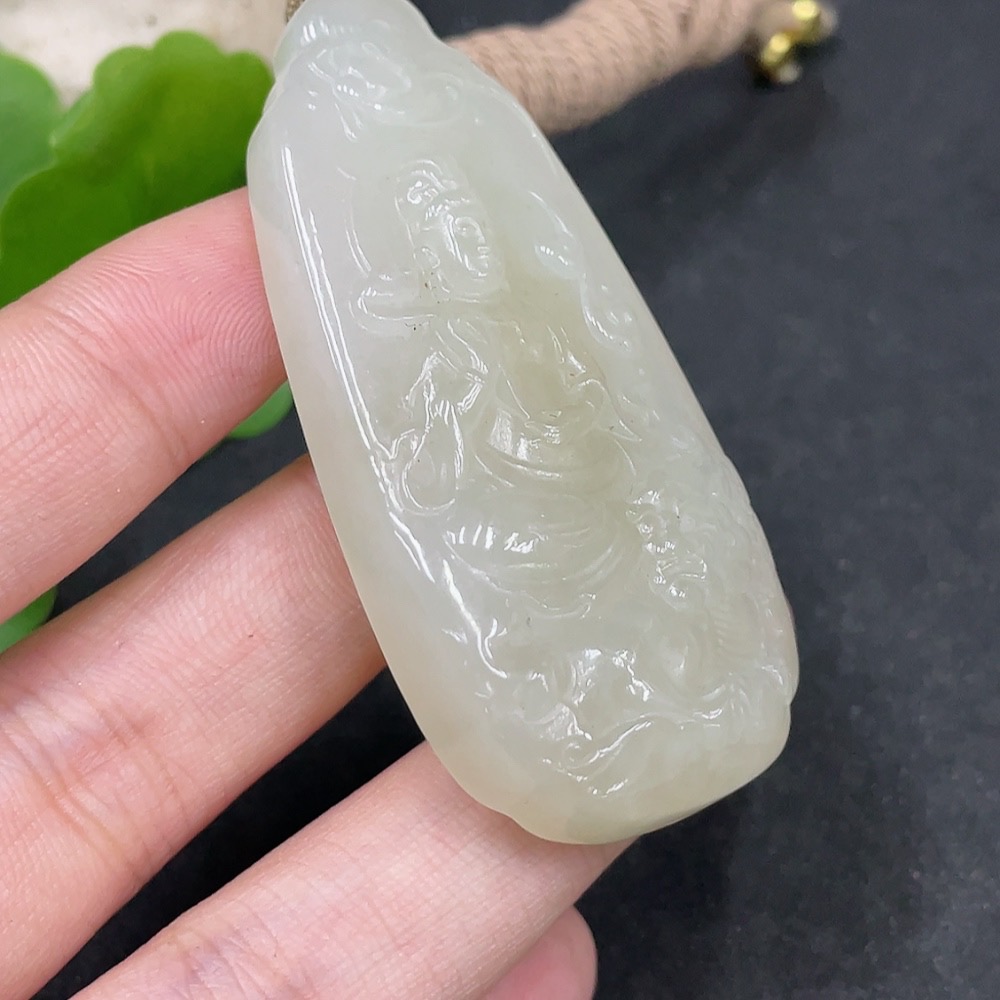 Hetian Jade Pendant Manjusri Bodhisattva Total Weight (including rope) 37.3g