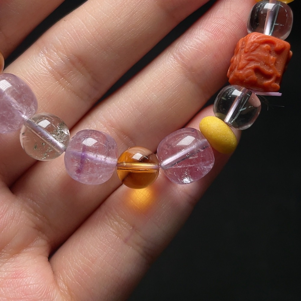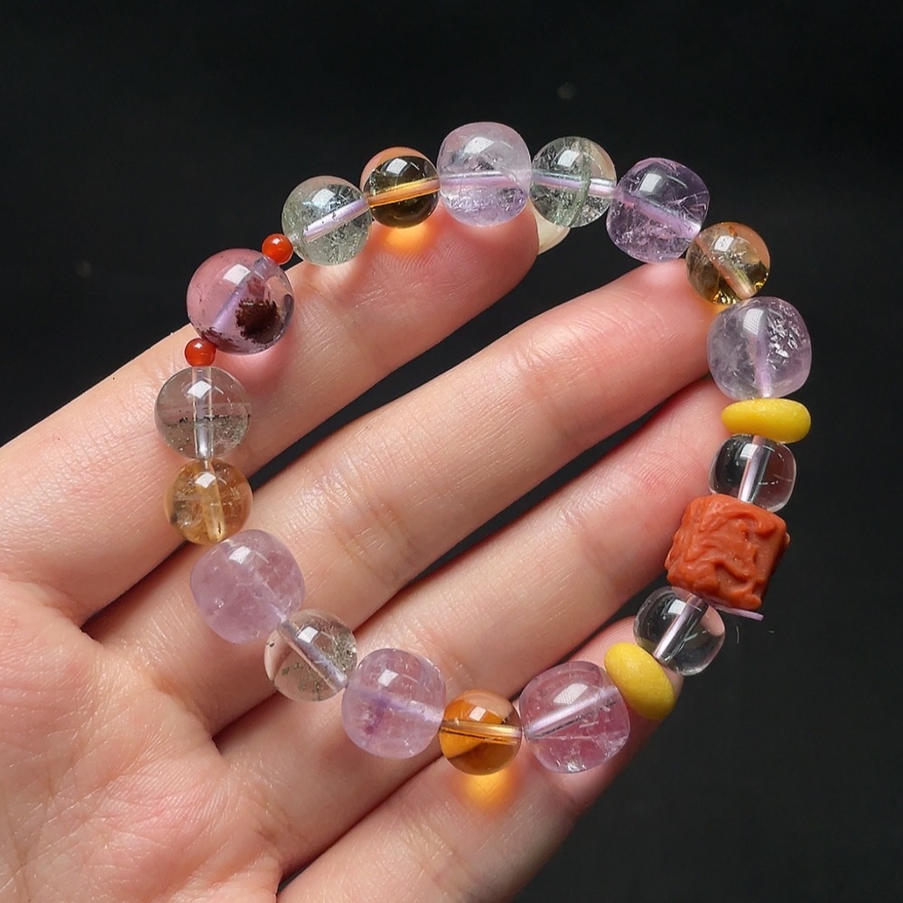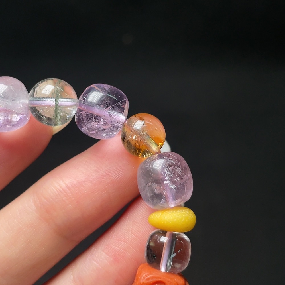 Crystal Bracelet with Amber, Non-Natural Stones Considered, Total Weight Approx. 23.3g, Size About 10.2mm