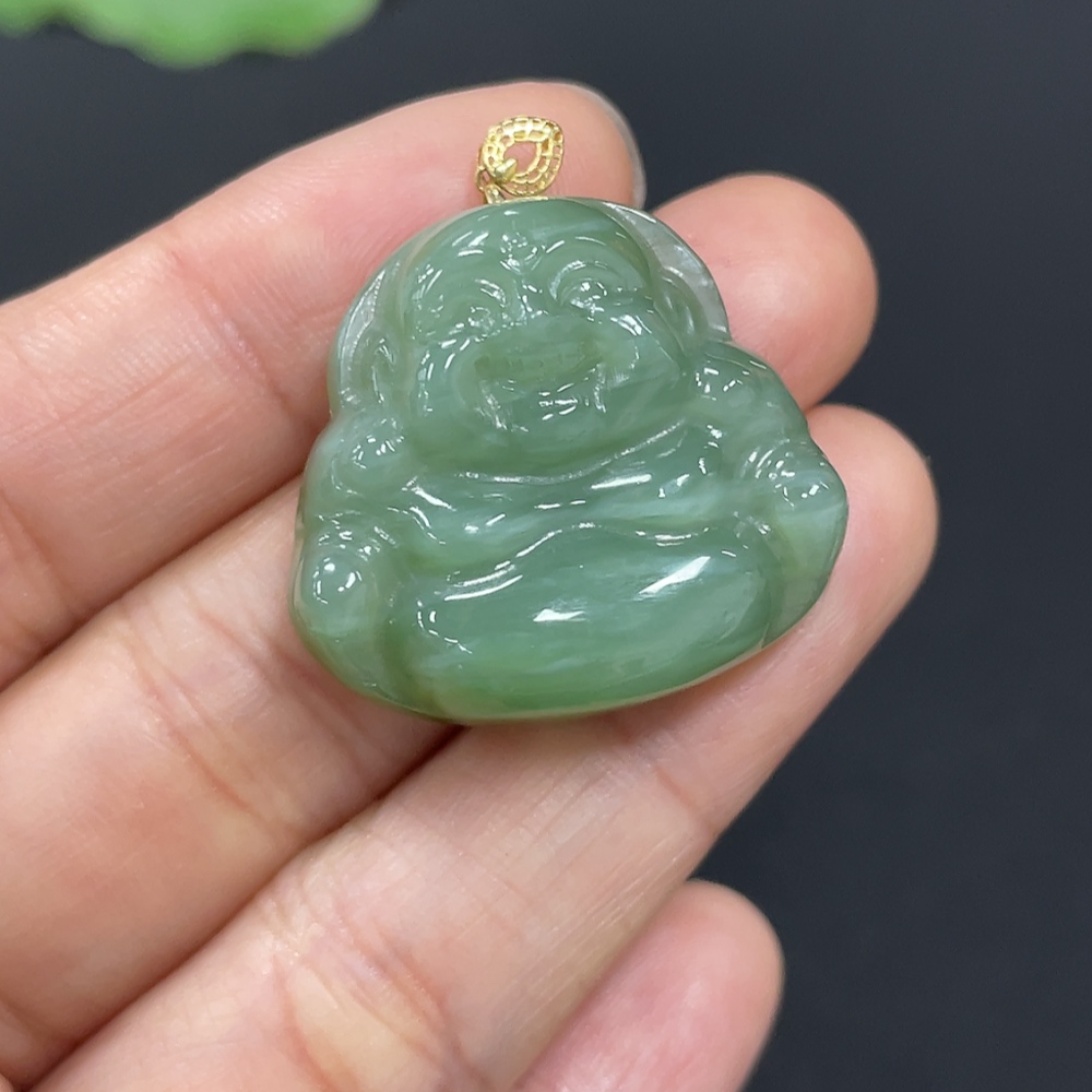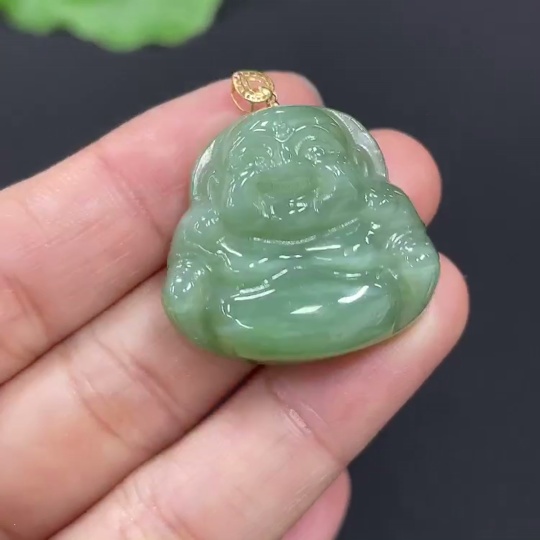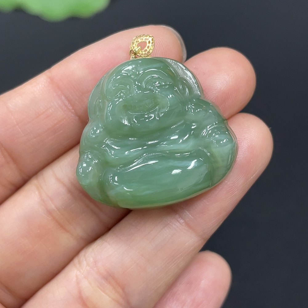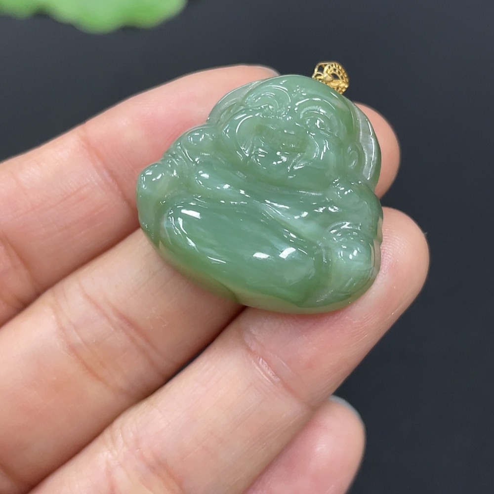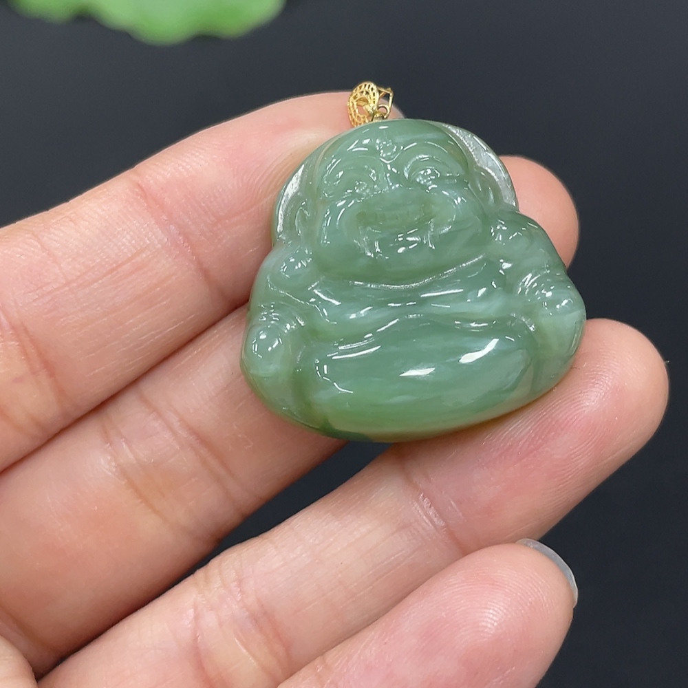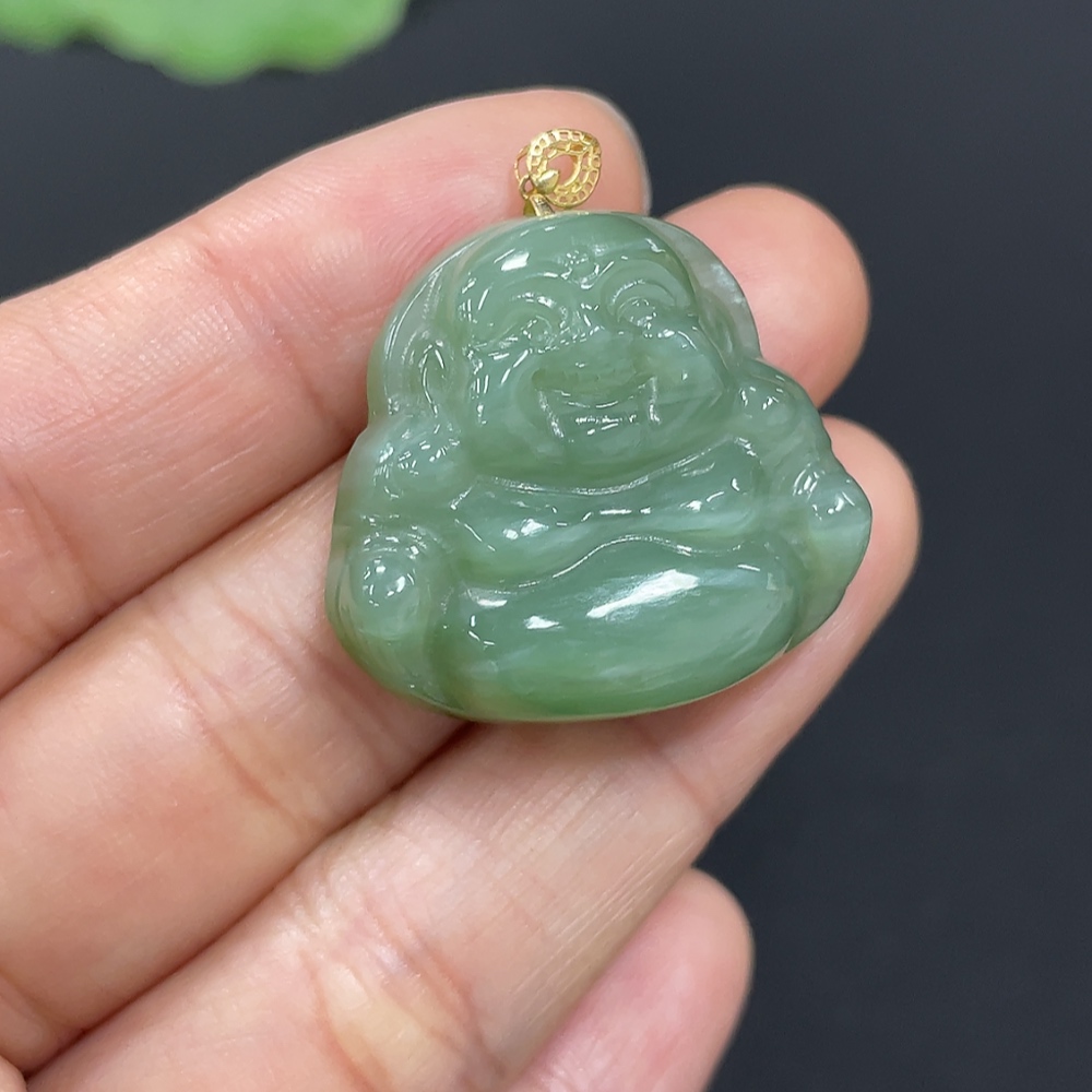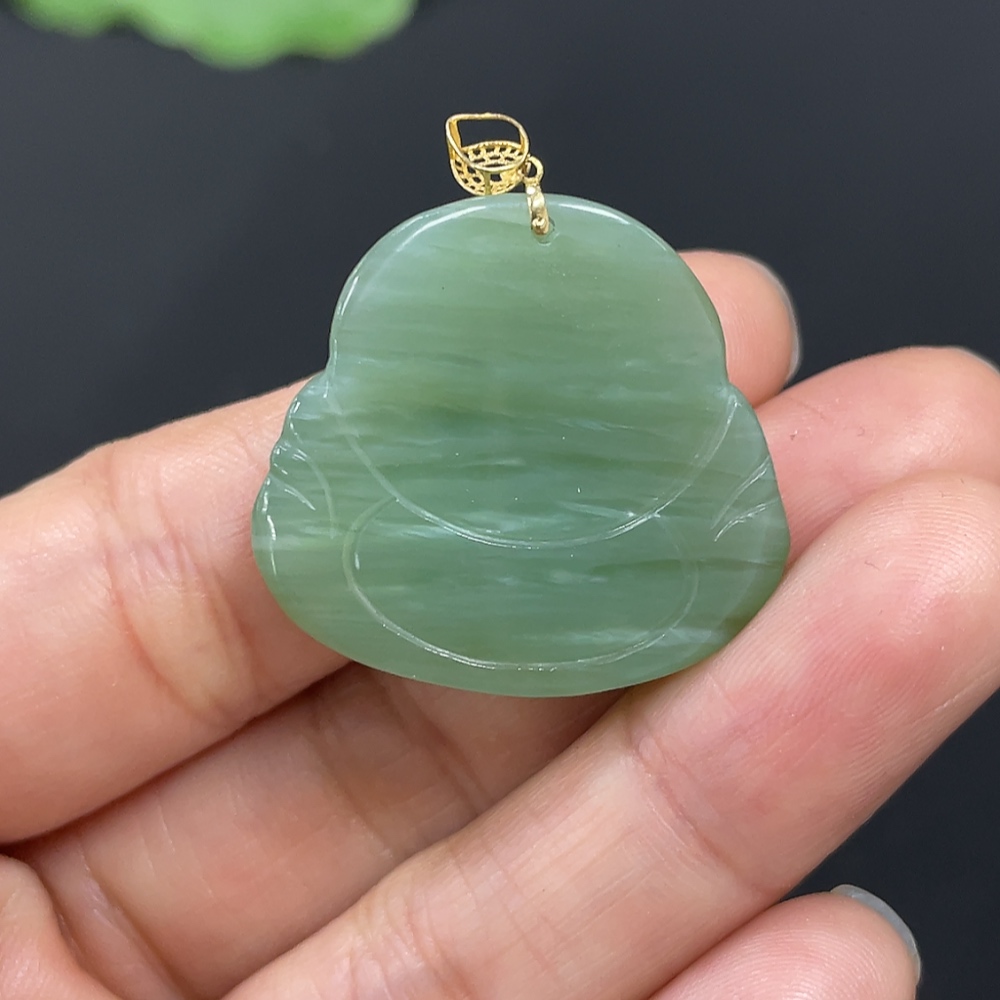 Hetian Jade Jasper Pendant - Buddha - 18K Gold Clasp - Total Weight Approx. 9.6g