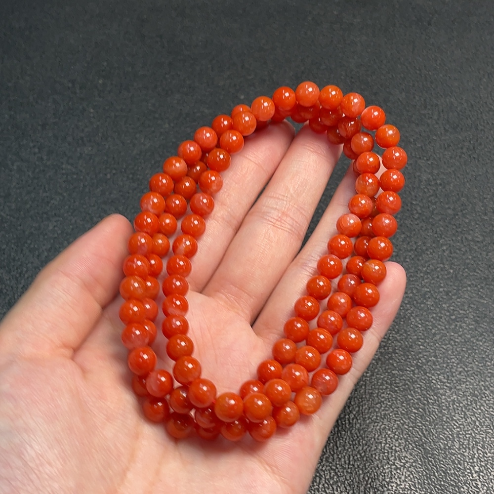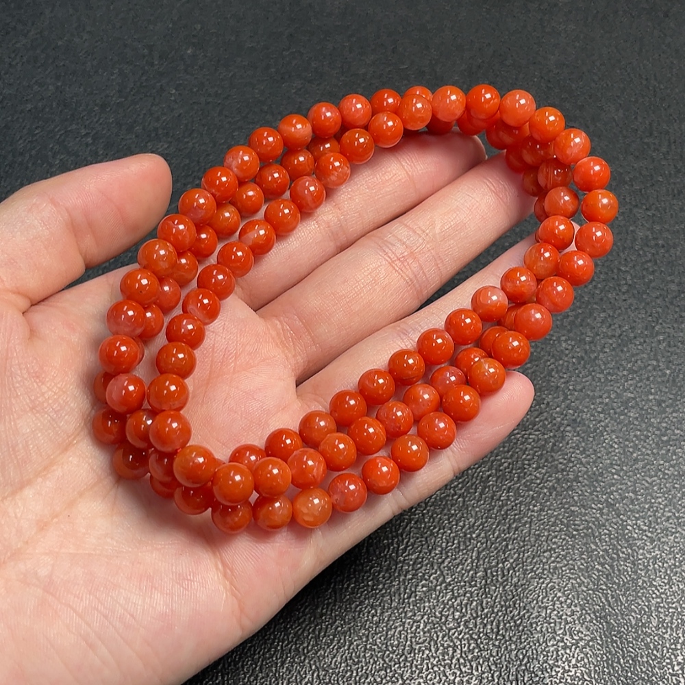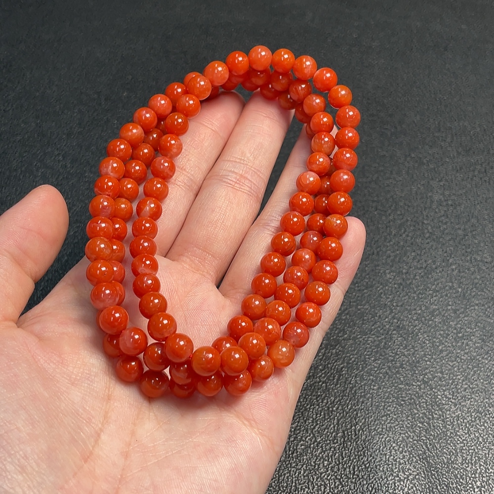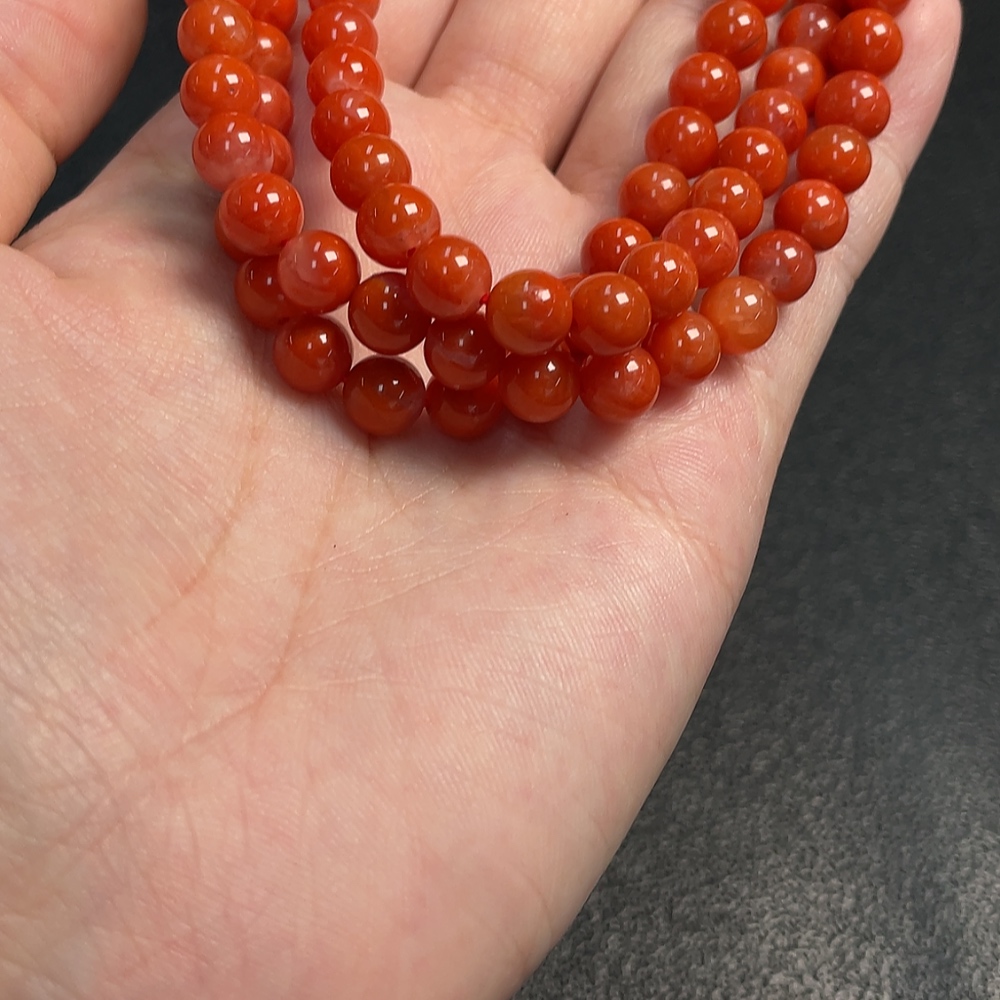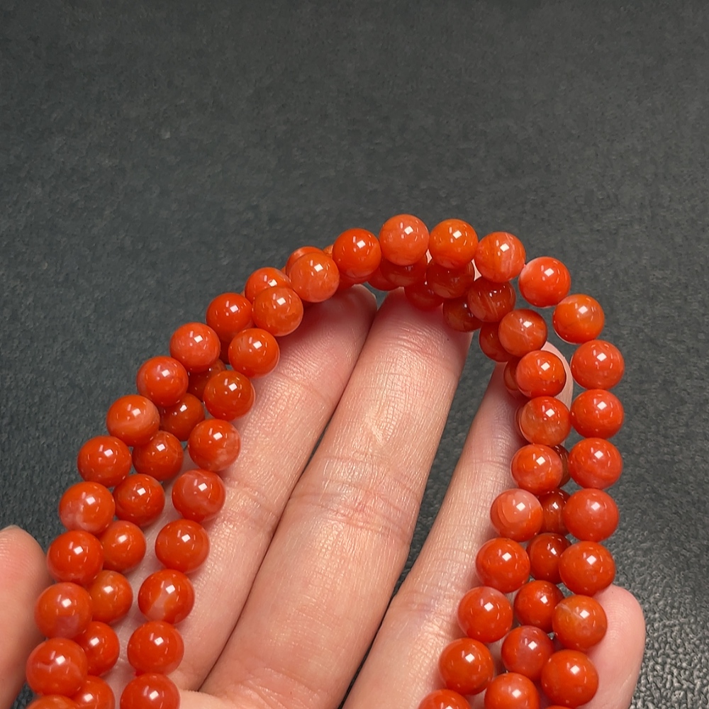 Red Agate Bead Strand with Visible Organic Matter, Total Weight Approx. 46.96g, Size About 6.6mm