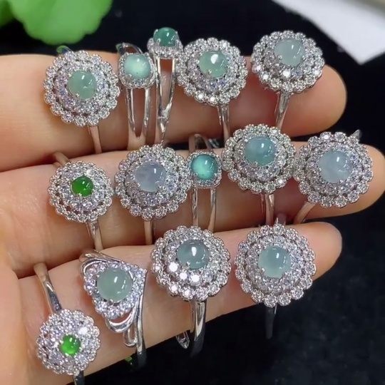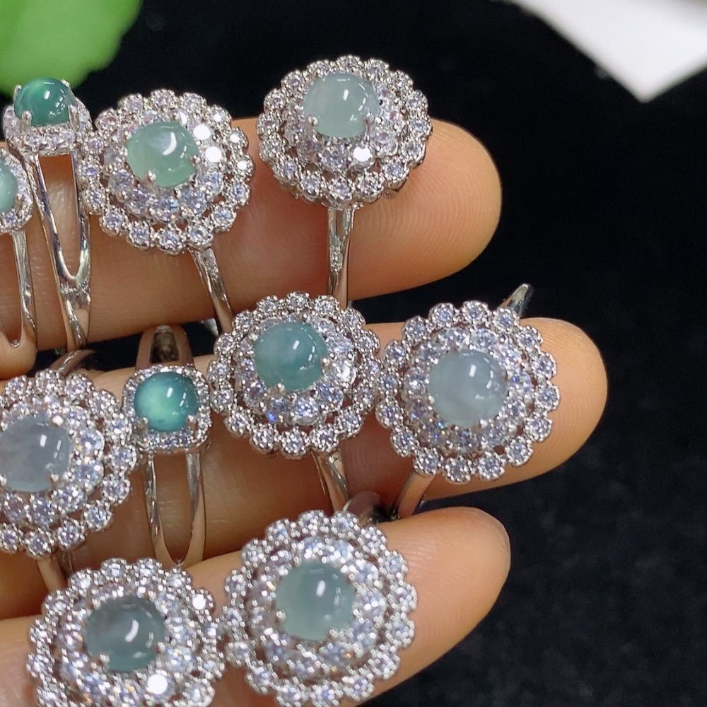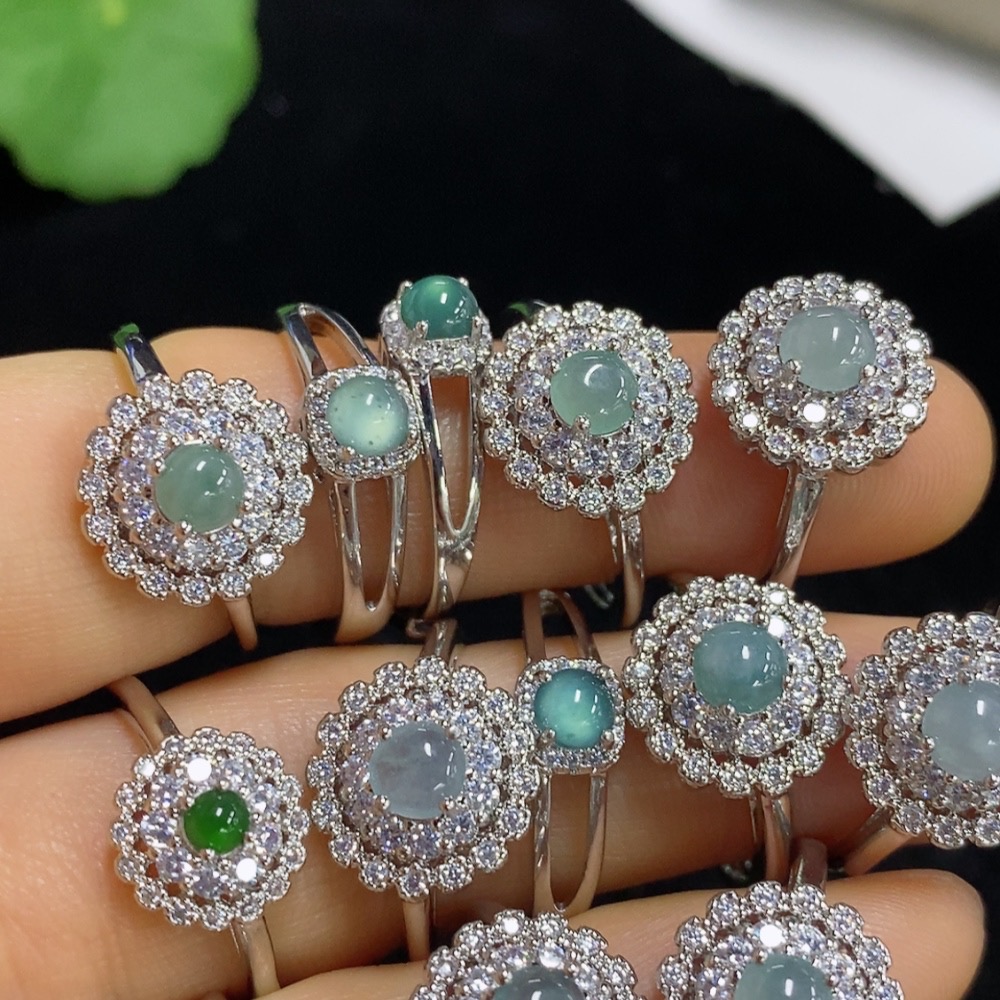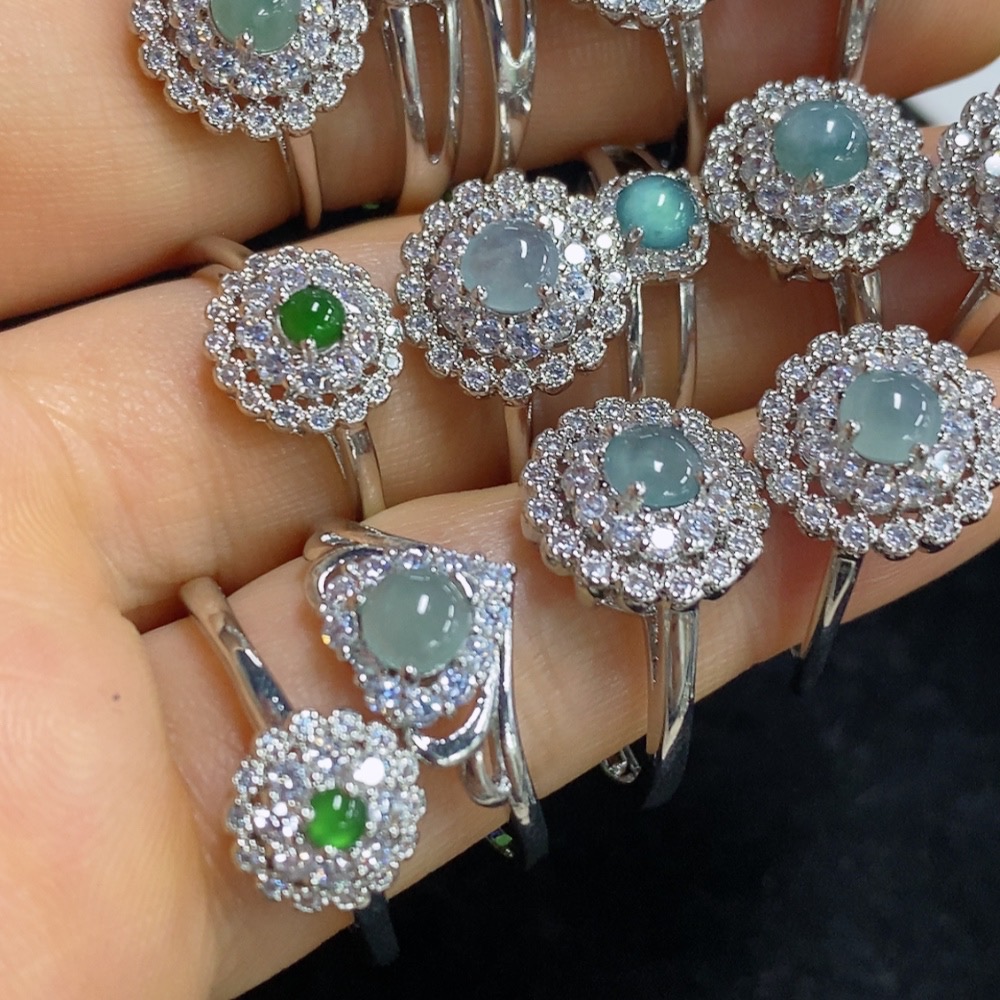 Jadeite Cabochon Inlay Ring Non-Gold Setting Adjustable Size