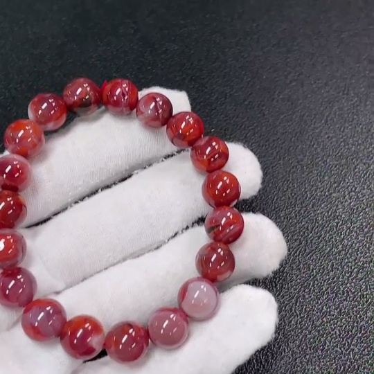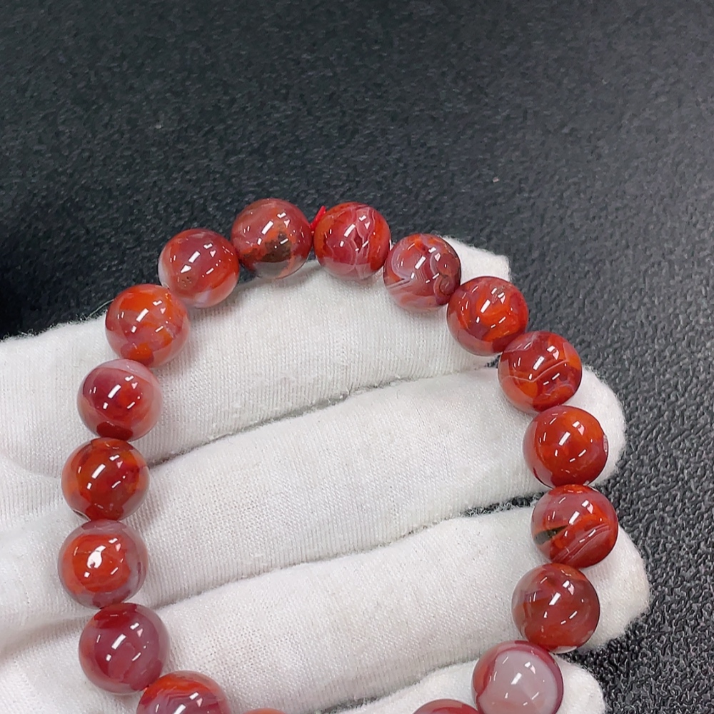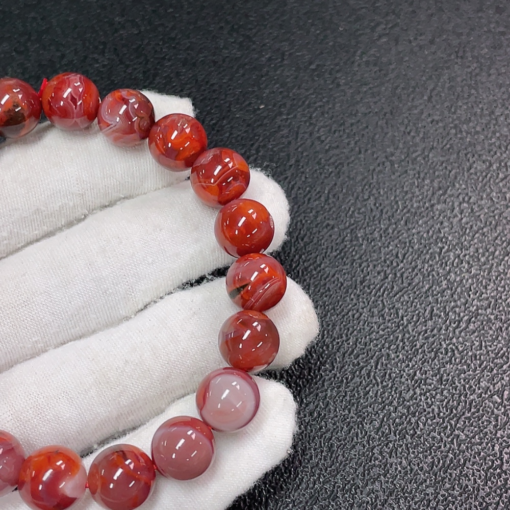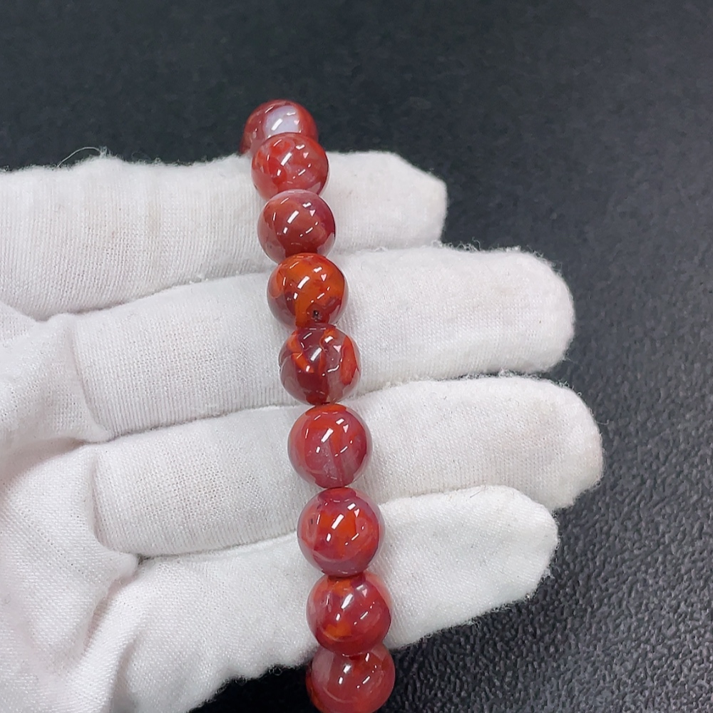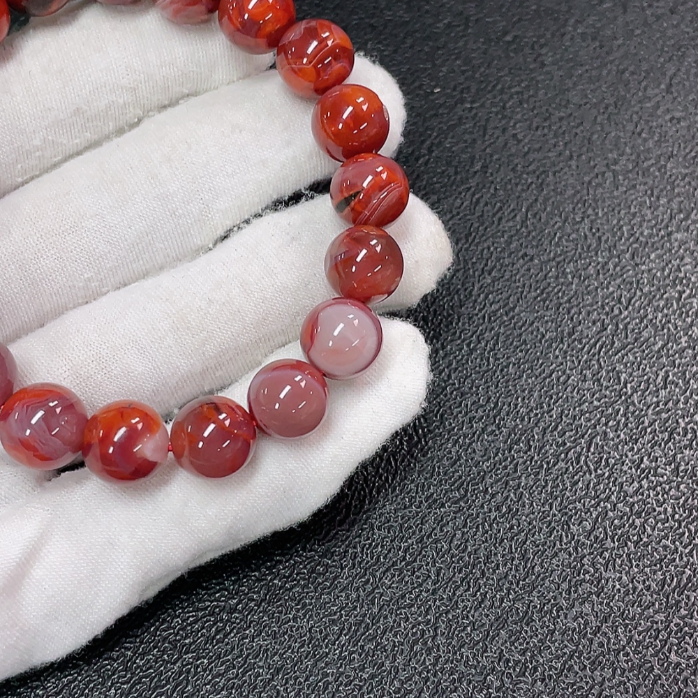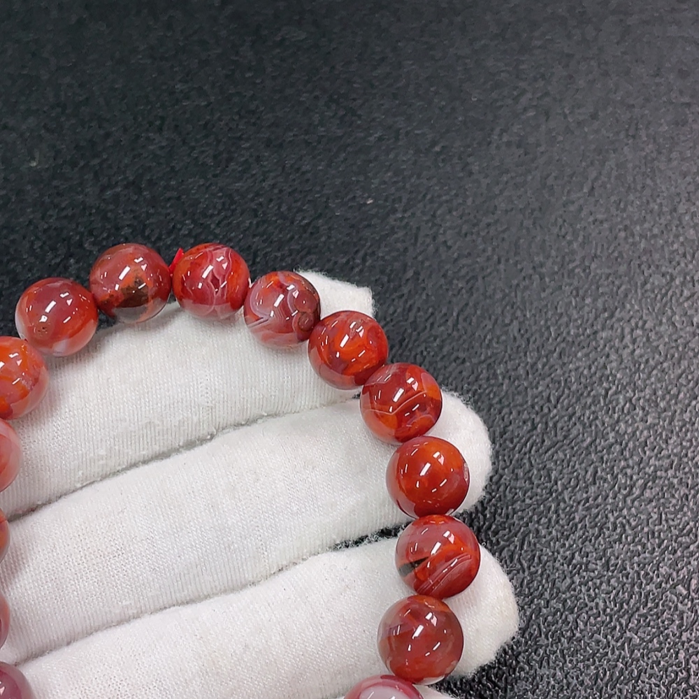 Red Agate Bracelet with Visible Organic Matter, Total Weight Approx. 31.06g, Size About 10.7mm