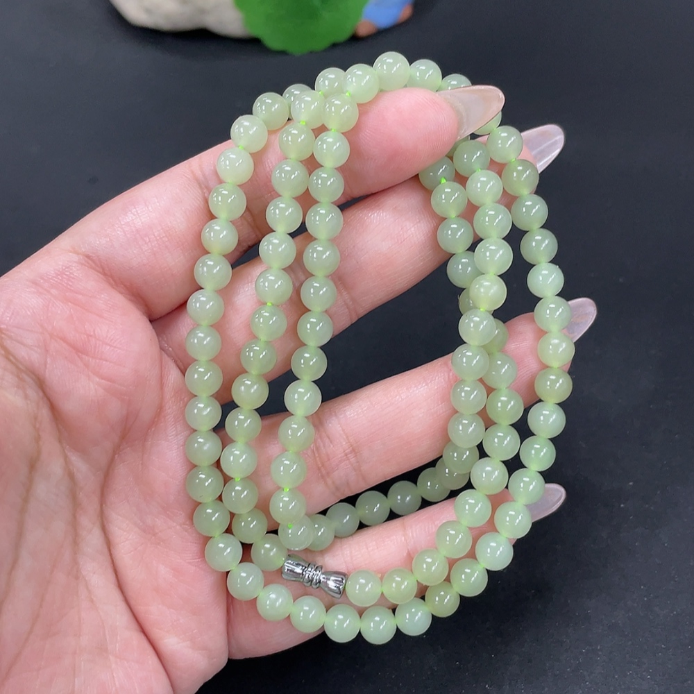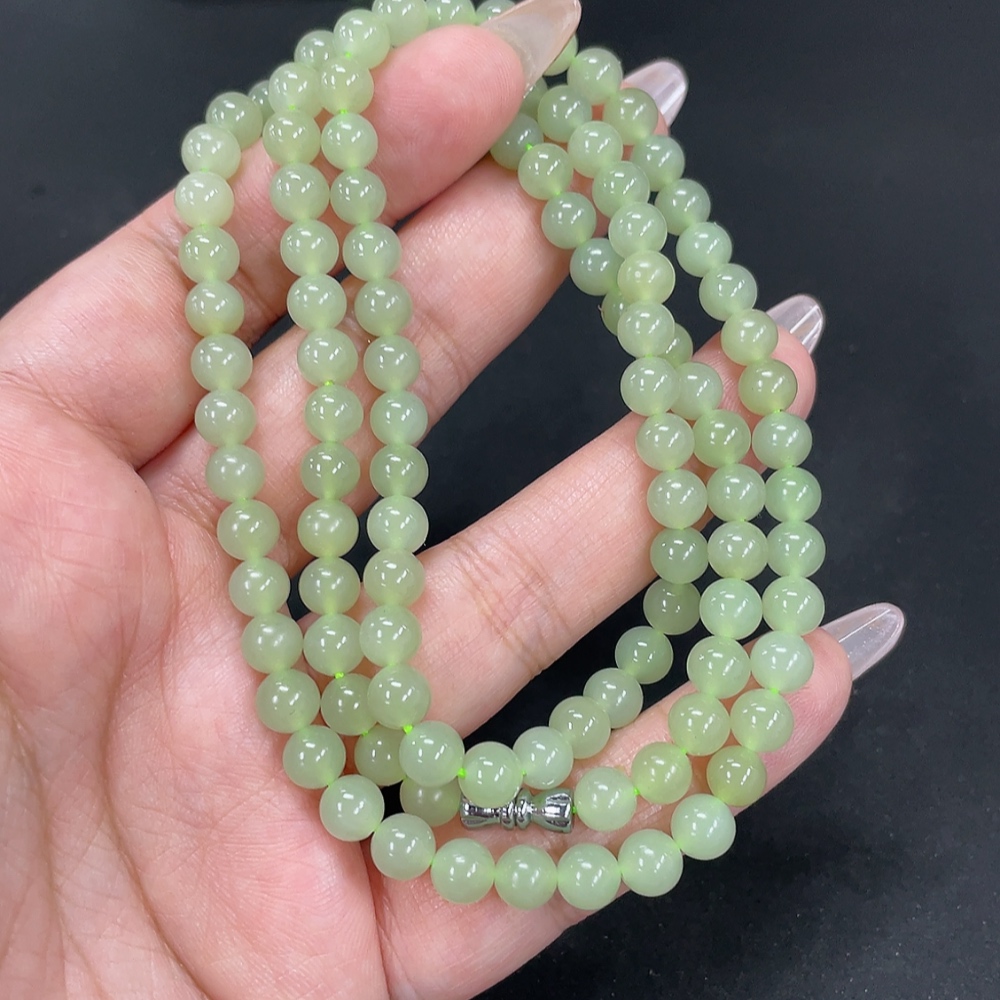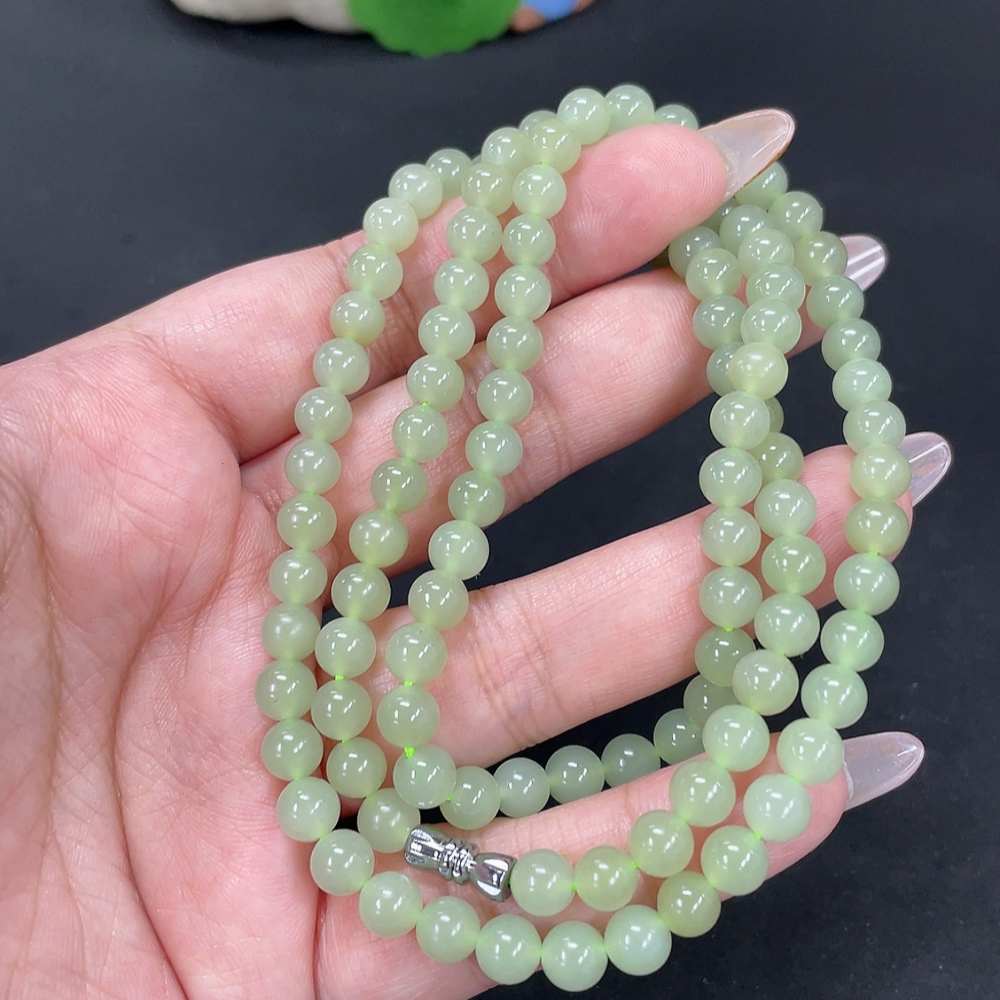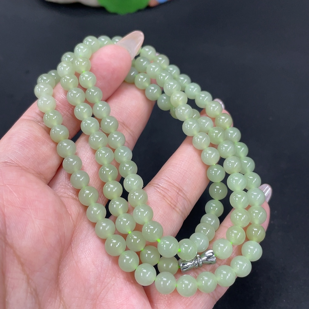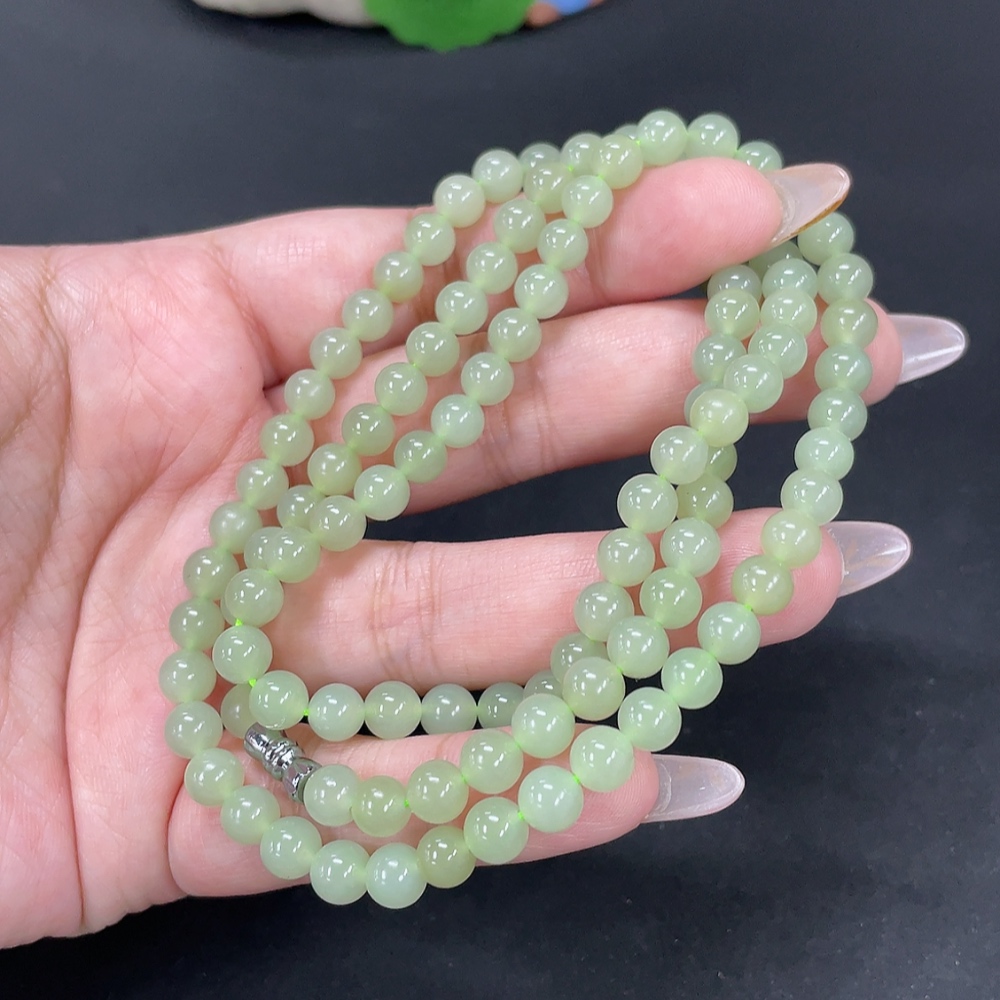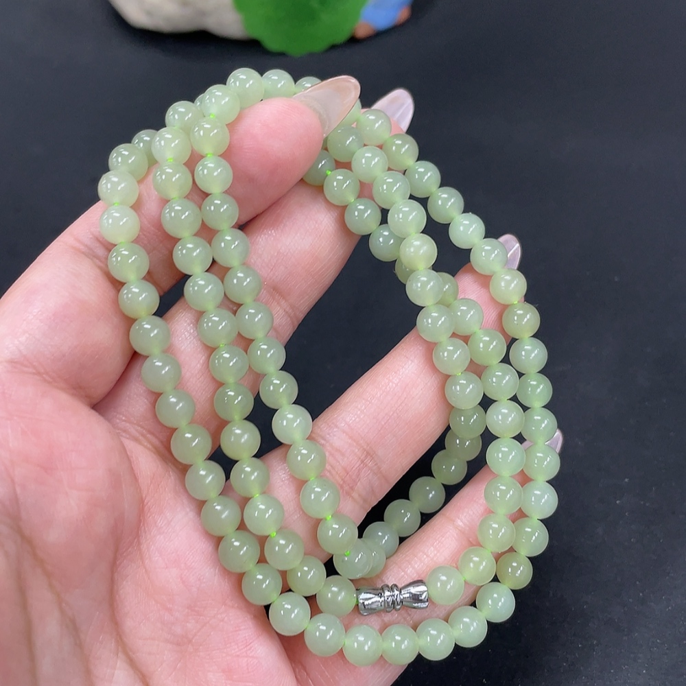Hetian Jade Bead Necklace Approx. 5.8mm Total Weight Approx. 38.8g
