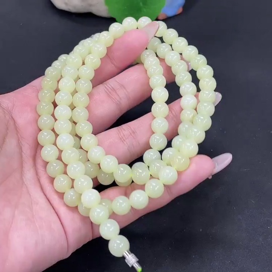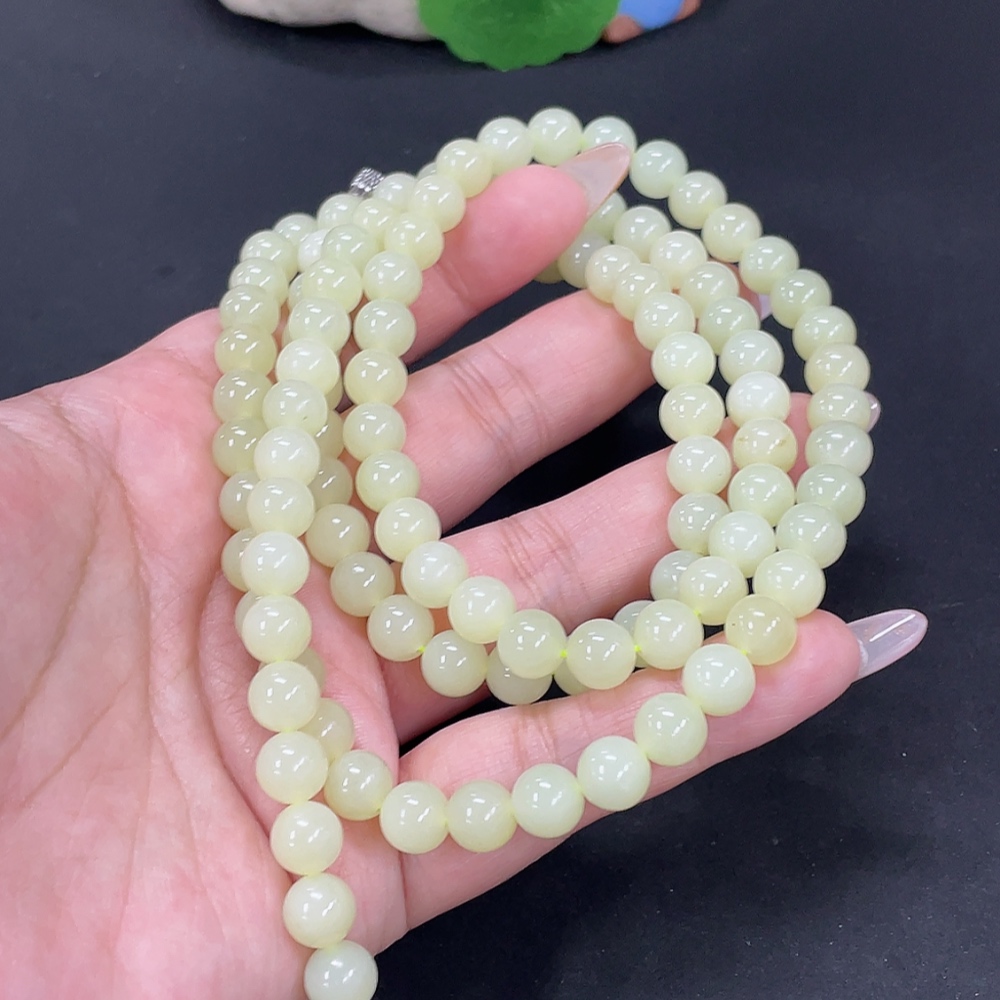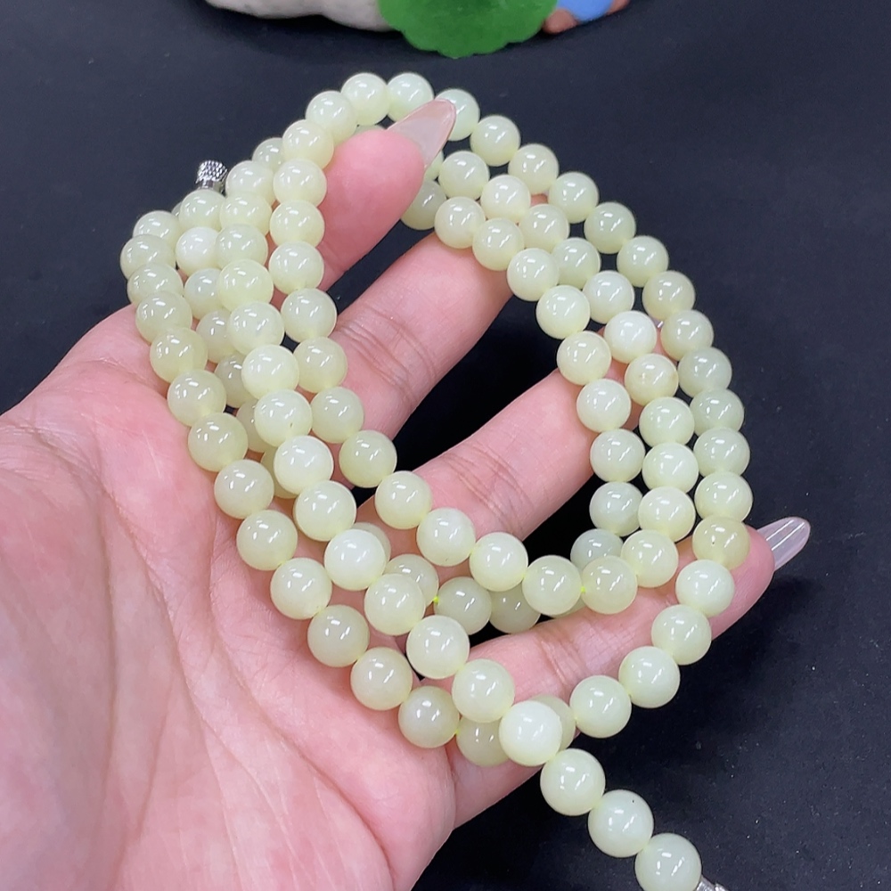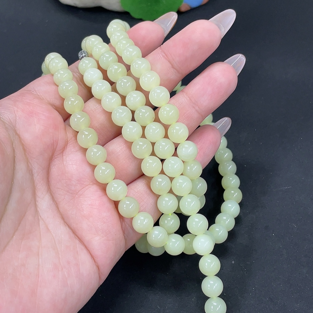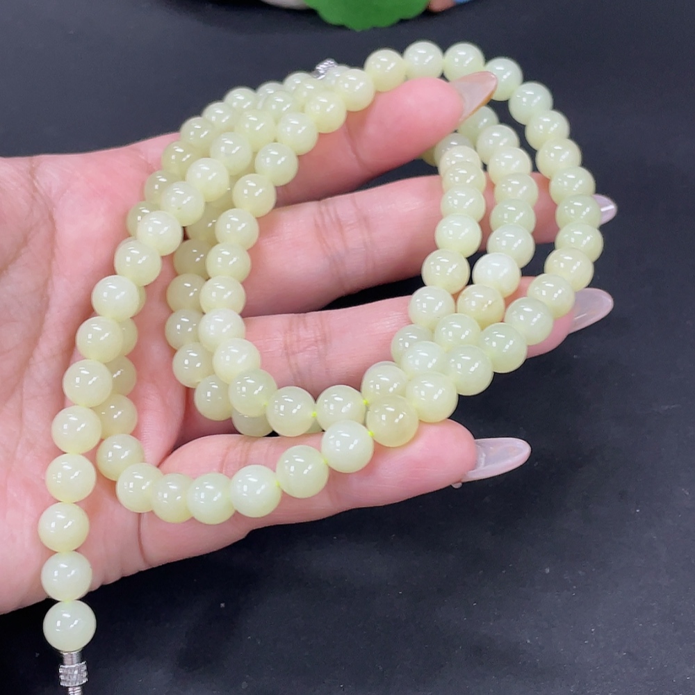 Hetian Jade Bead Necklace, approx. 7.6mm, total weight approx. 83g