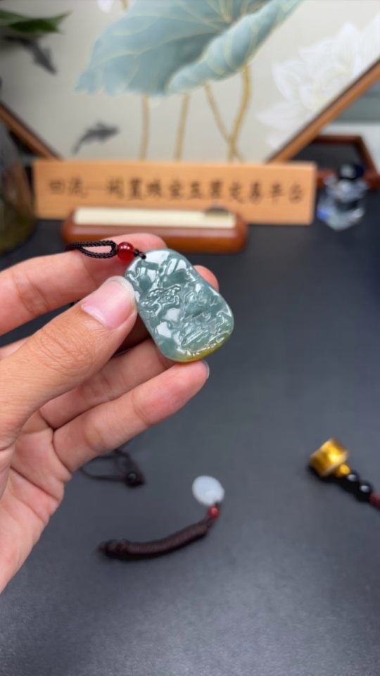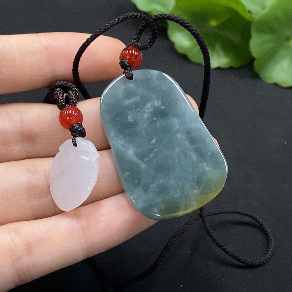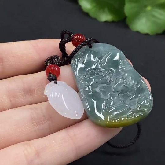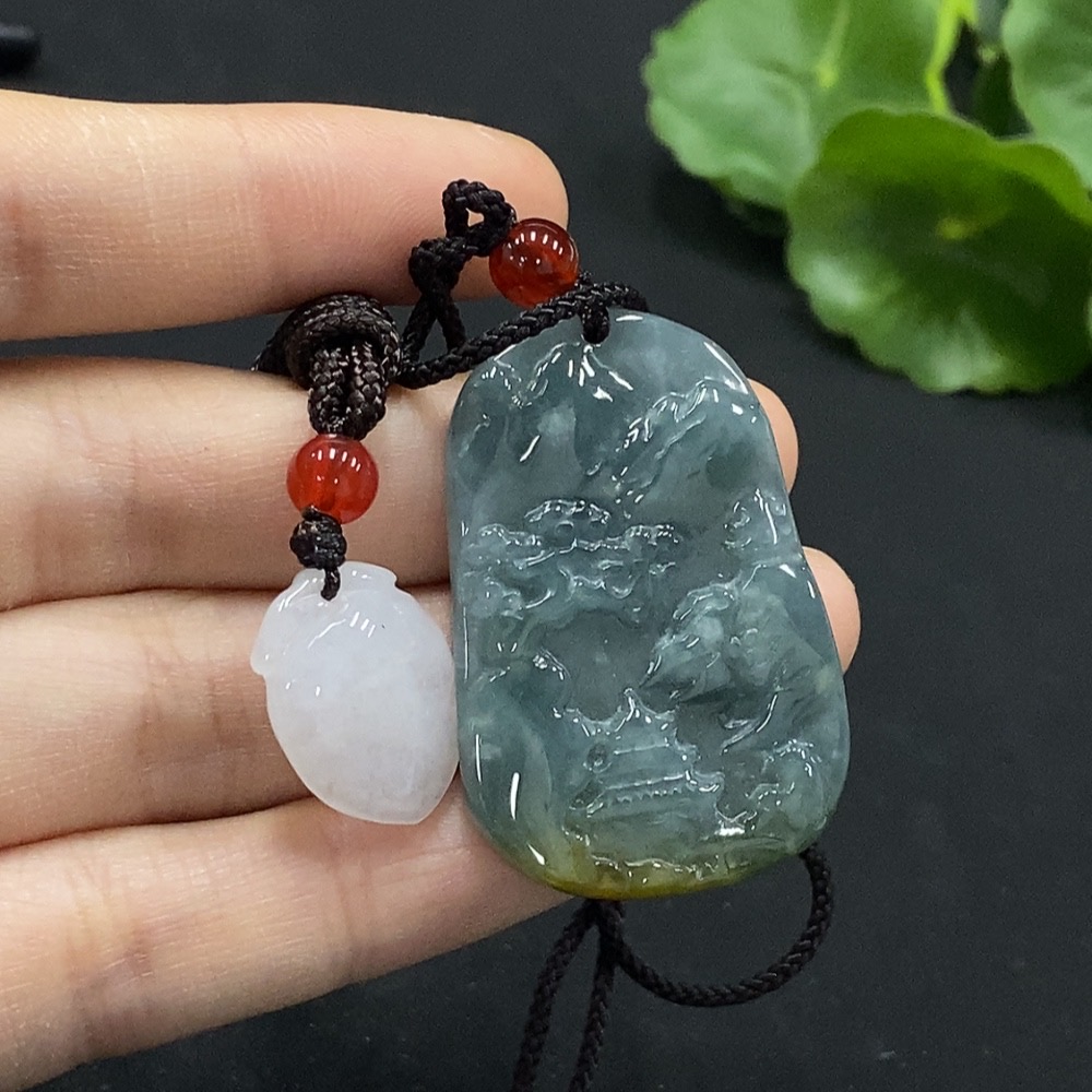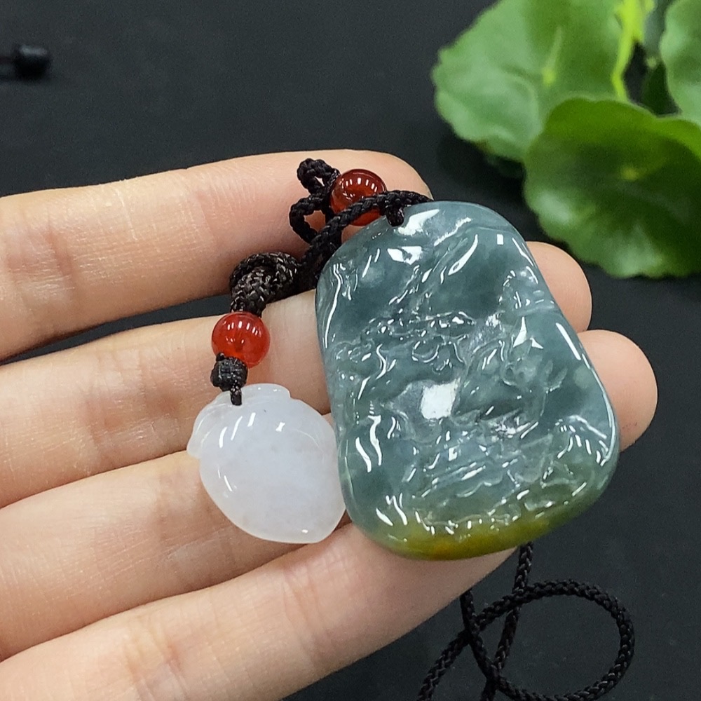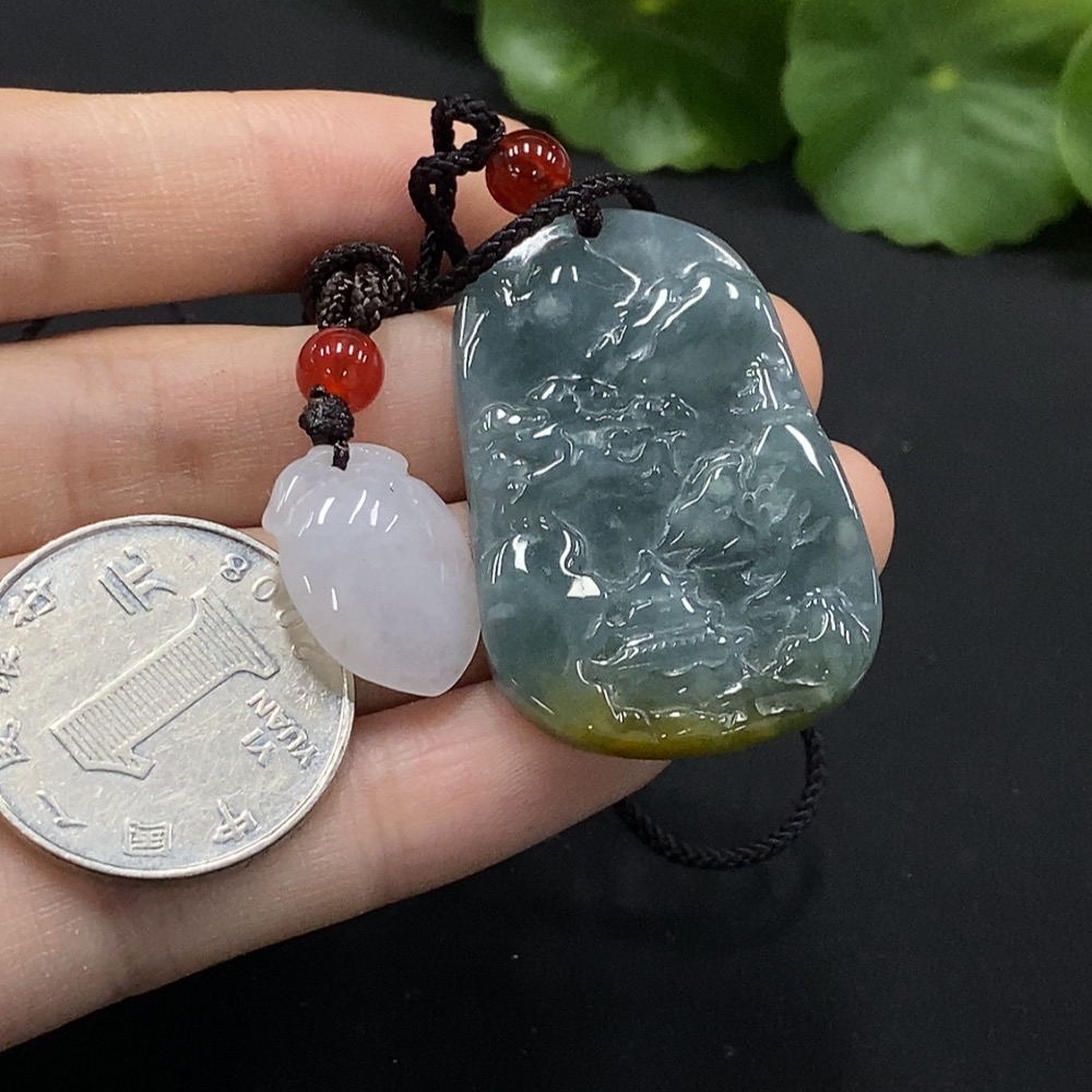Jadeite Longevity Peach/Landscape Pendant with Non-A Grade Beads