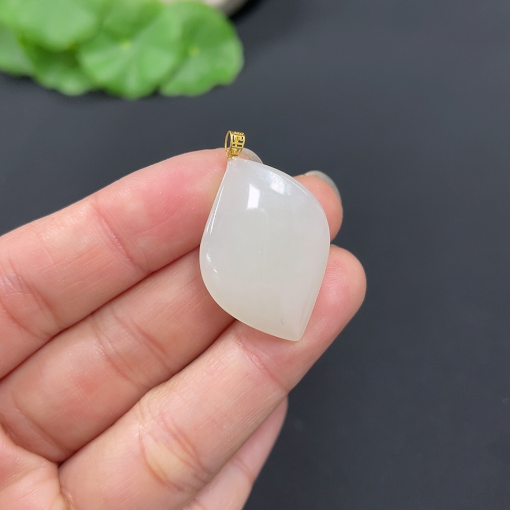 Hetian Jade Pendant with 18k Gold Clasp, Total Weight Approximately 4.1g