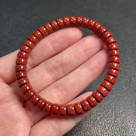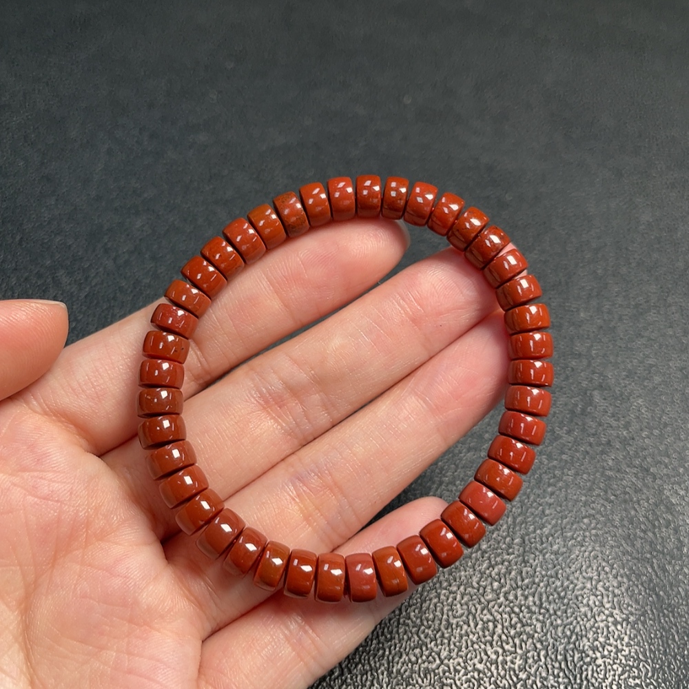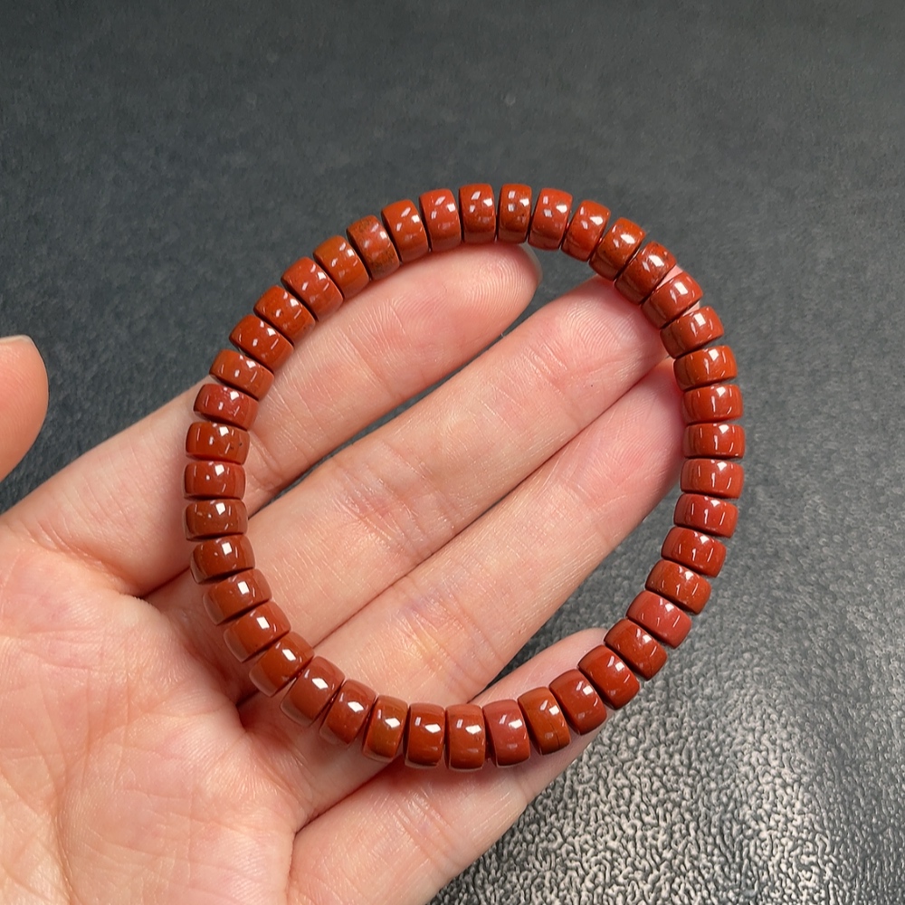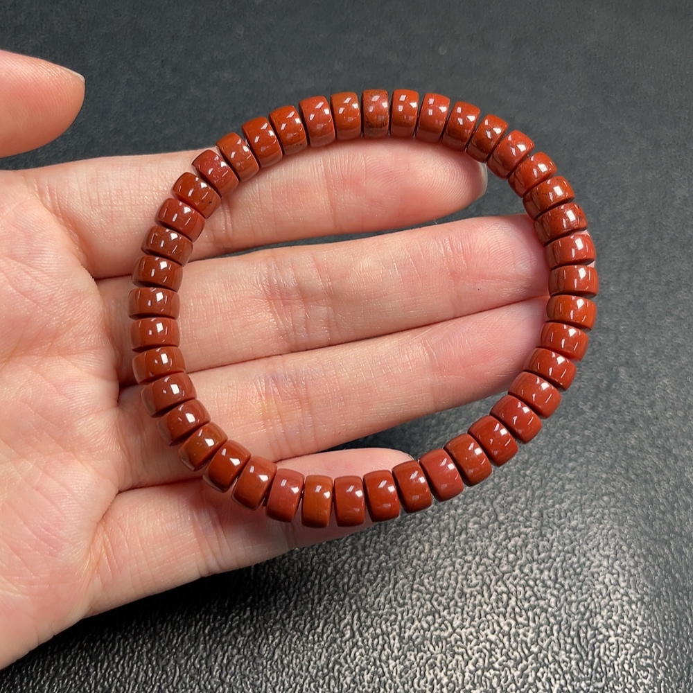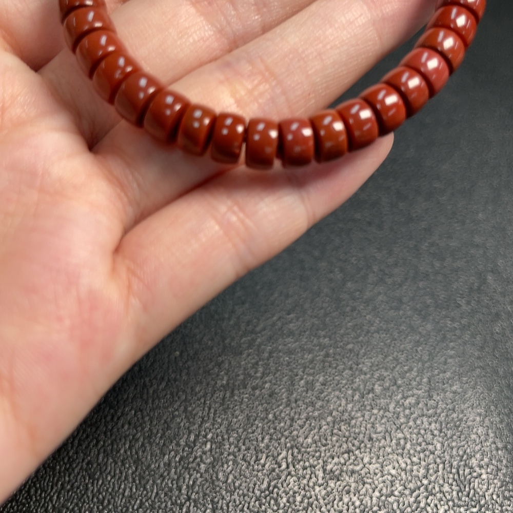 Red Agate Bracelet with Visible Organic Matter, Total Weight Approx. 14.98g, Size About 6.6mm