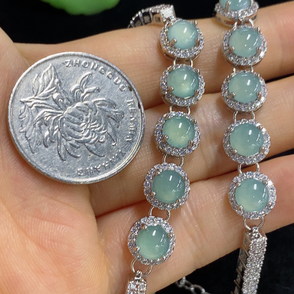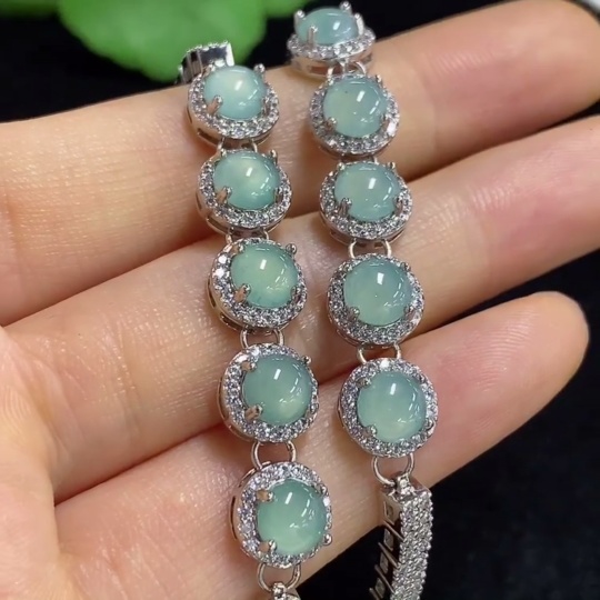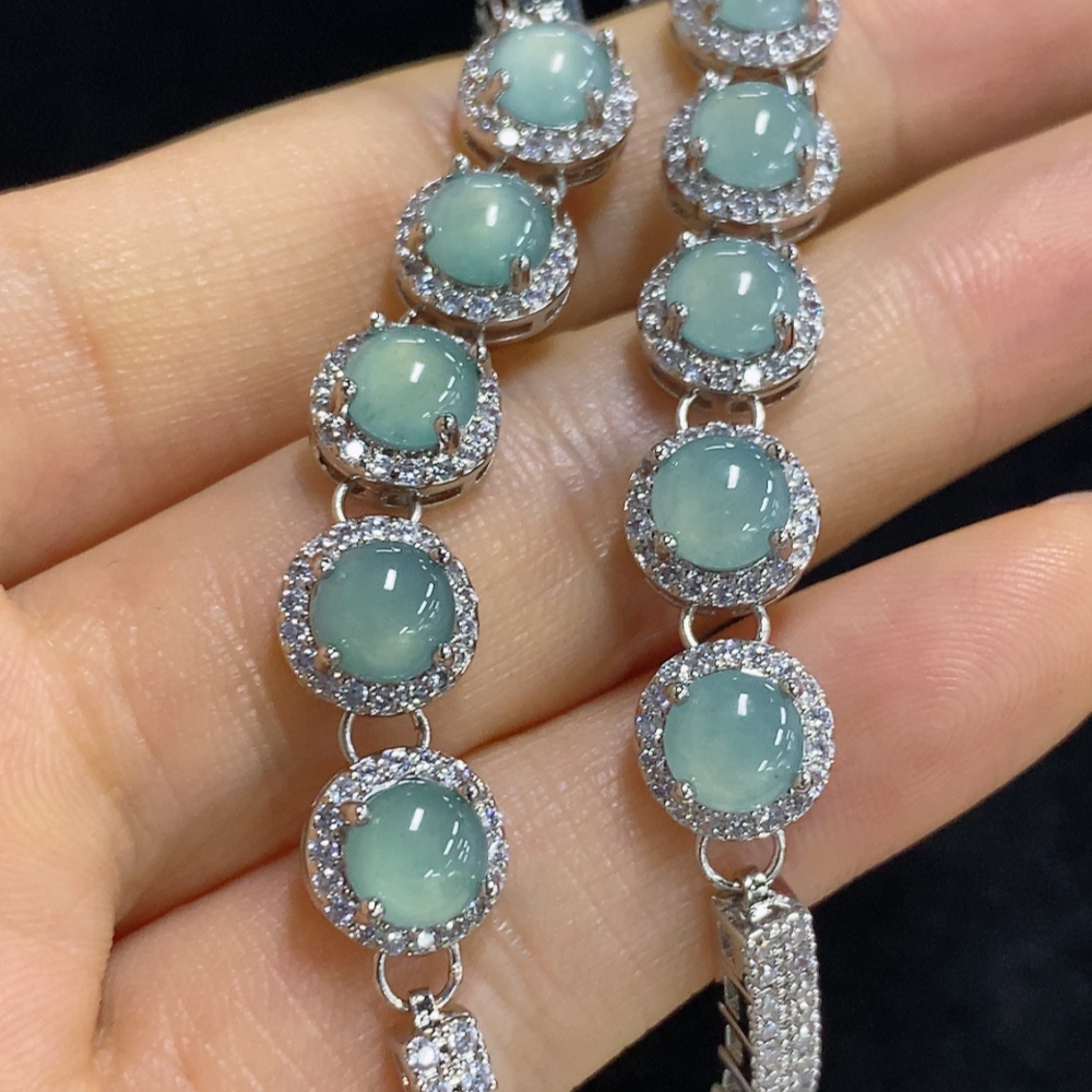 Trezaar - Jadeite Cabochon Inlay Bracelet Sell as a Lot Non-Gold Inlay