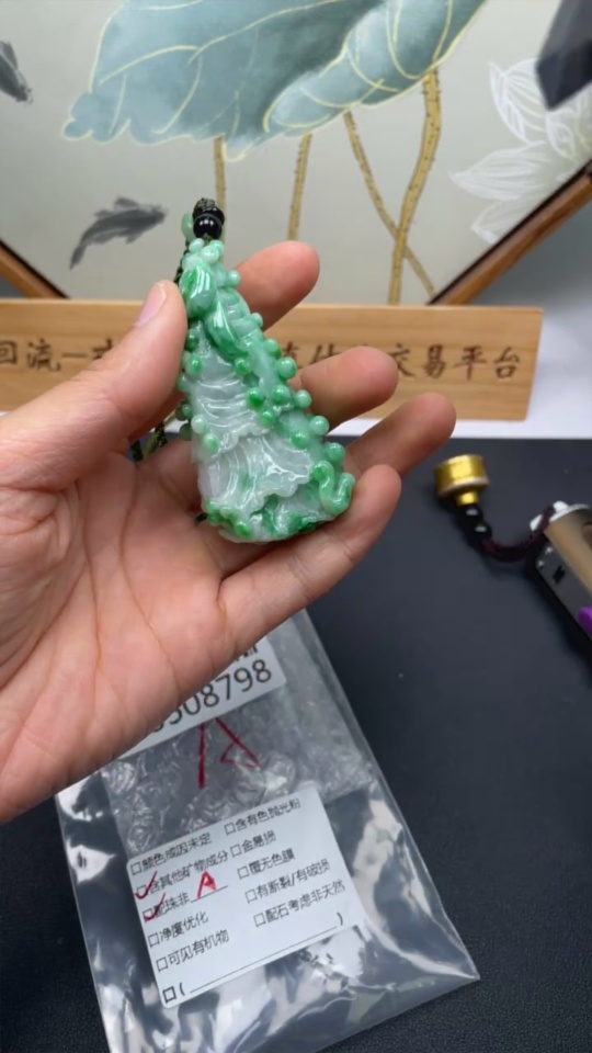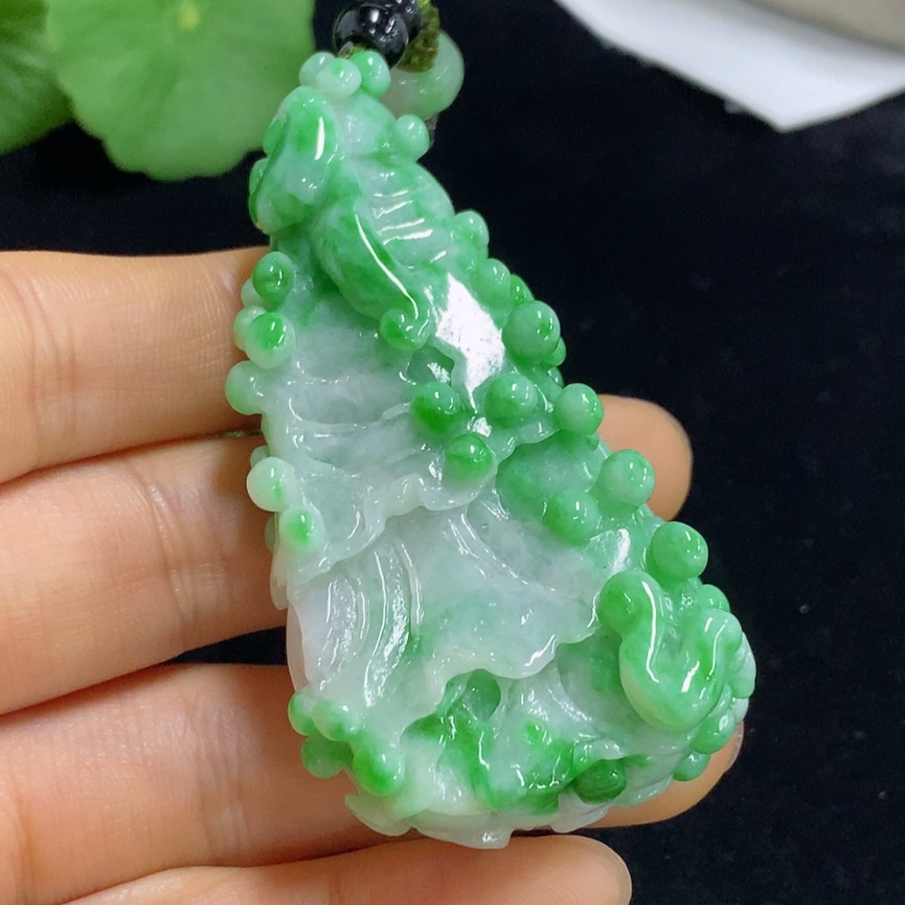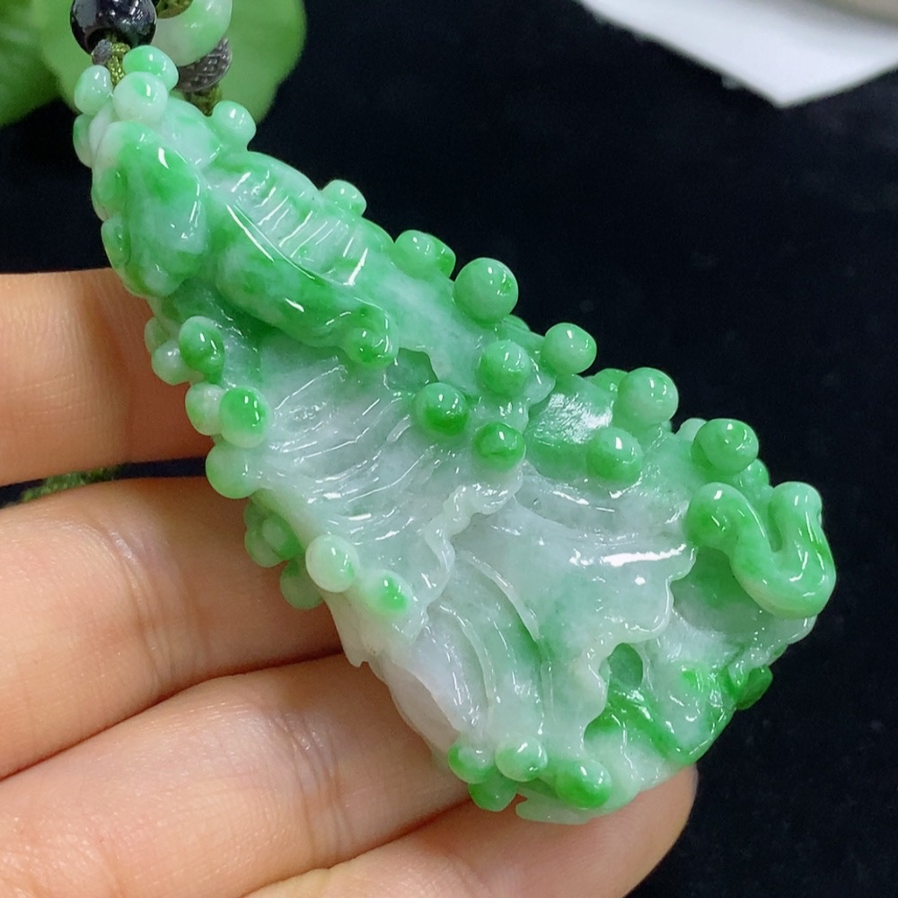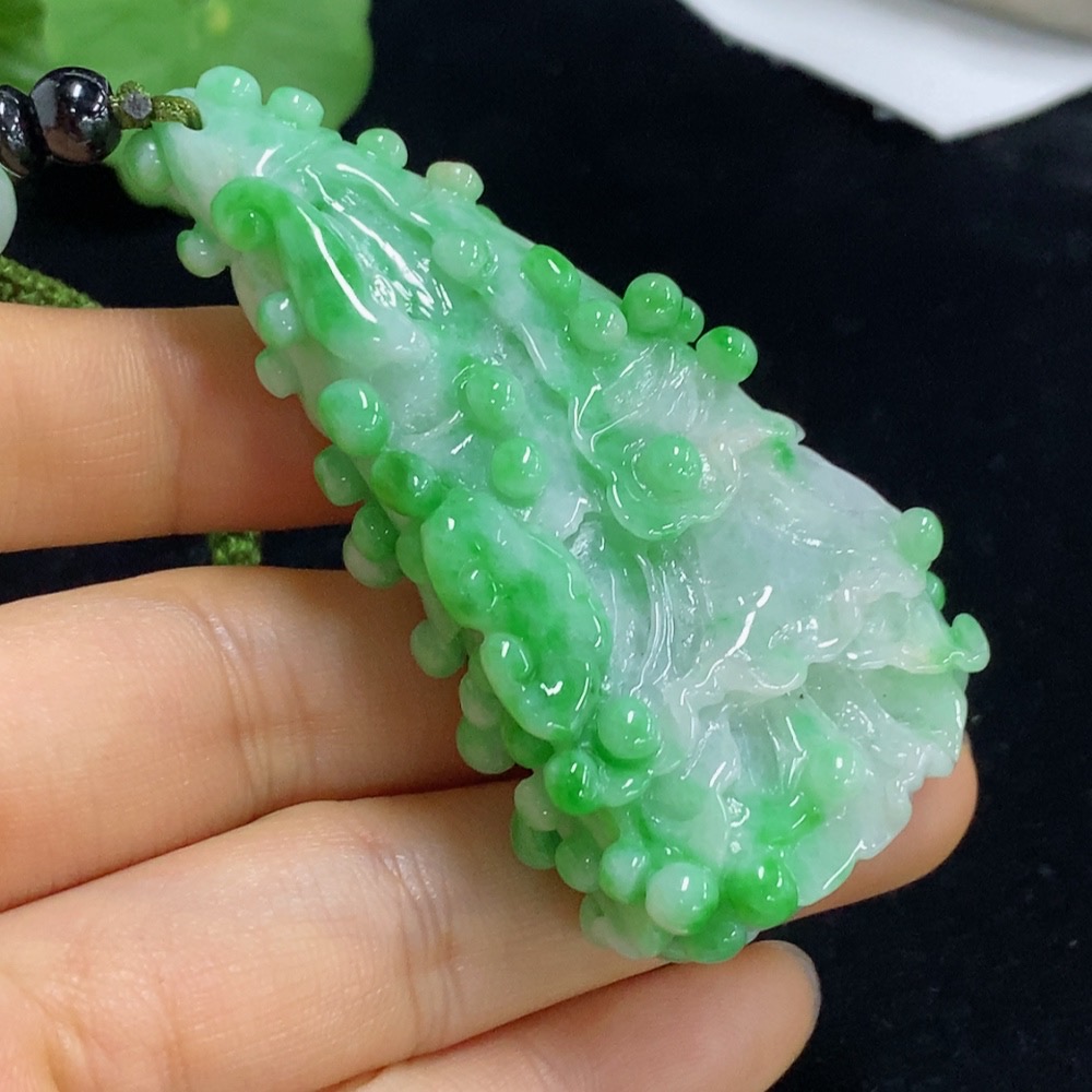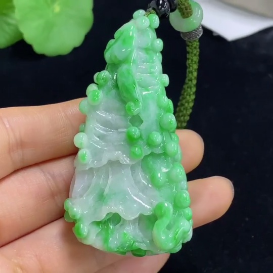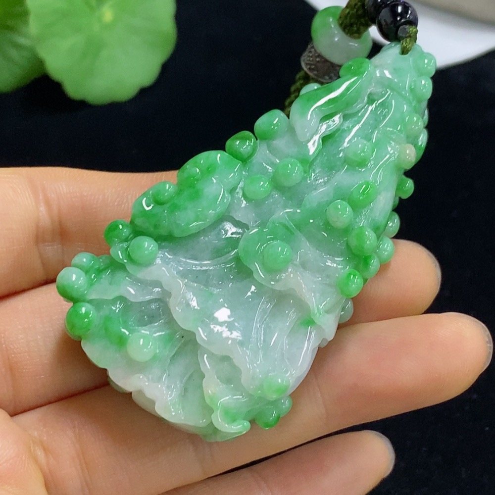 Jadeite Cabbage Pendant Total Weight Approx. 61.49g (including cord weight) Containing Other Mineral Components Beads Not Grade A