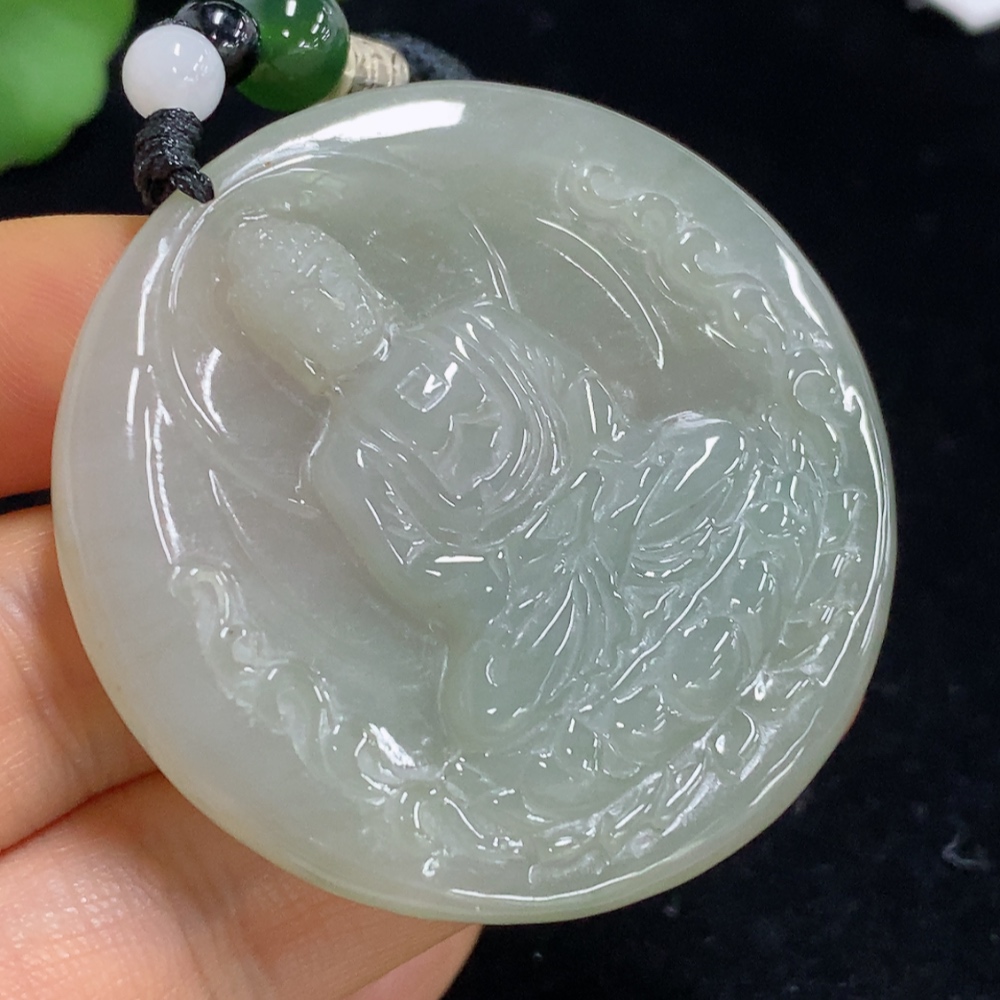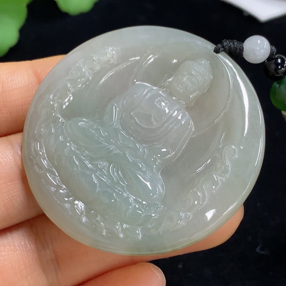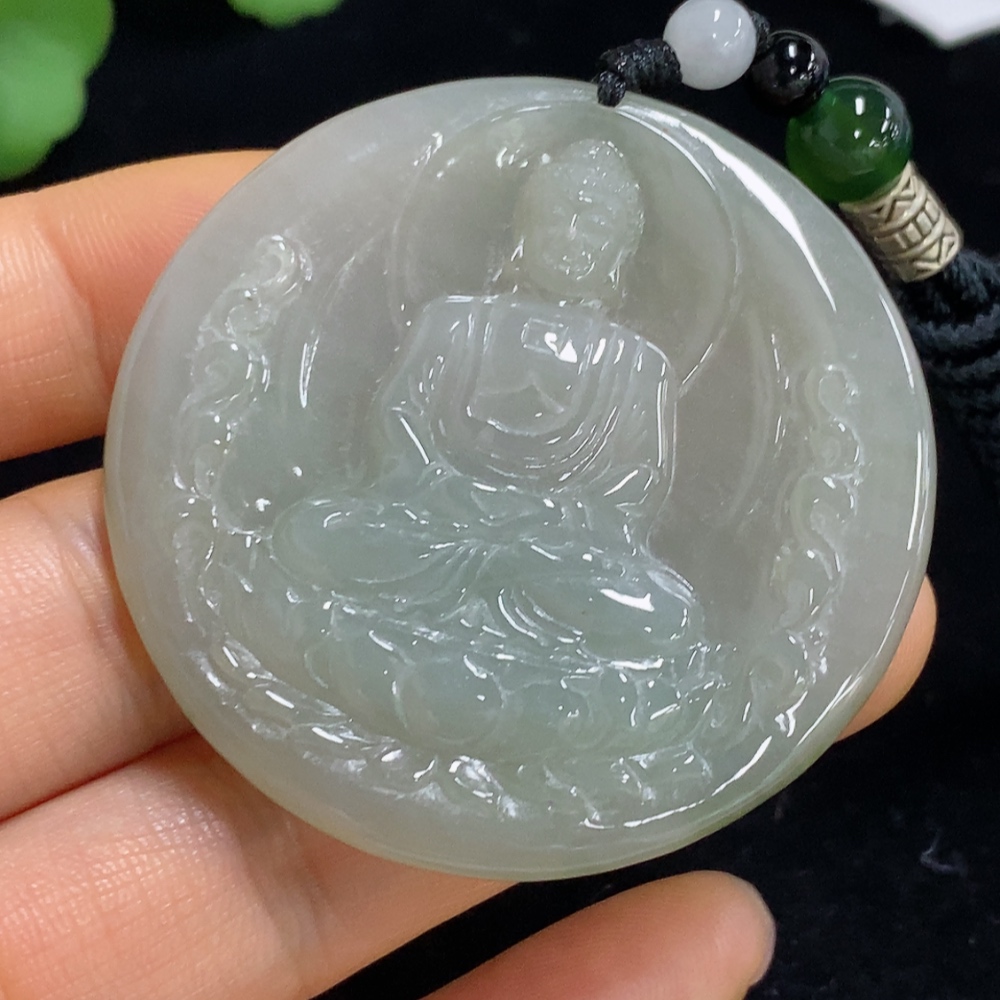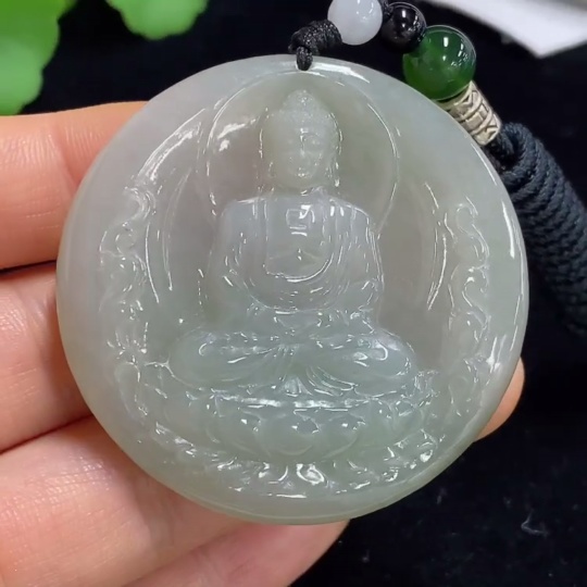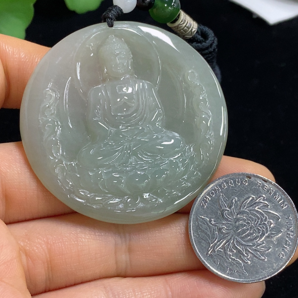 Jadeite Pendant with Non-A Grade Stones, Buddha Amulet, Total Weight Approximately 28.9g