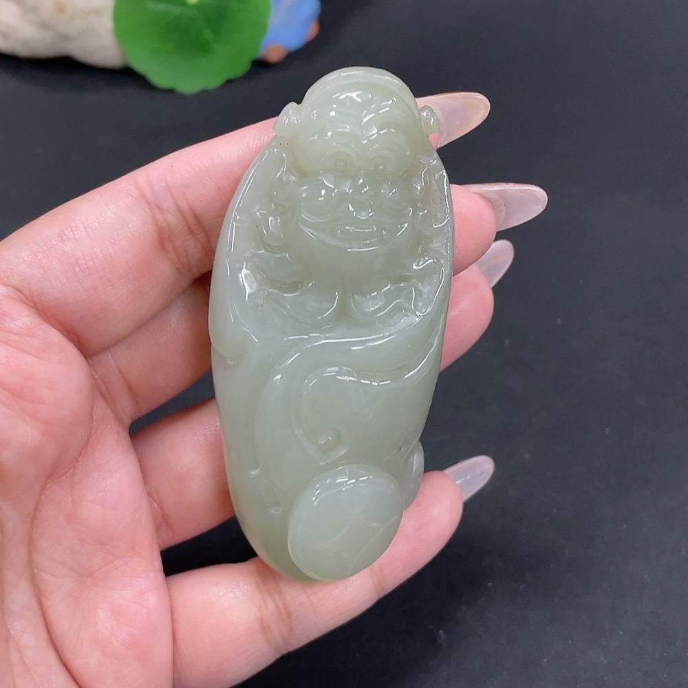 Hetian Jade Pendant, God of Wealth, Total Weight Approx. 98.9g