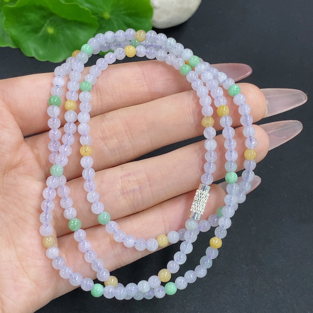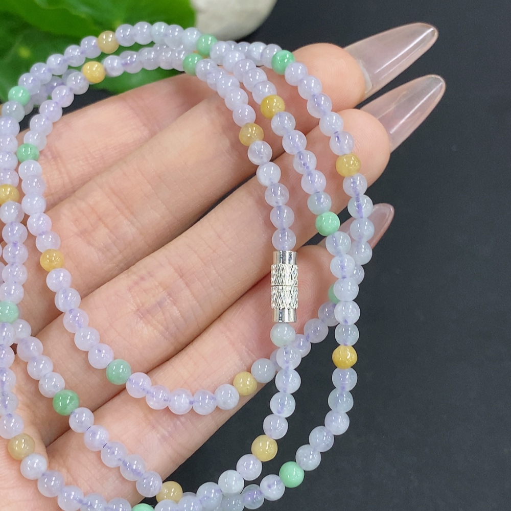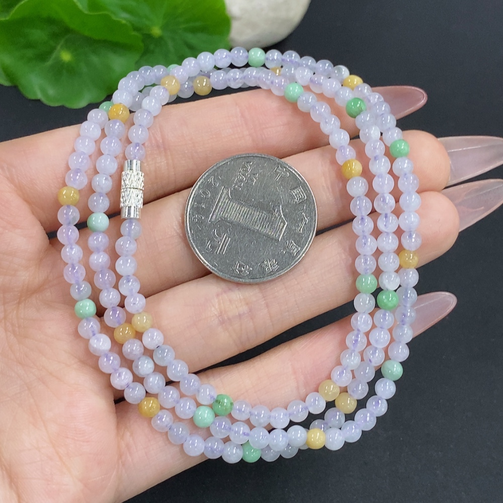Jadeite Bead Necklace Approx. 3.7mm Non-Gold Total Weight Approx. 17.4g