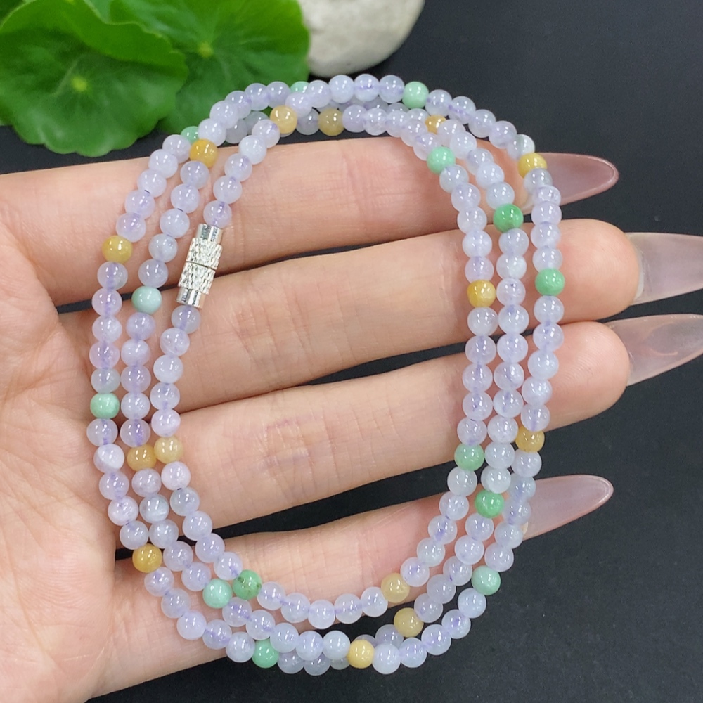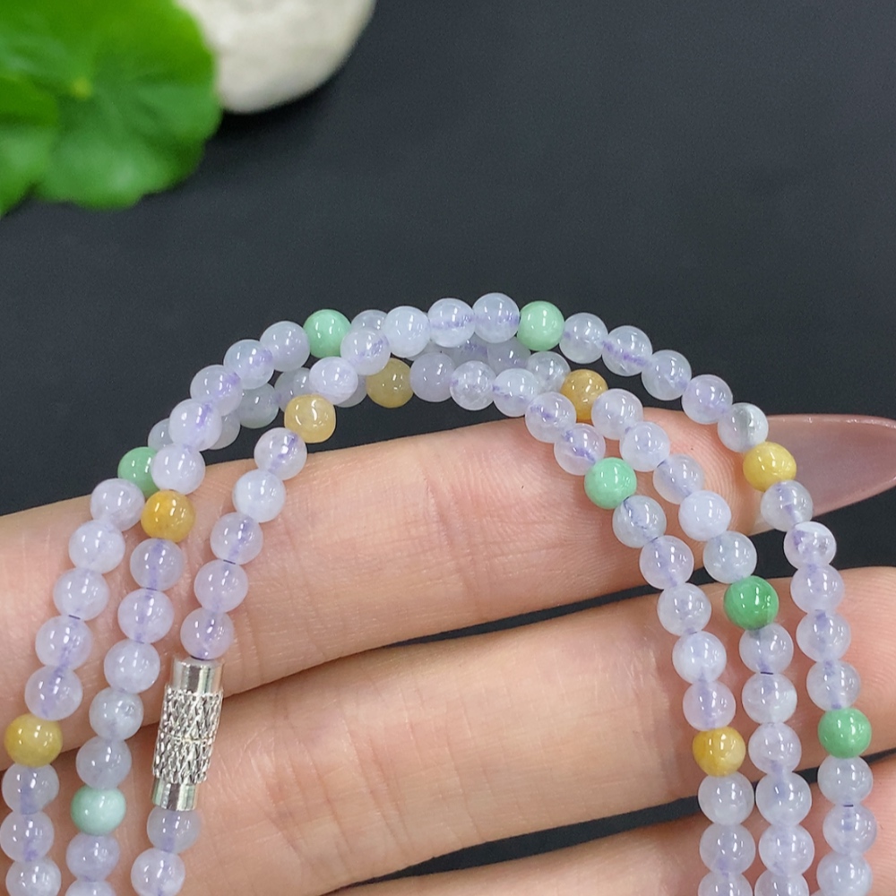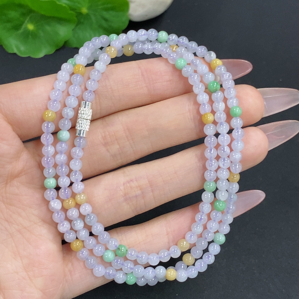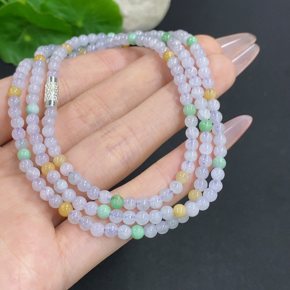 Jadeite Bead Necklace Approx. 3.7mm Non-Gold Total Weight Approx. 17.4g