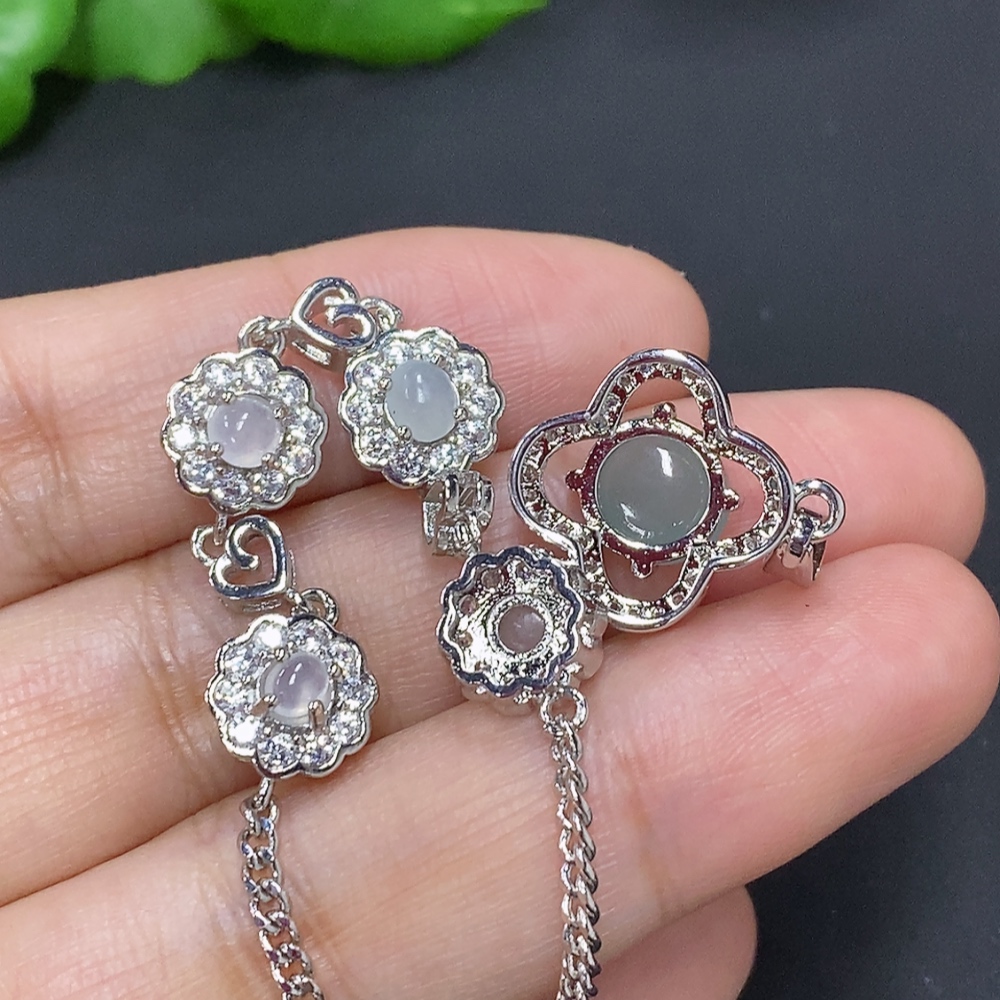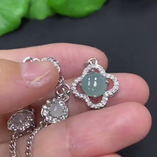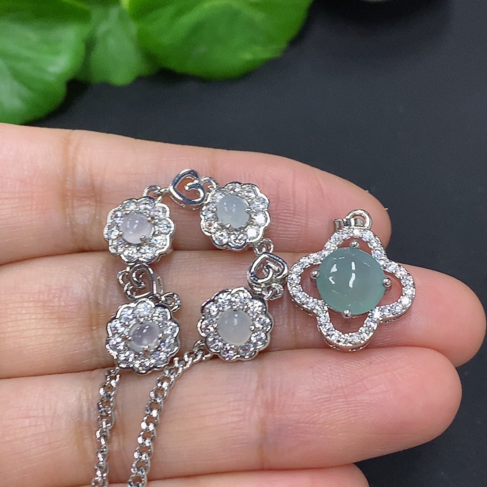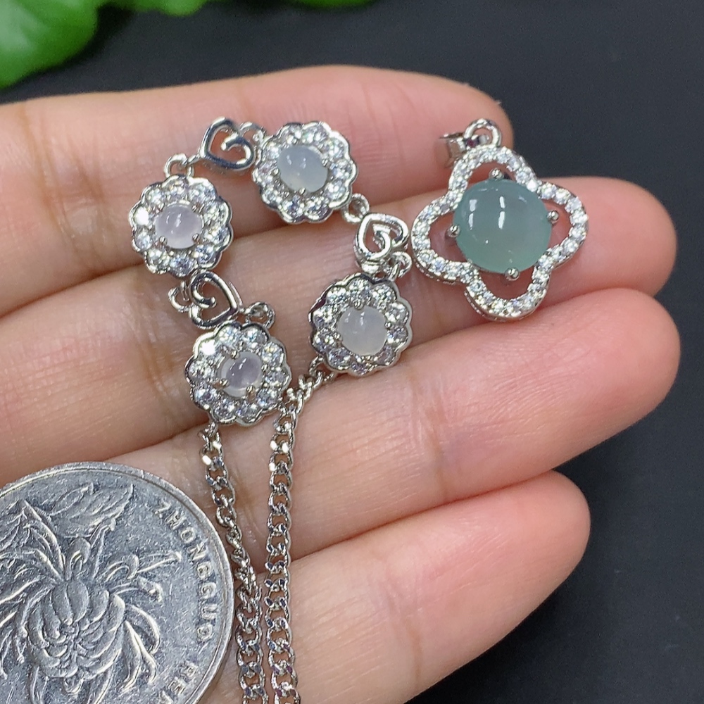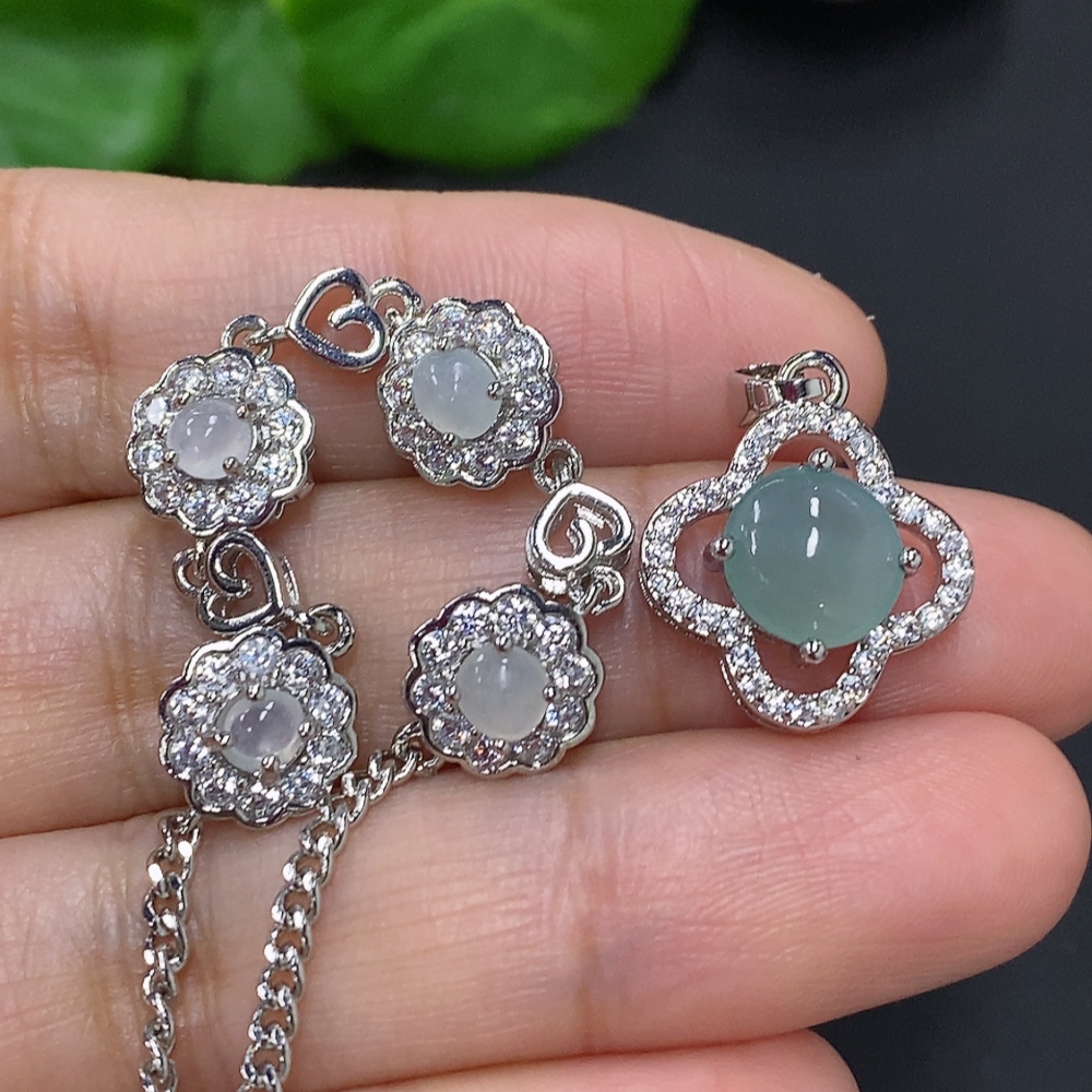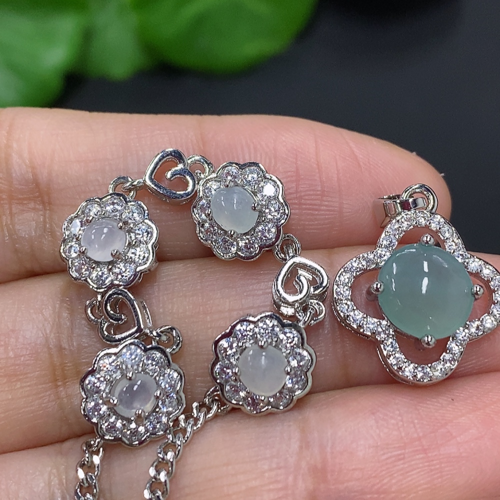 Jadeite Cabochon Inlay Pendant with Bracelet Sell as a Lot Non-Gold Inlay