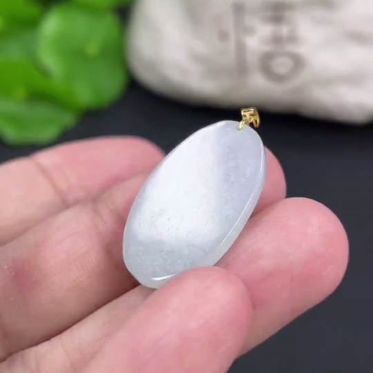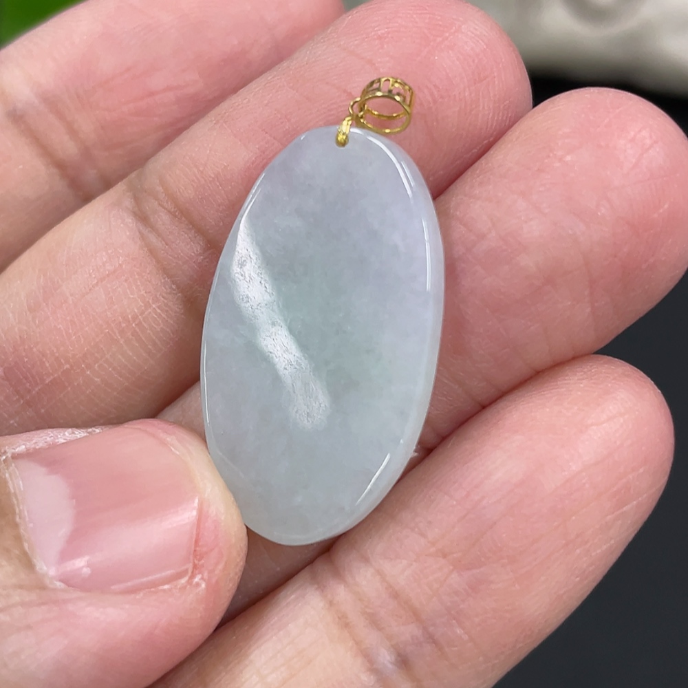 Jadeite Plain Pendant with 18k Gold Clasp, Total Weight Approx. 2.38g