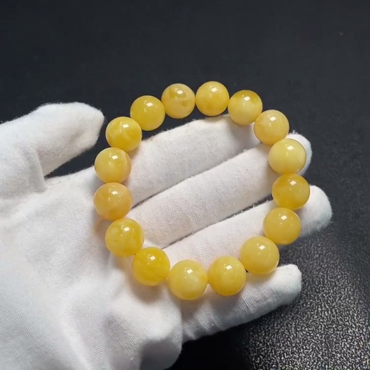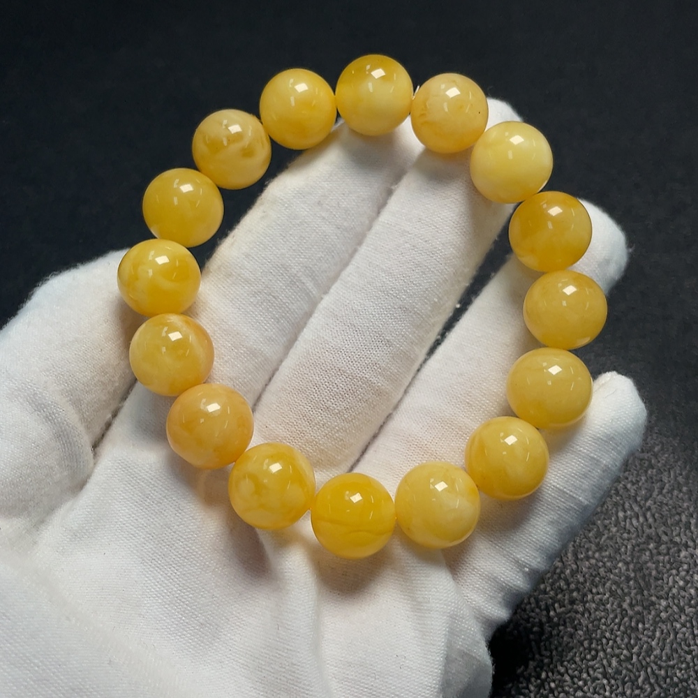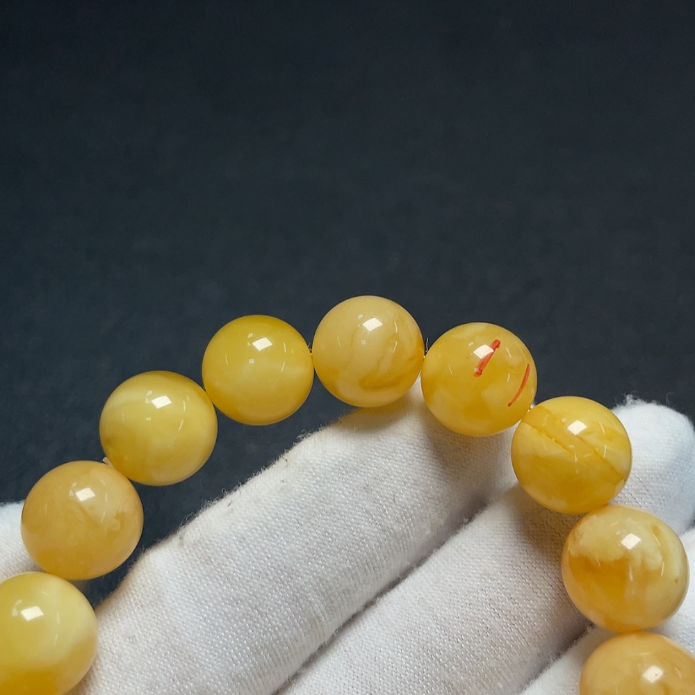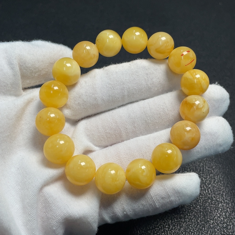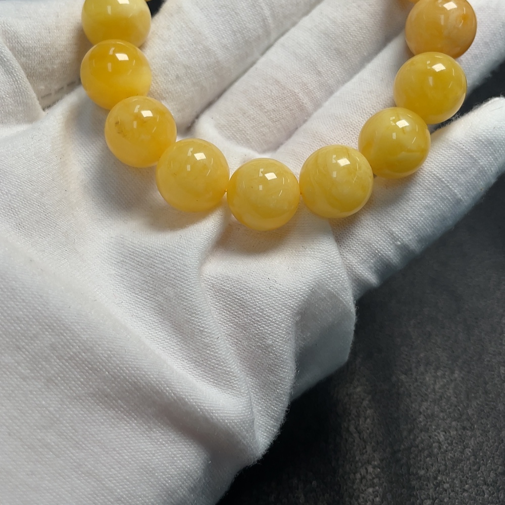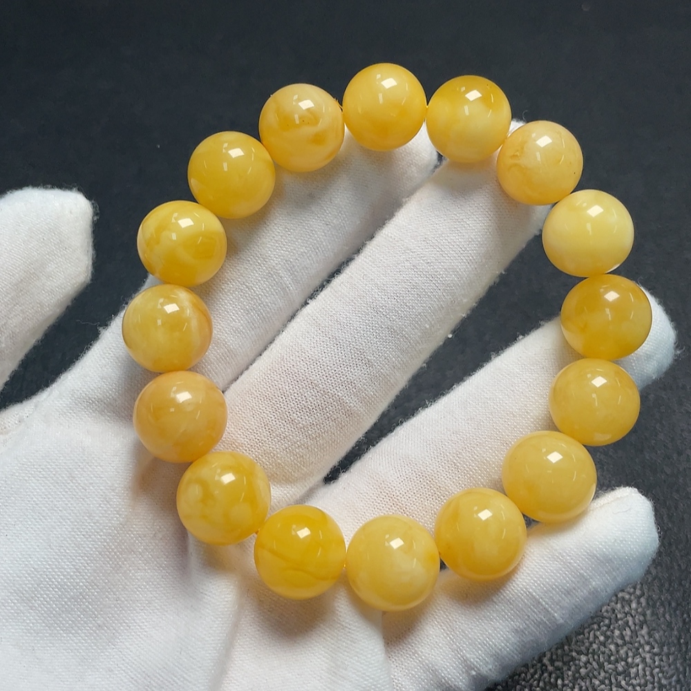 Amber beeswax bracelet with partial visible repairs, total weight approximately 18.25g, size about 12.6mm