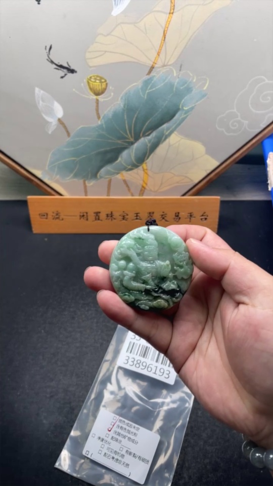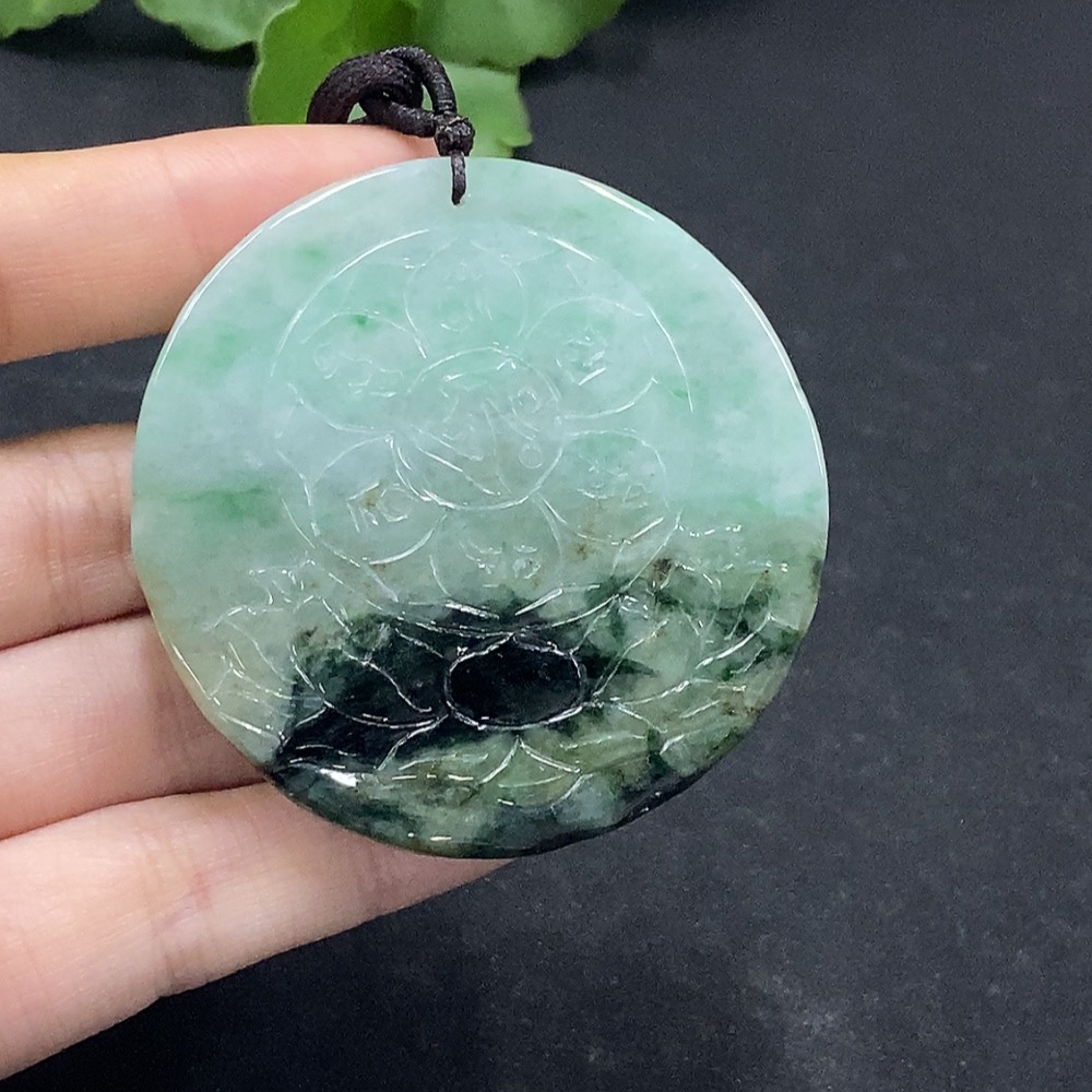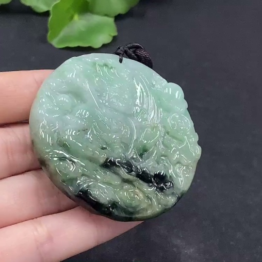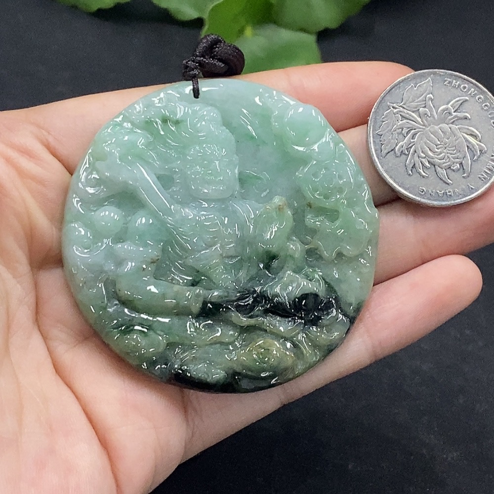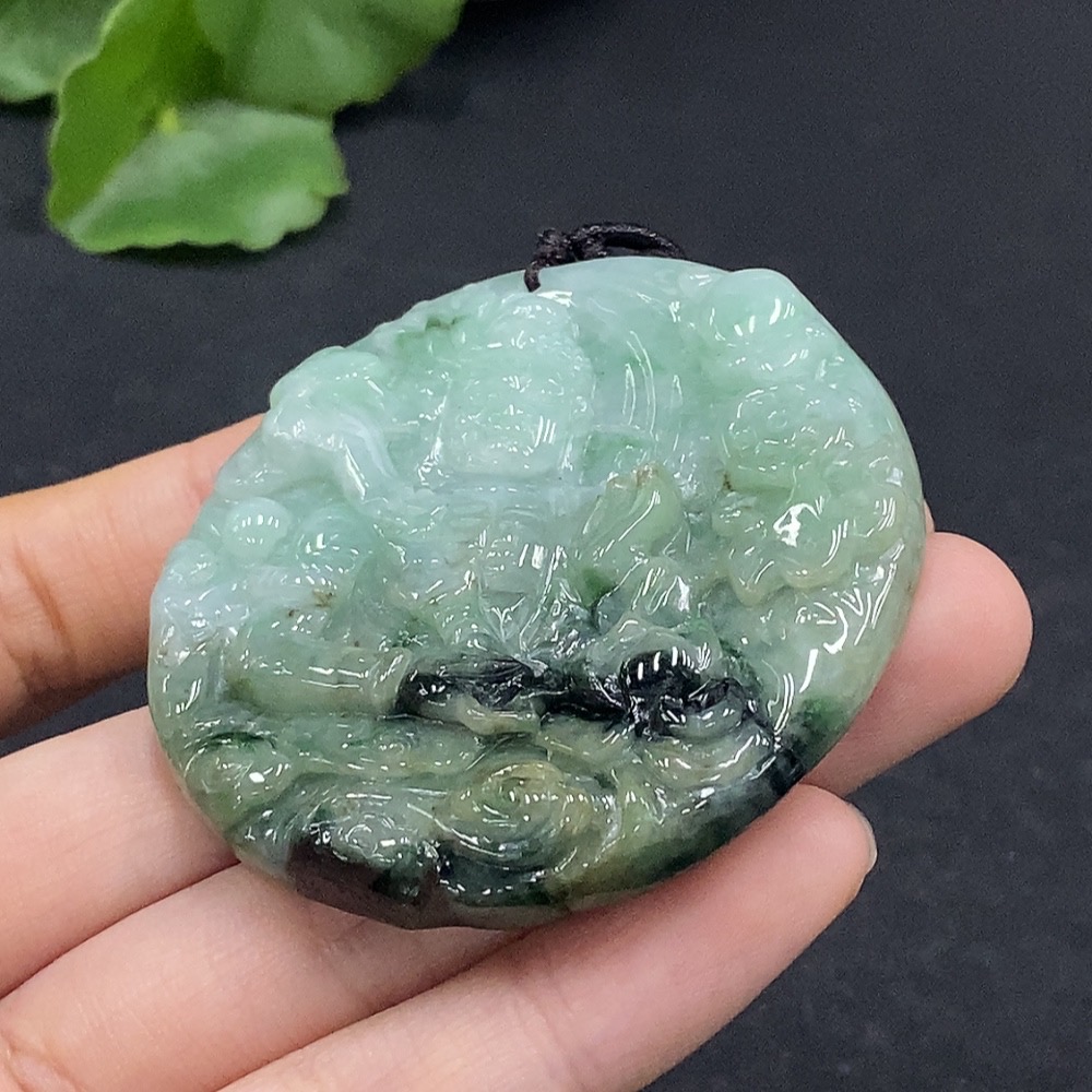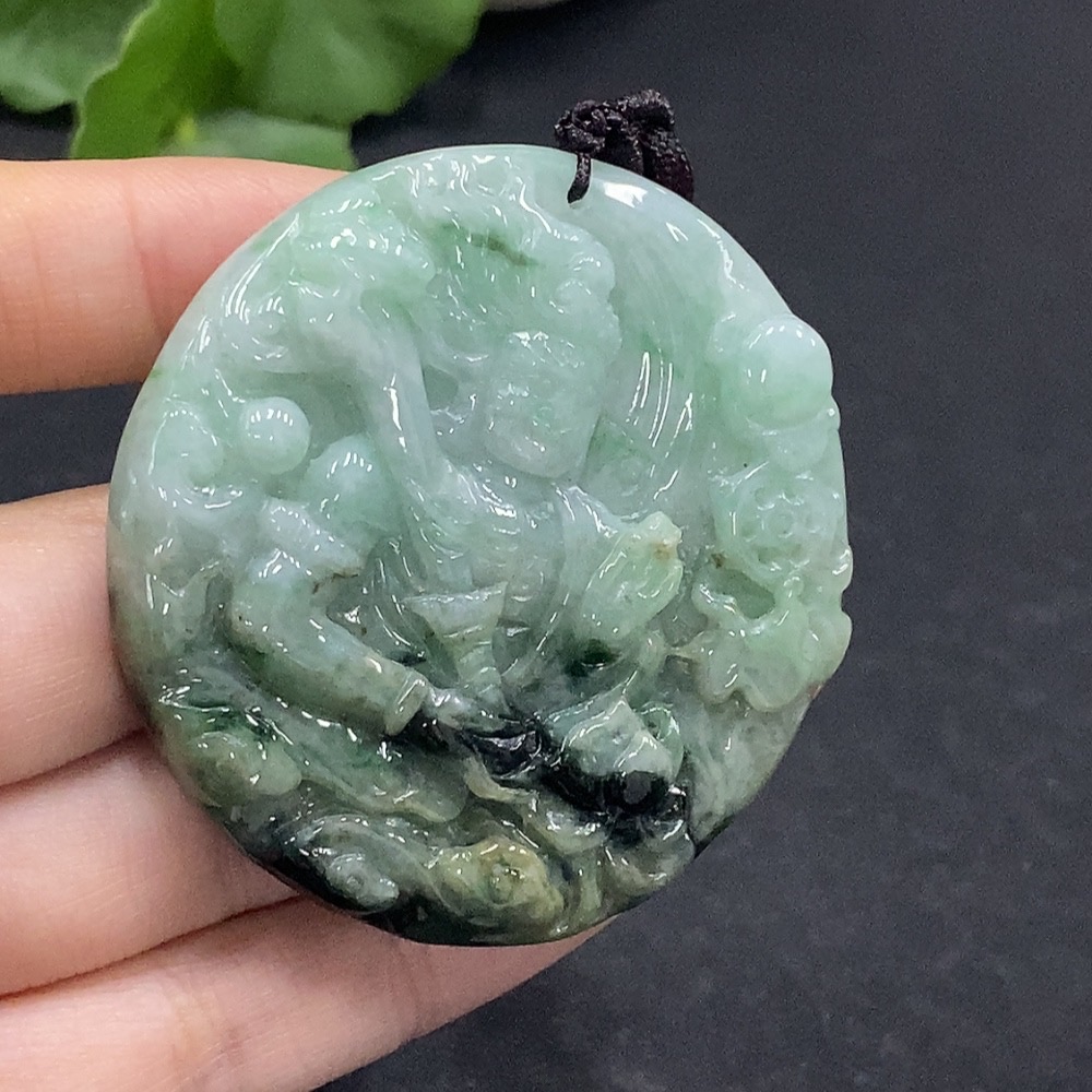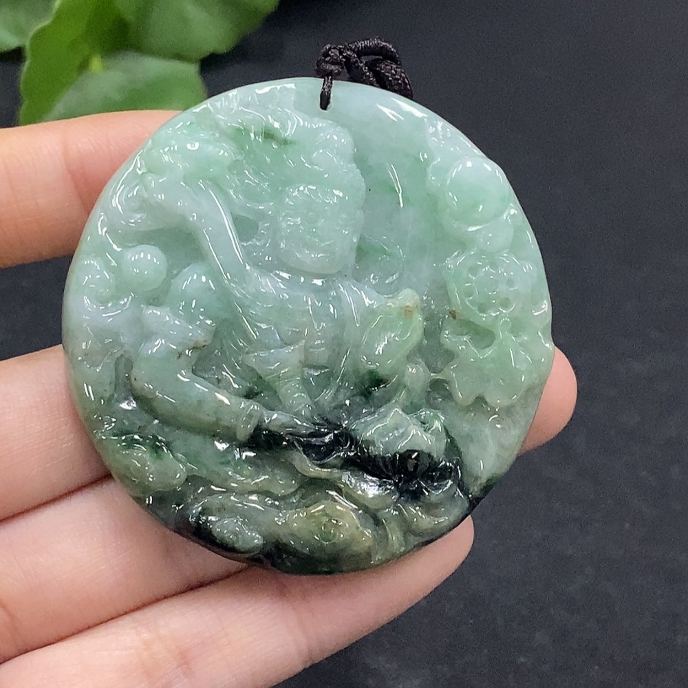 Jadeite Fudo Myoo Pendant with Other Mineral Components, Total Weight Approximately 49.24g