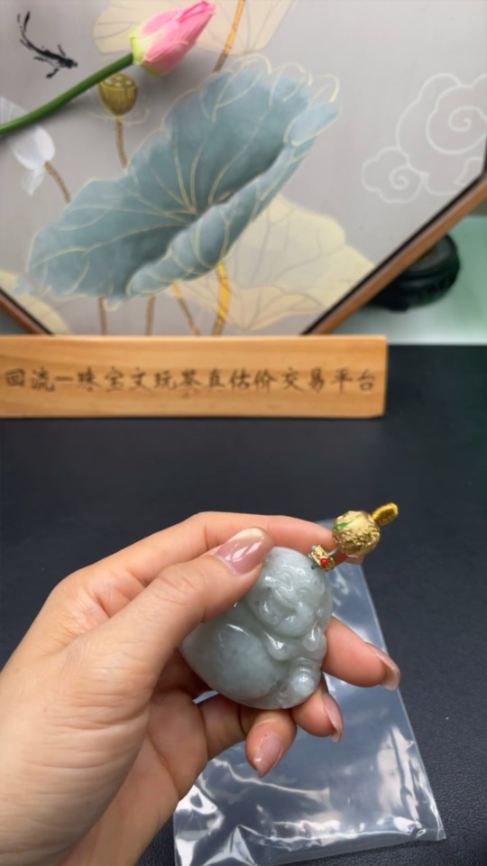 Jadeite Buddha Pendant Non-Gold Total Weight Approx. 44.8g