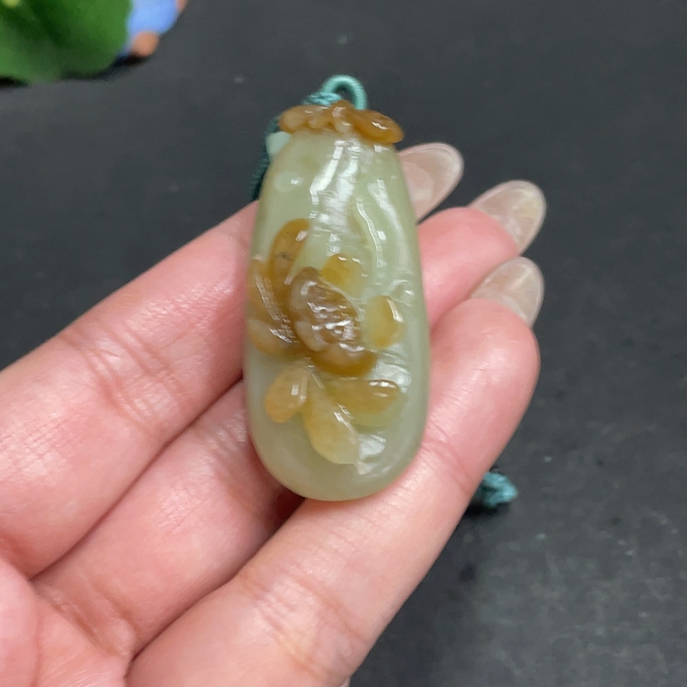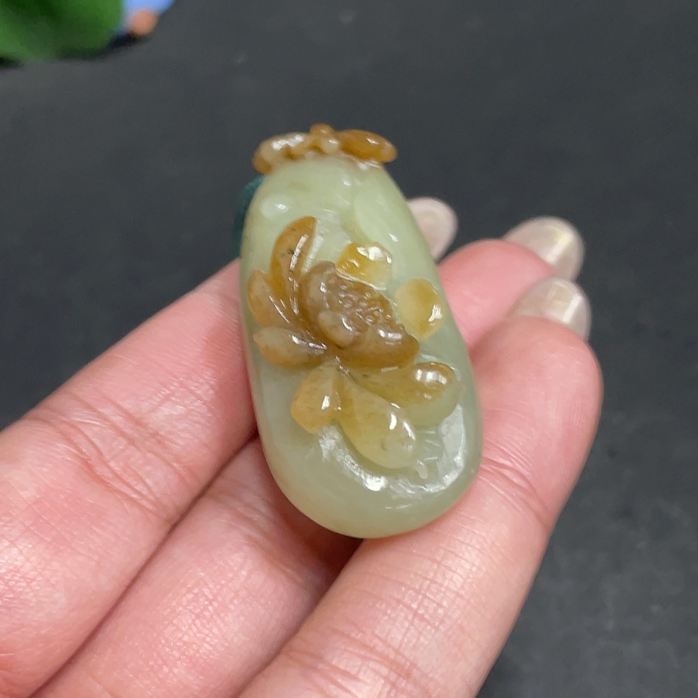 Hetian Jade Pendant - Blossom of Wealth and Honor