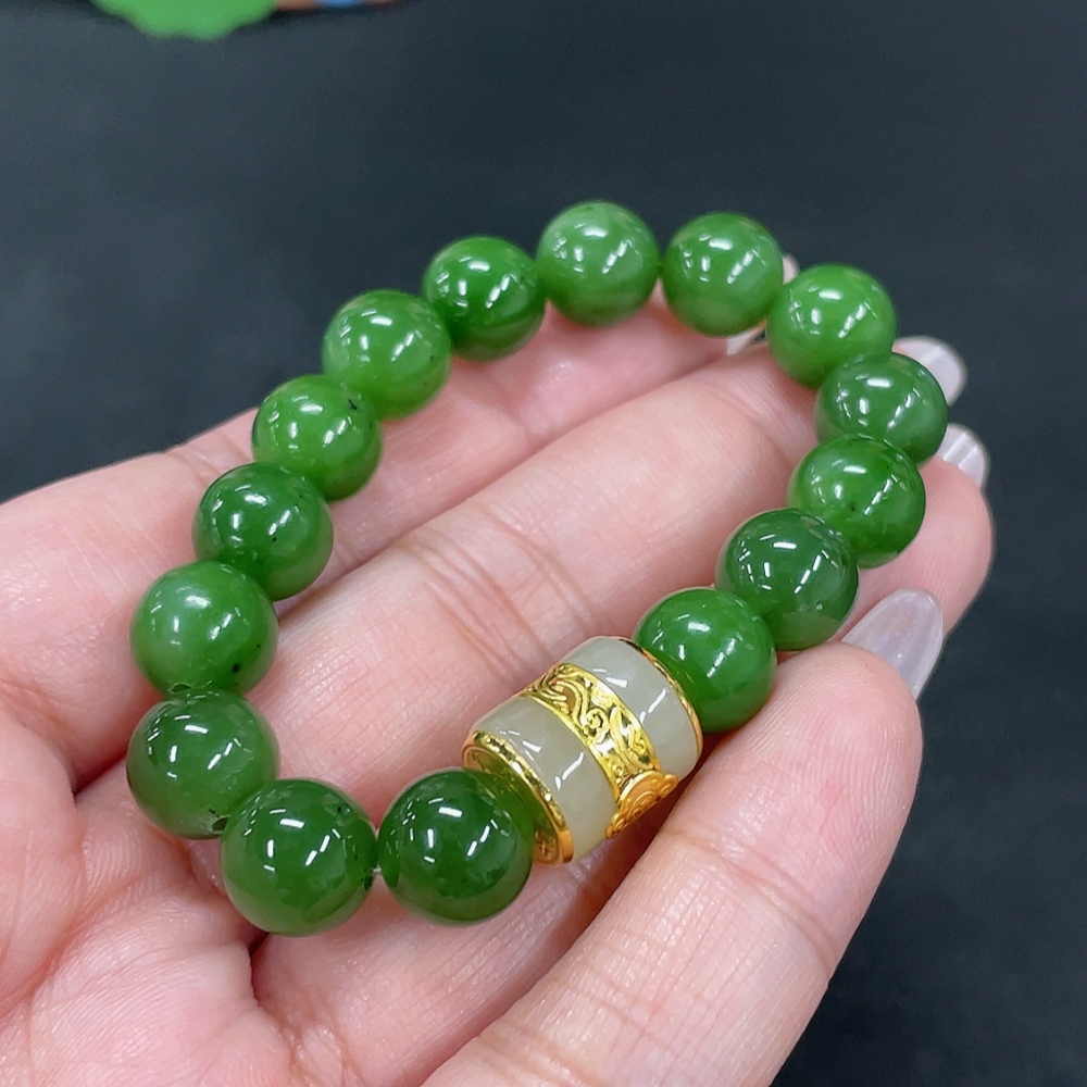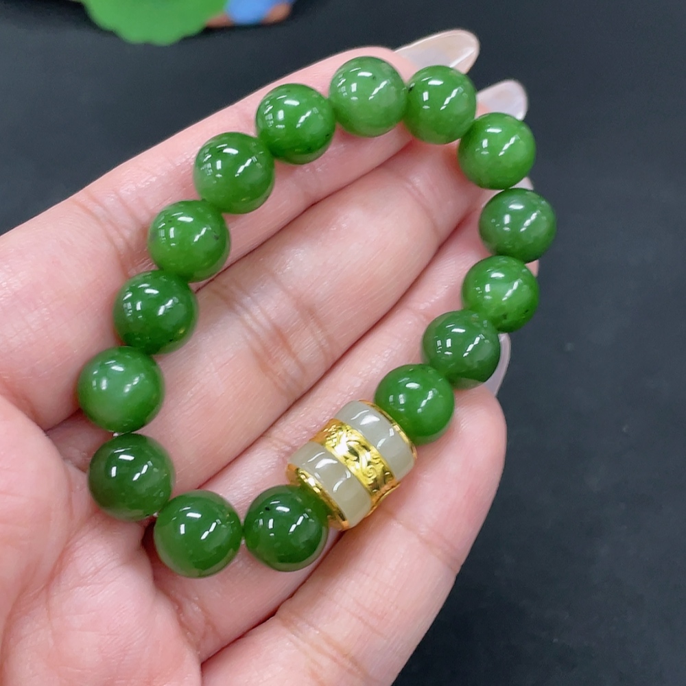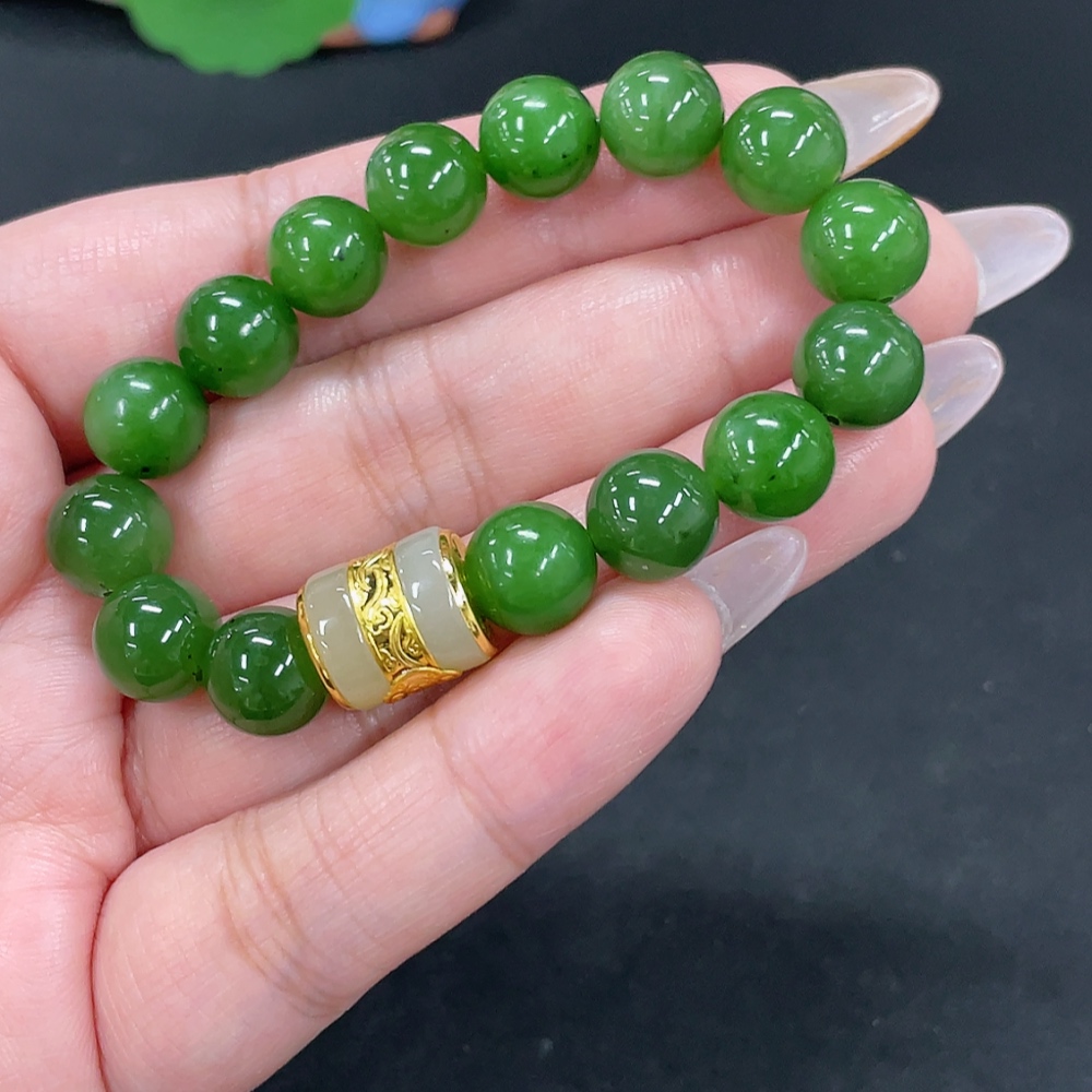 Hetian Jade Jasper Bracelet, approx. 9.4mm, no印记, gold content tested 85%, total weight approx. 22.8g
