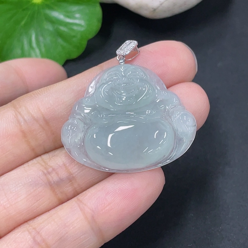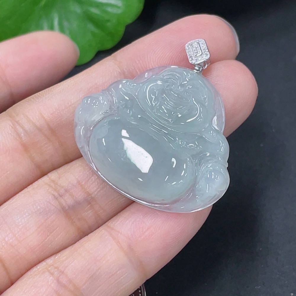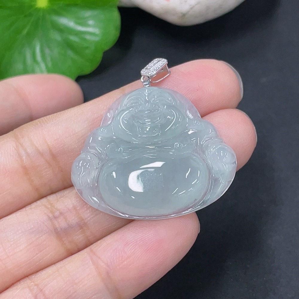 Jadeite Pendant Buddha with 18k Gold and Diamond Accents, Total Weight Approximately 6.3g