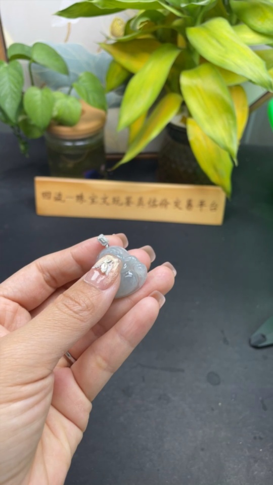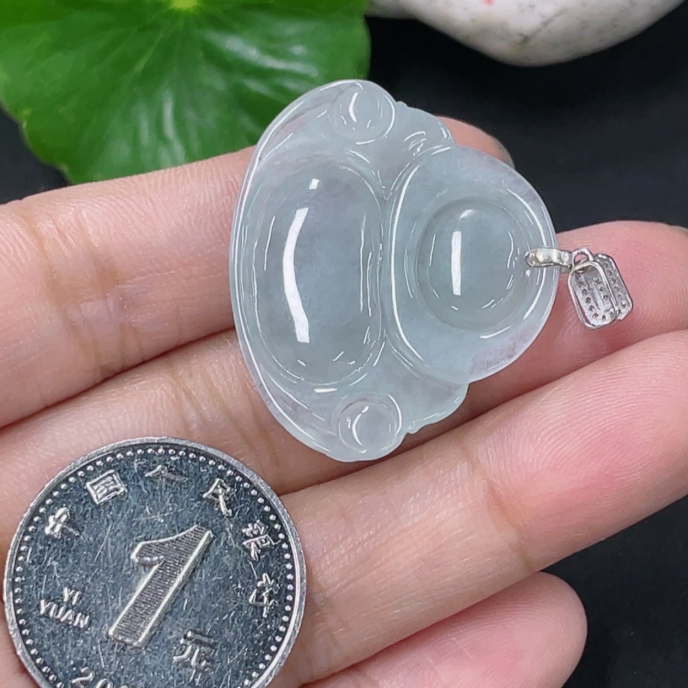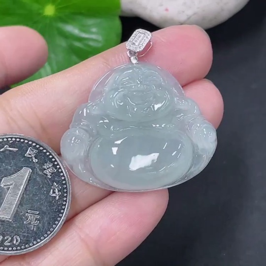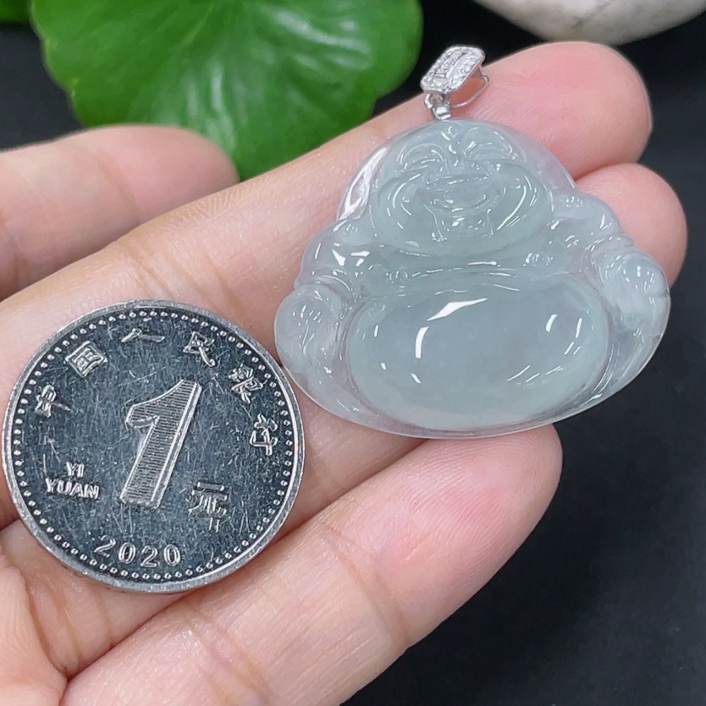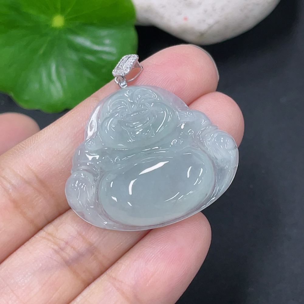 Jadeite Pendant Buddha with 18k Gold and Diamond Accents, Total Weight Approximately 6.3g
